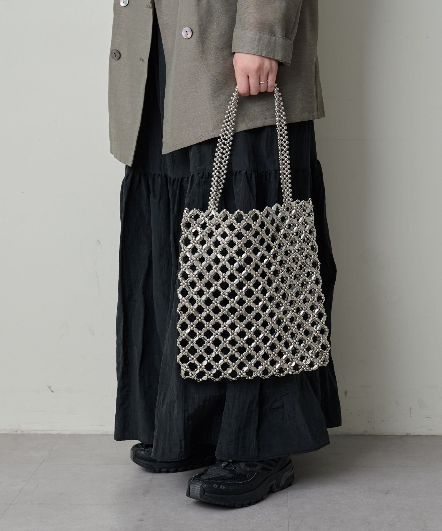 スタイリングのアクセントになるビジュートート