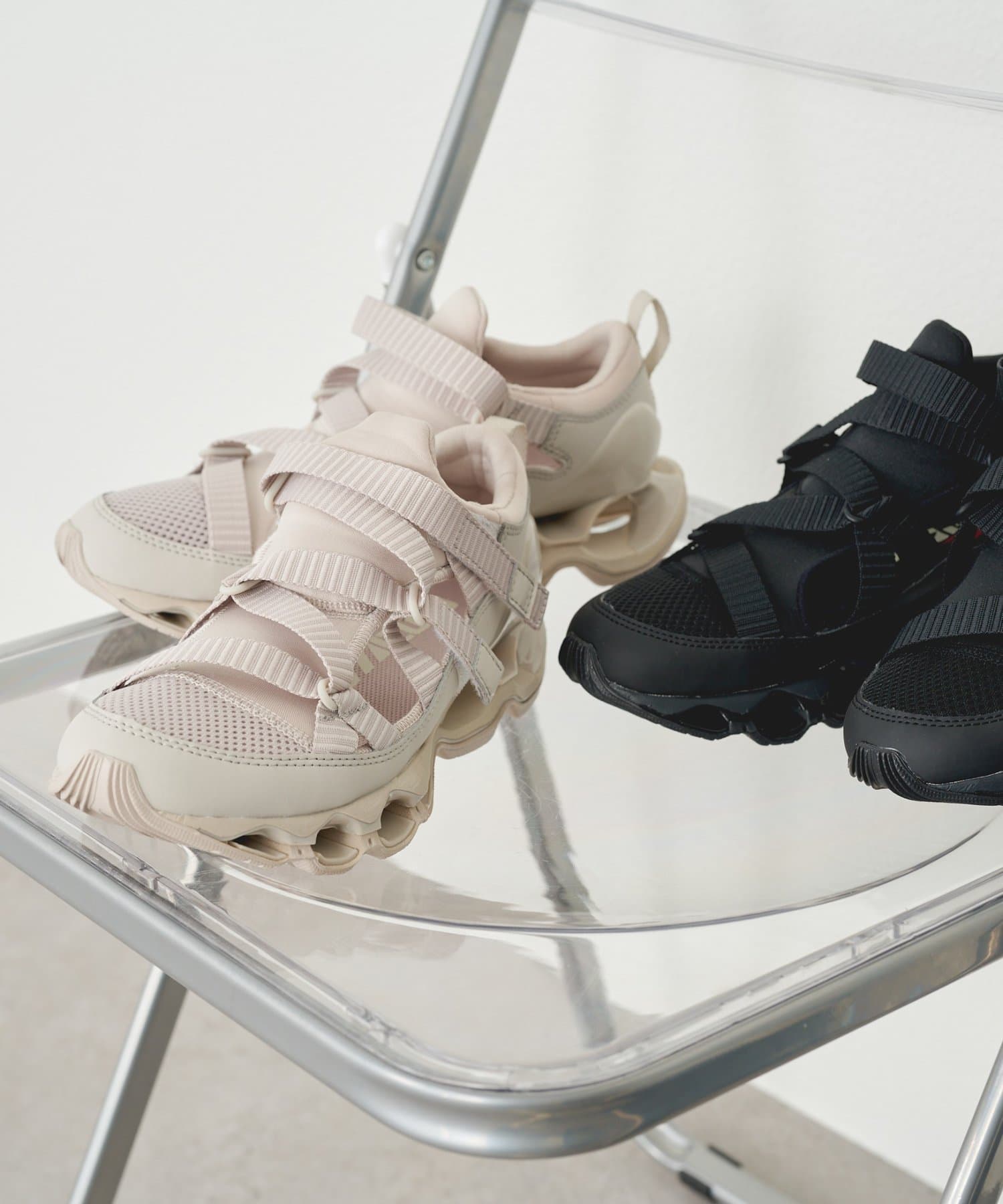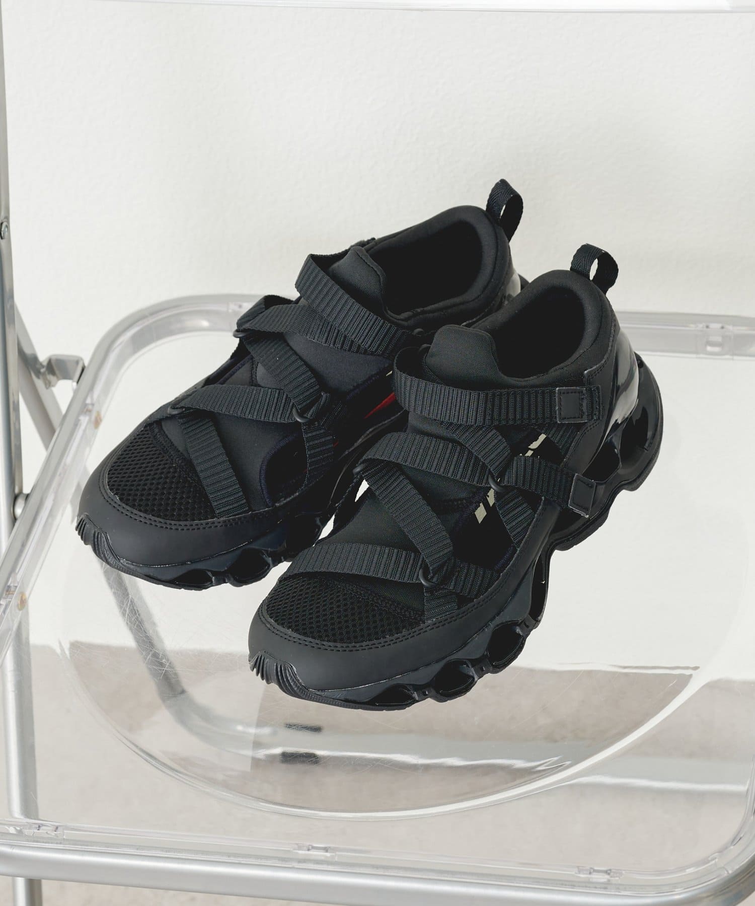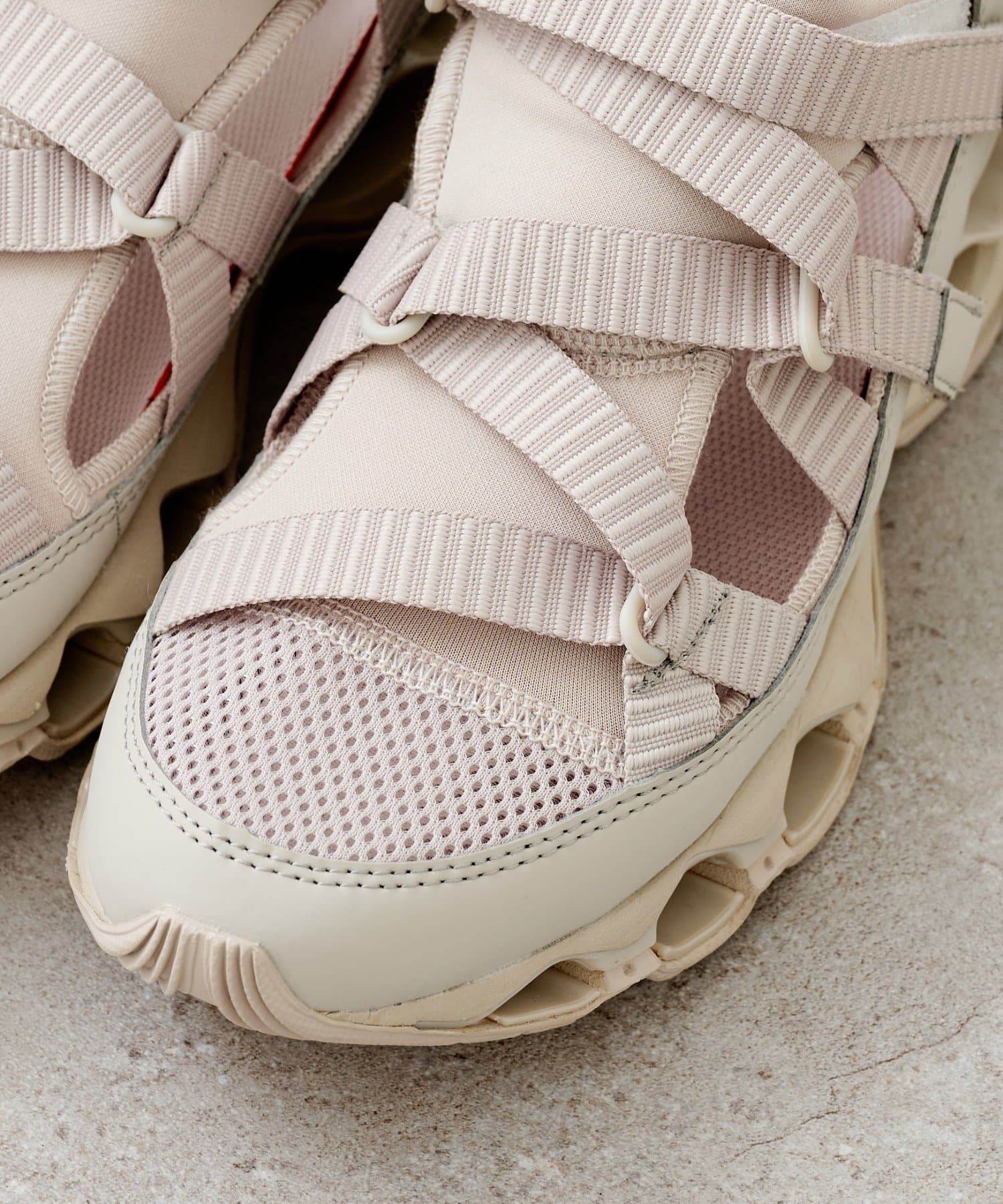 ・スポーツ用品メーカーMIZUNOのスニーカー。ボディ全体に巡らされたストラップデザインがスポーティーかつスタイリッシュな1足。
