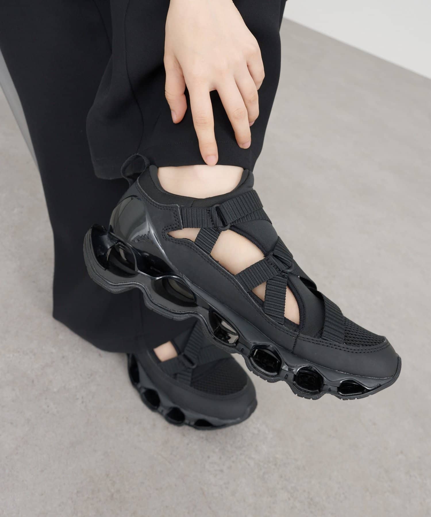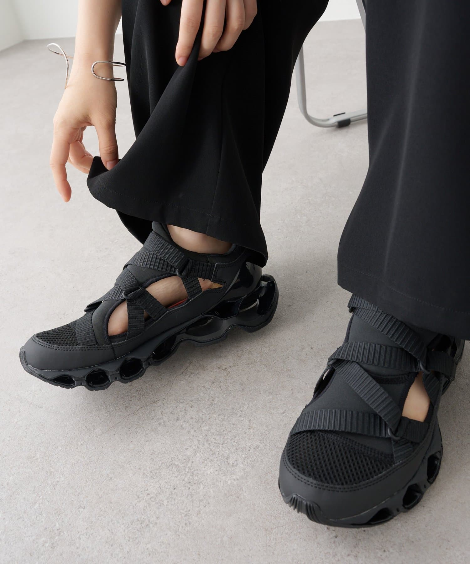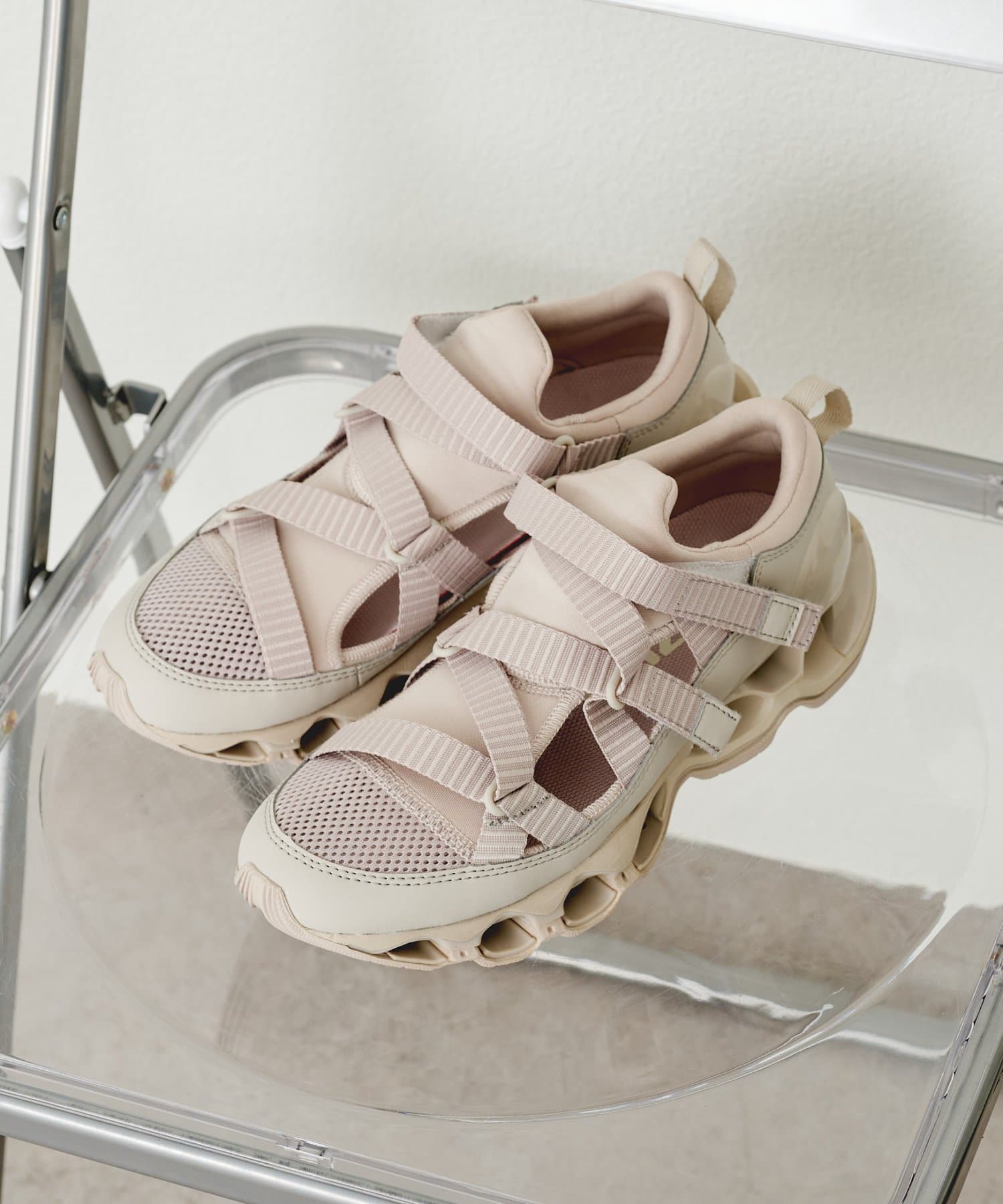 ・スポーツ用品メーカーMIZUNOのスニーカー。ボディ全体に巡らされたストラップデザインがスポーティーかつスタイリッシュな1足。