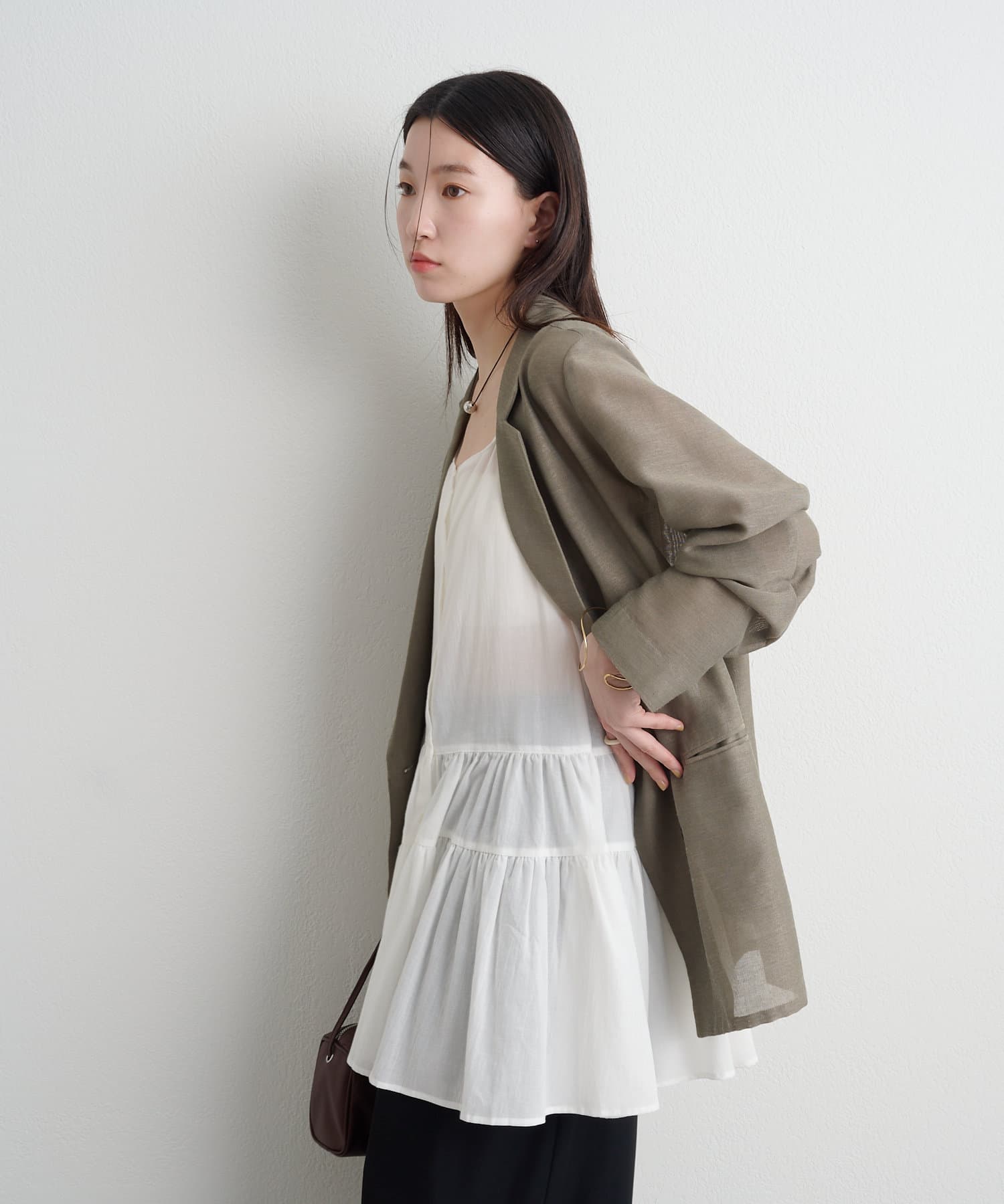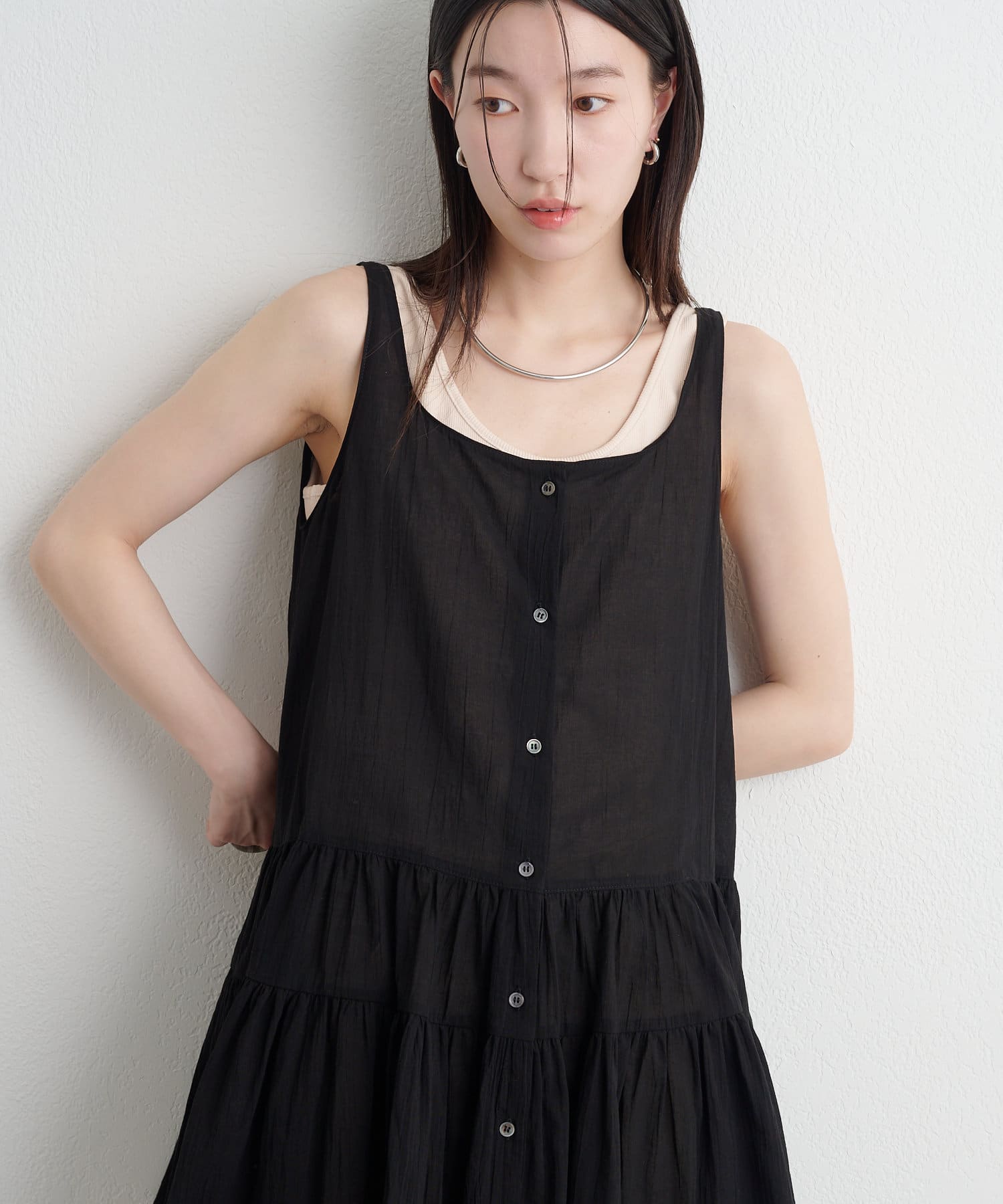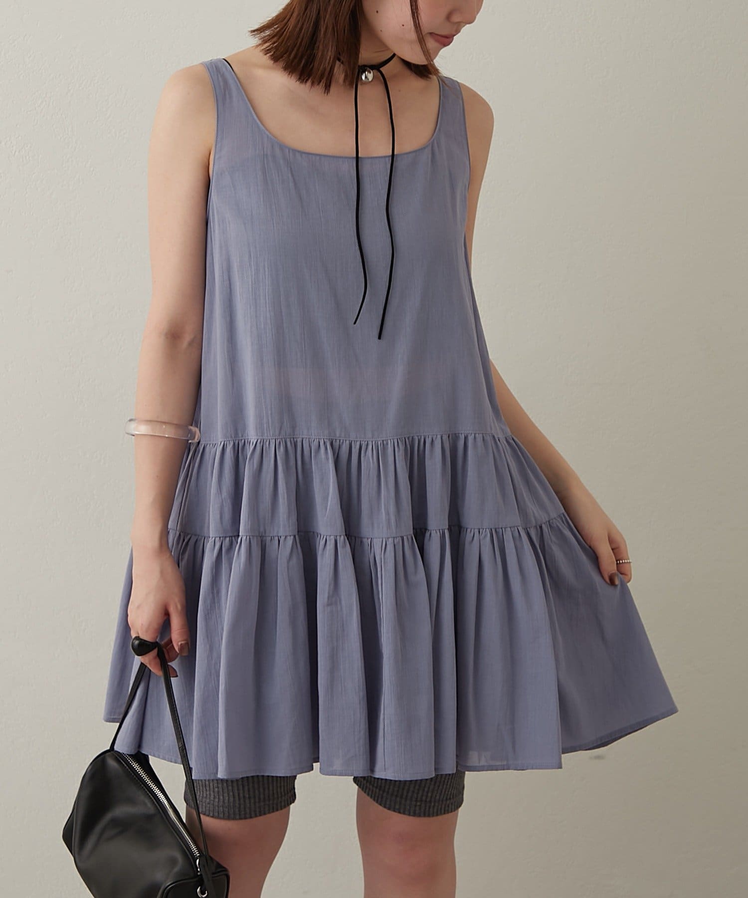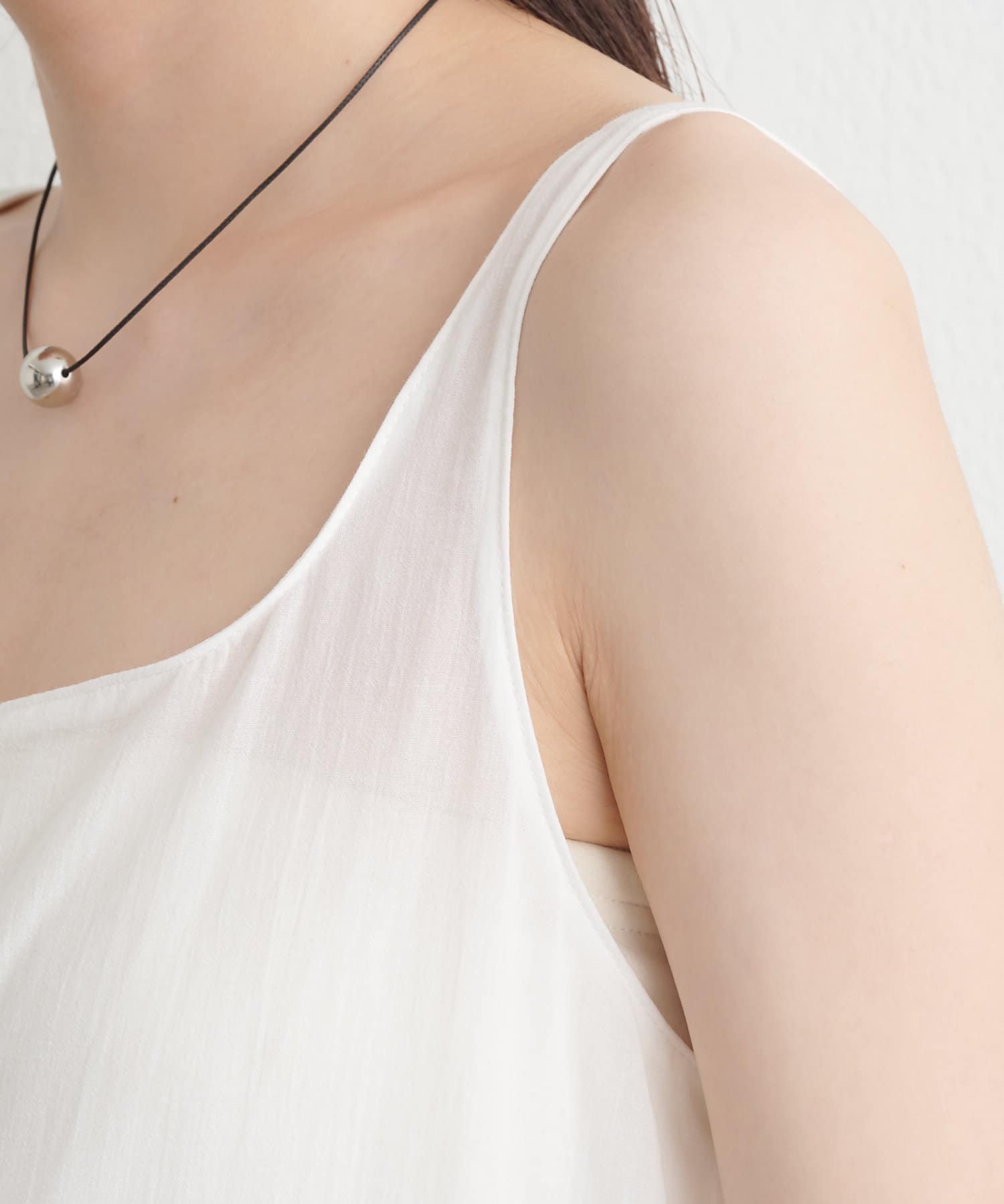 ・首回りがスクエアのため鎖骨を綺麗に見せくれます。