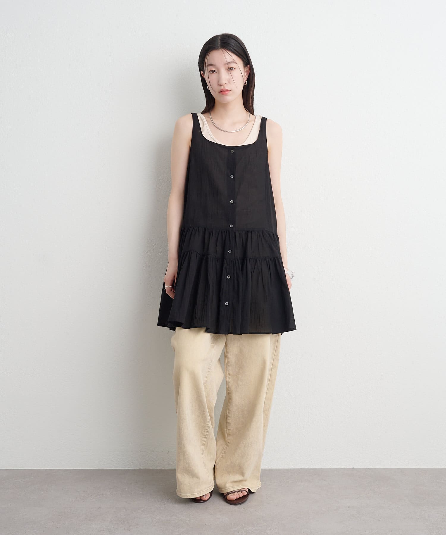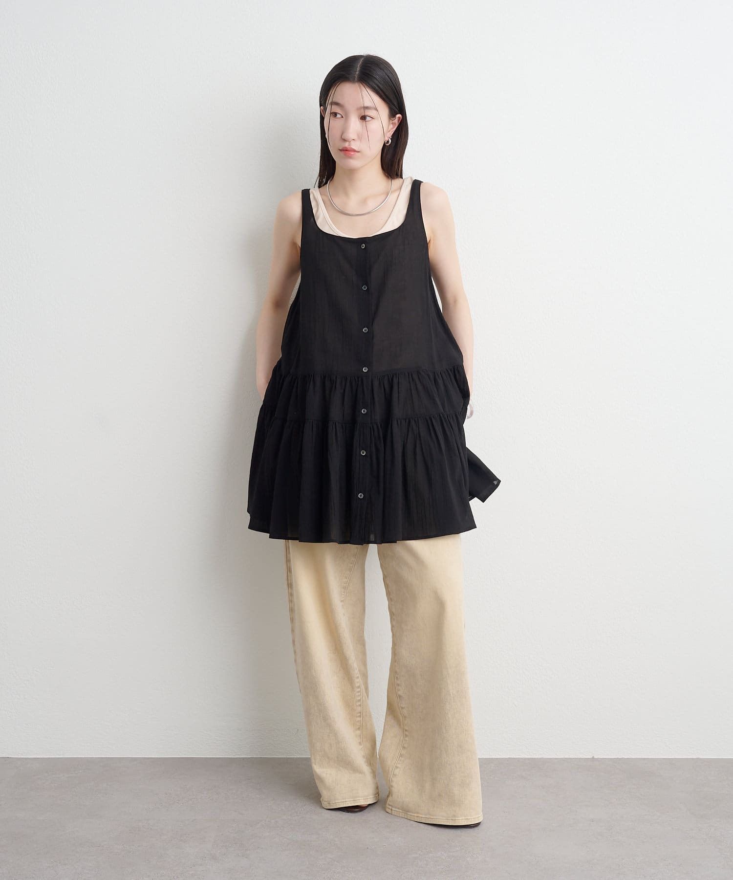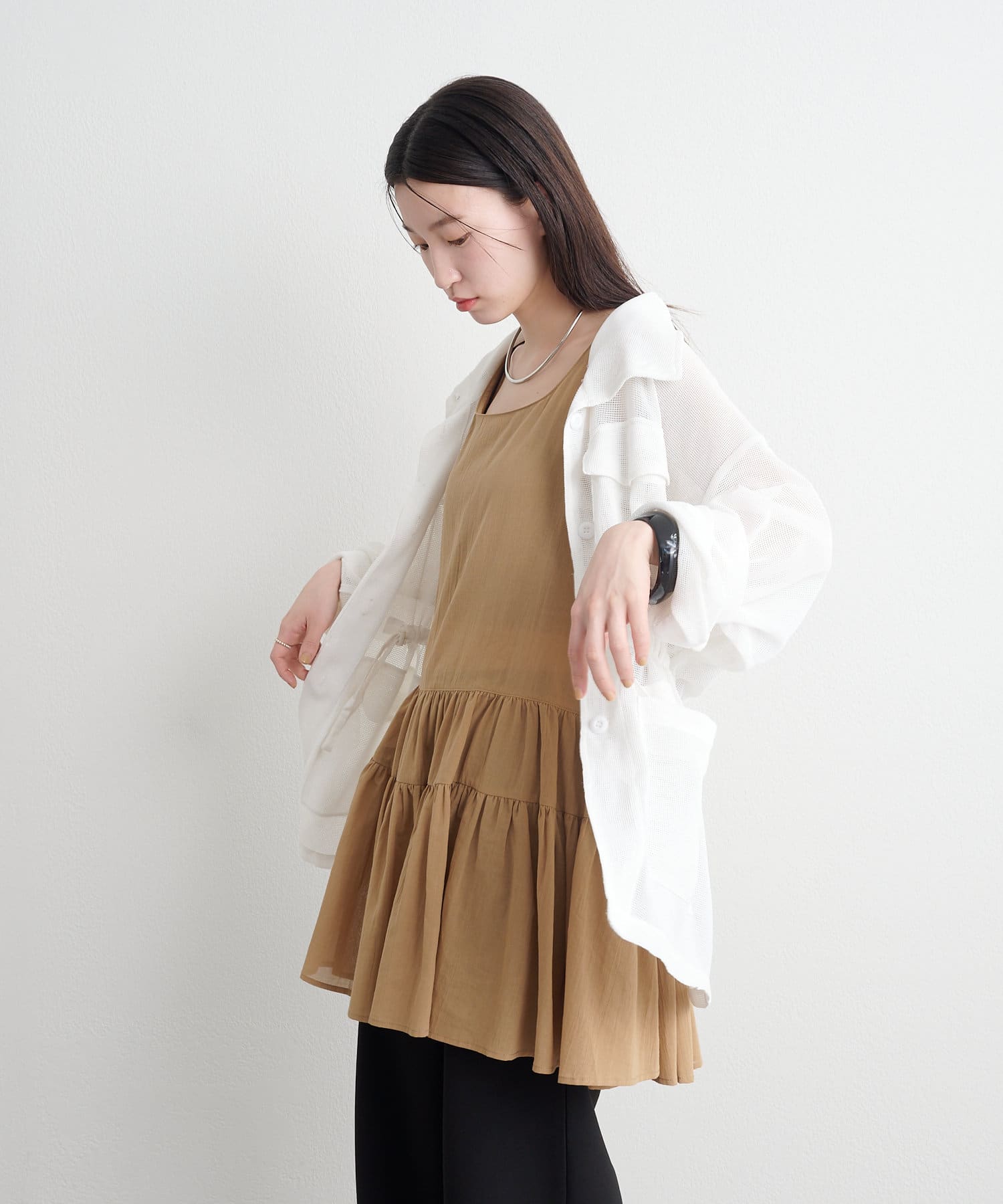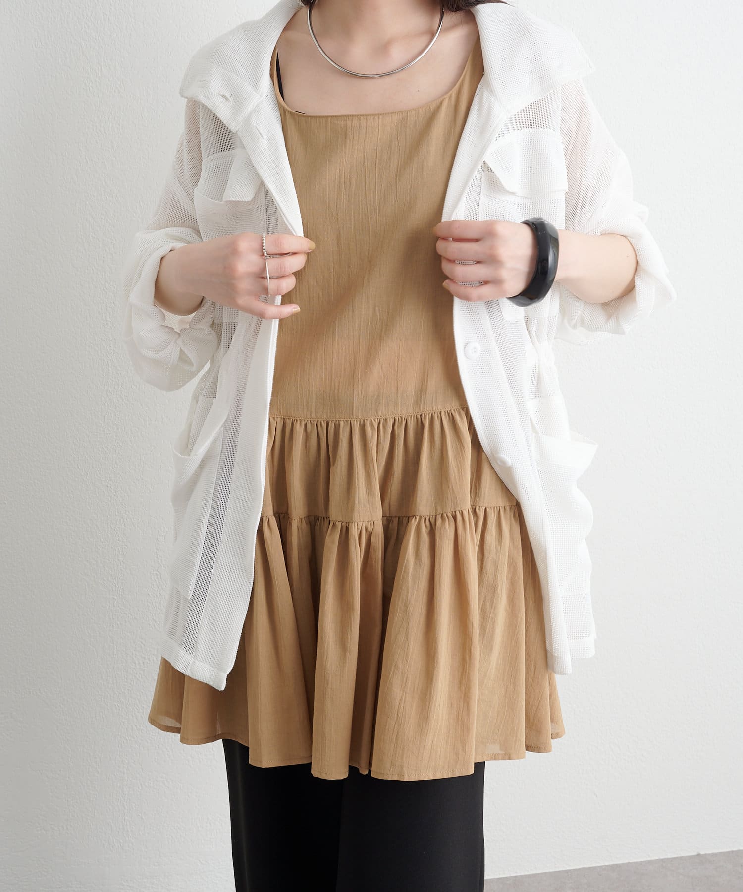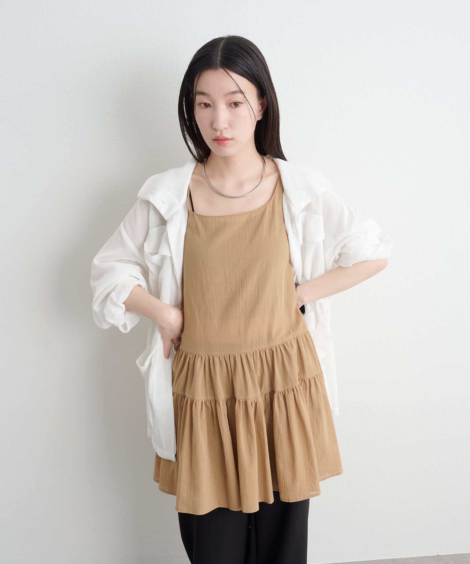 ・タンクトップ・Tシャツ・長袖トップスなど、合わせるアイテム次第でロングシーズン活躍。