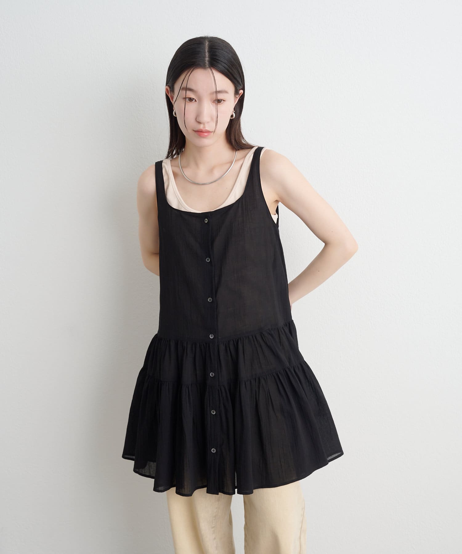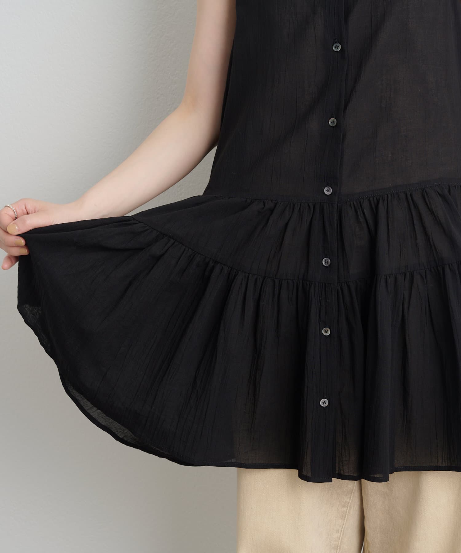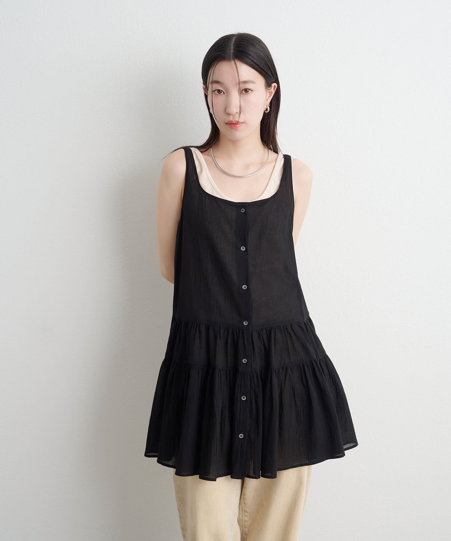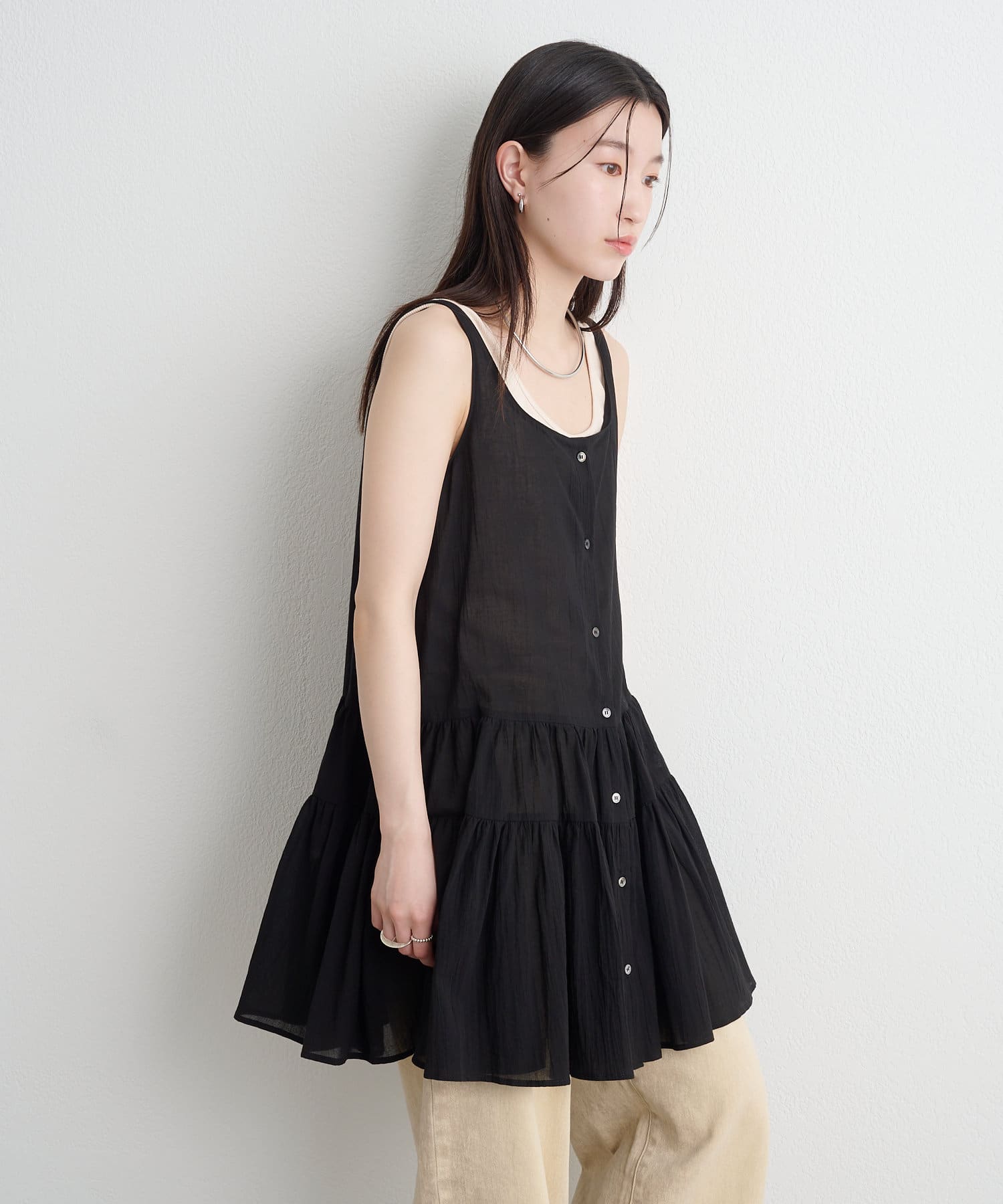 コーディネートの主役になるノースリティアードチュニック