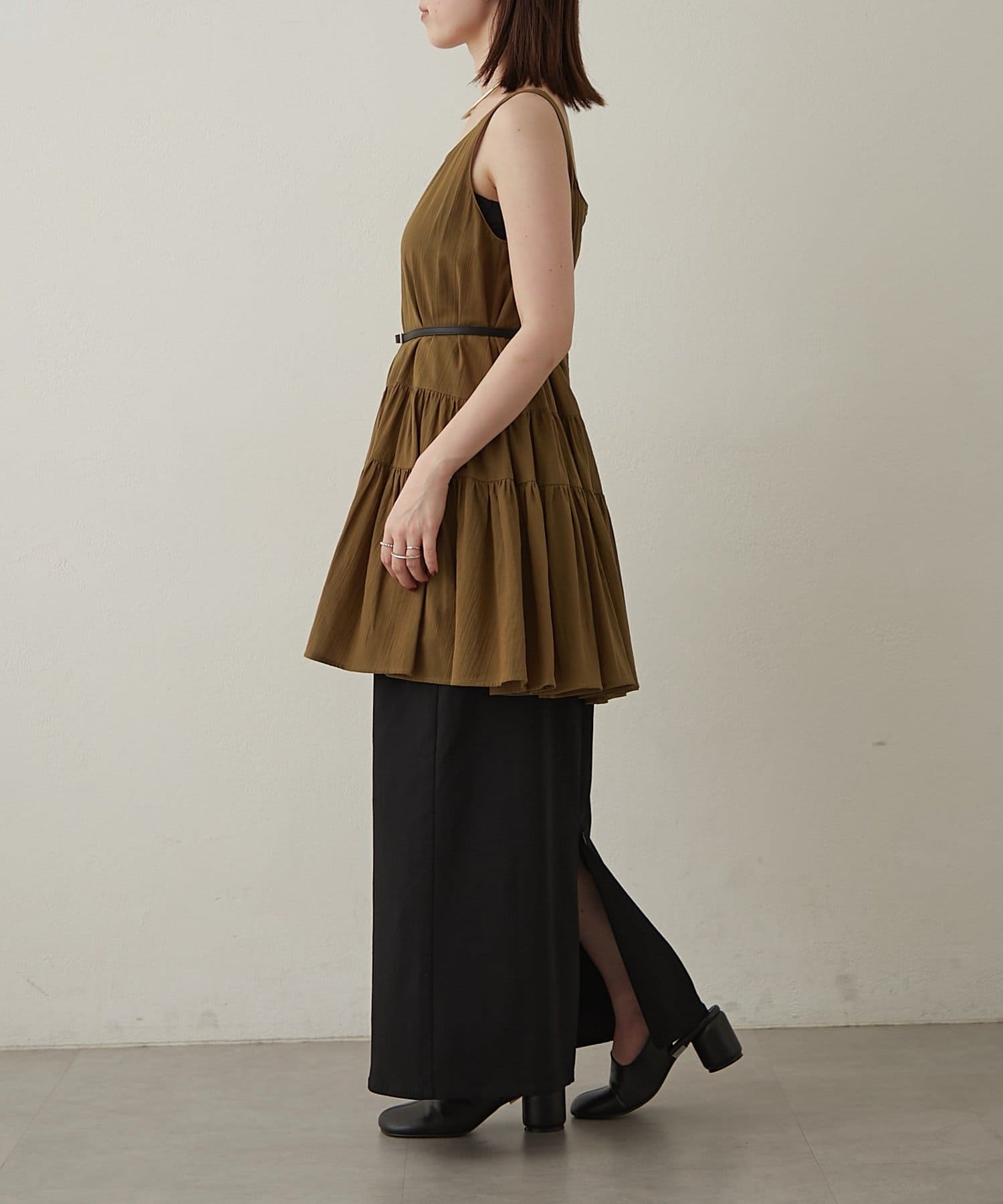【カーキ】2WAYスリットスカート