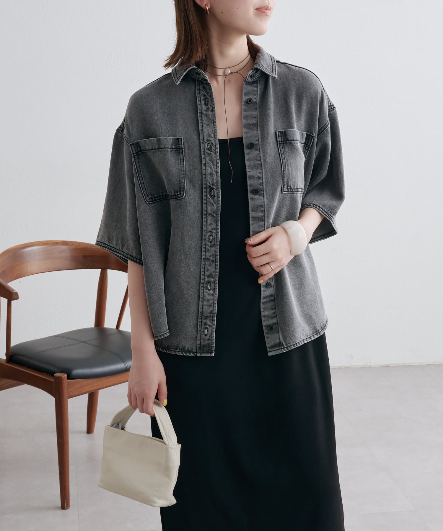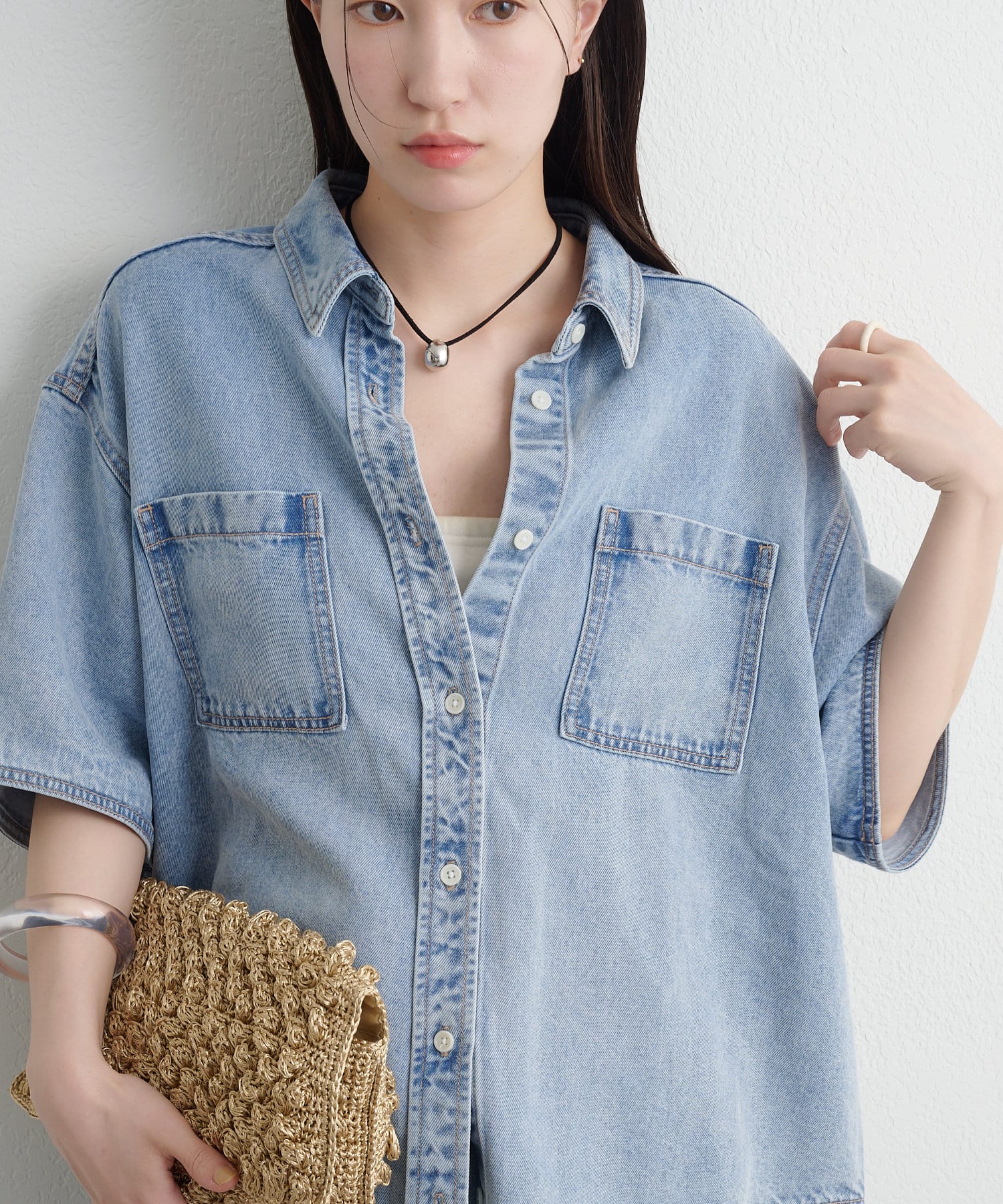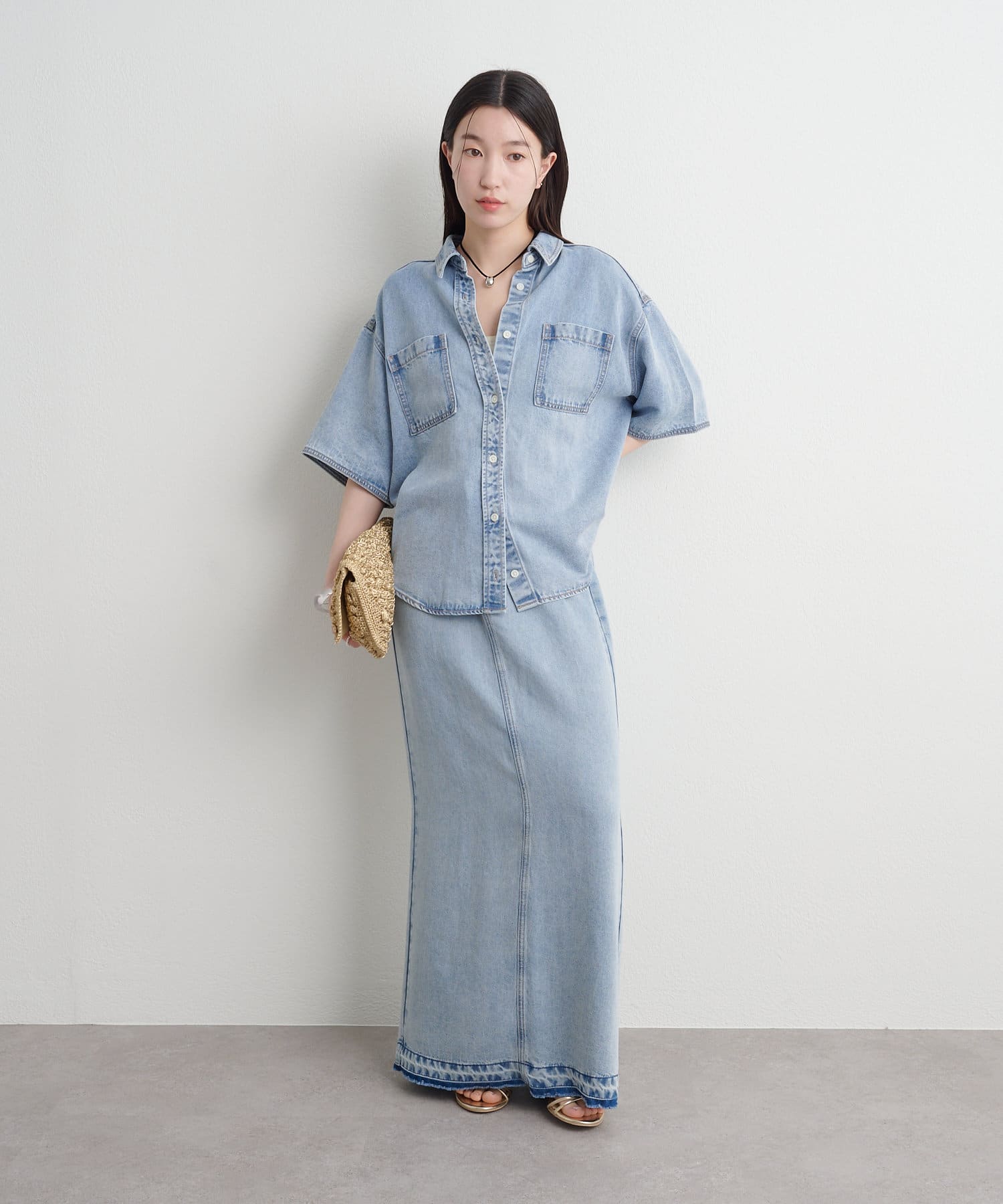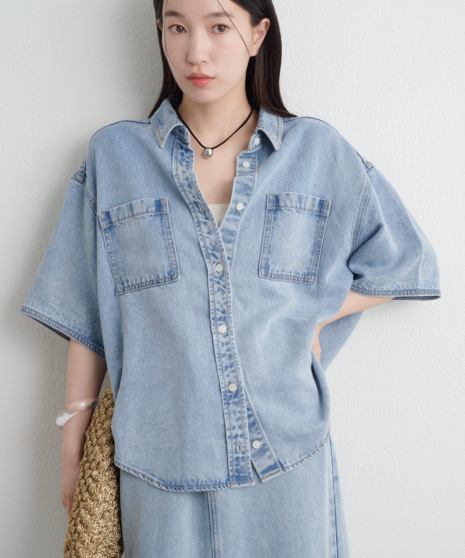 【セットアップ着用可能◎】セルロースデニムシャツ