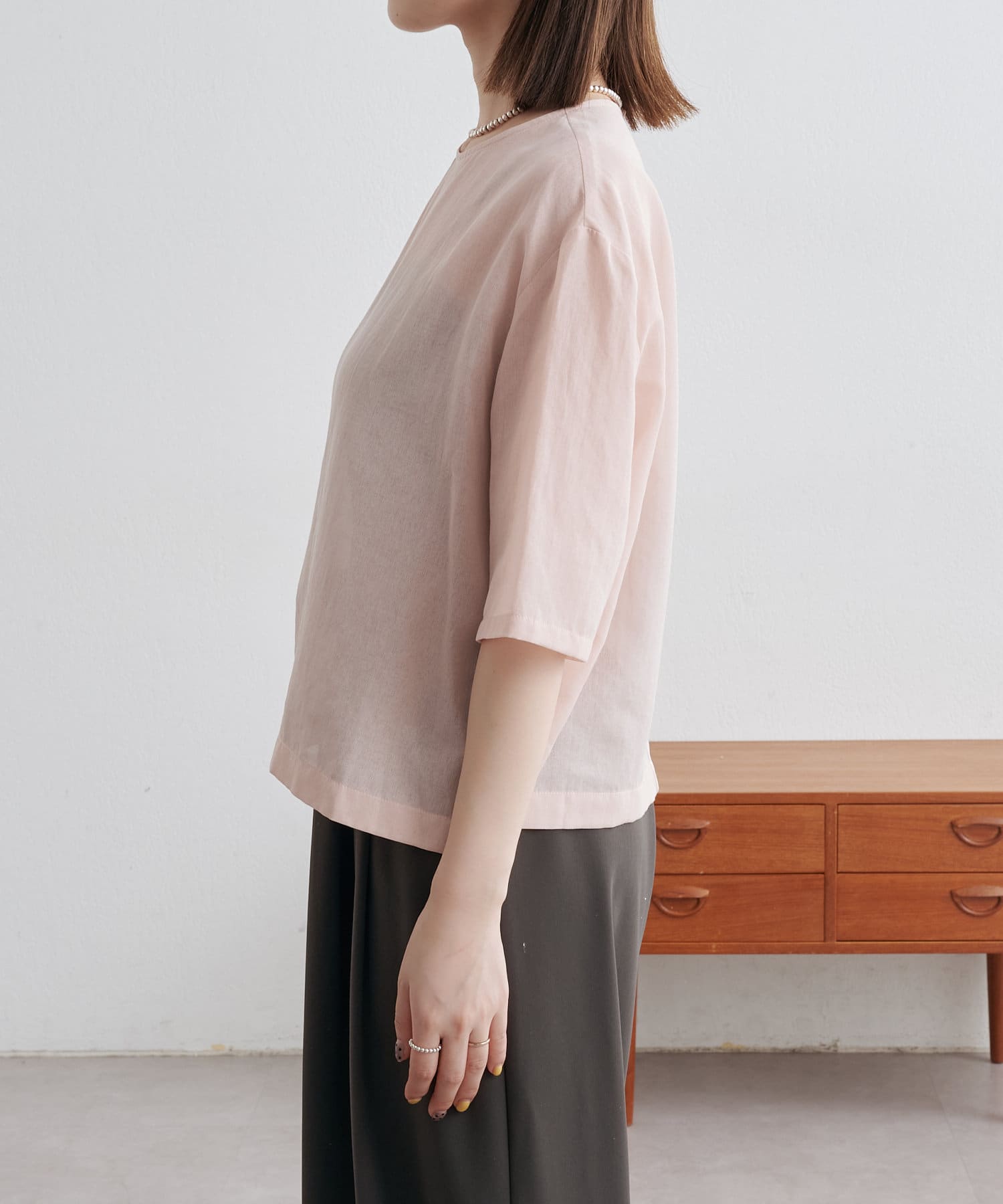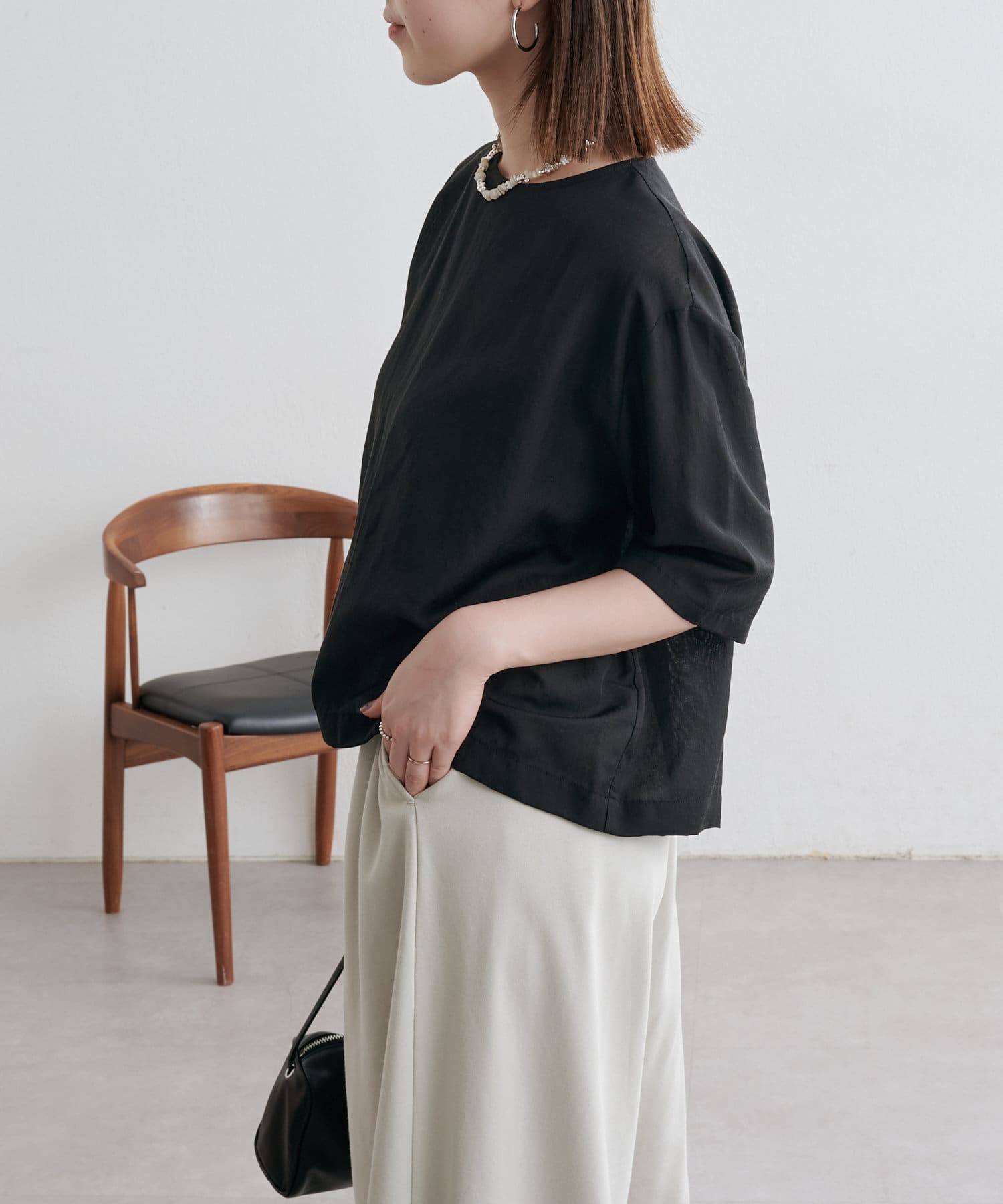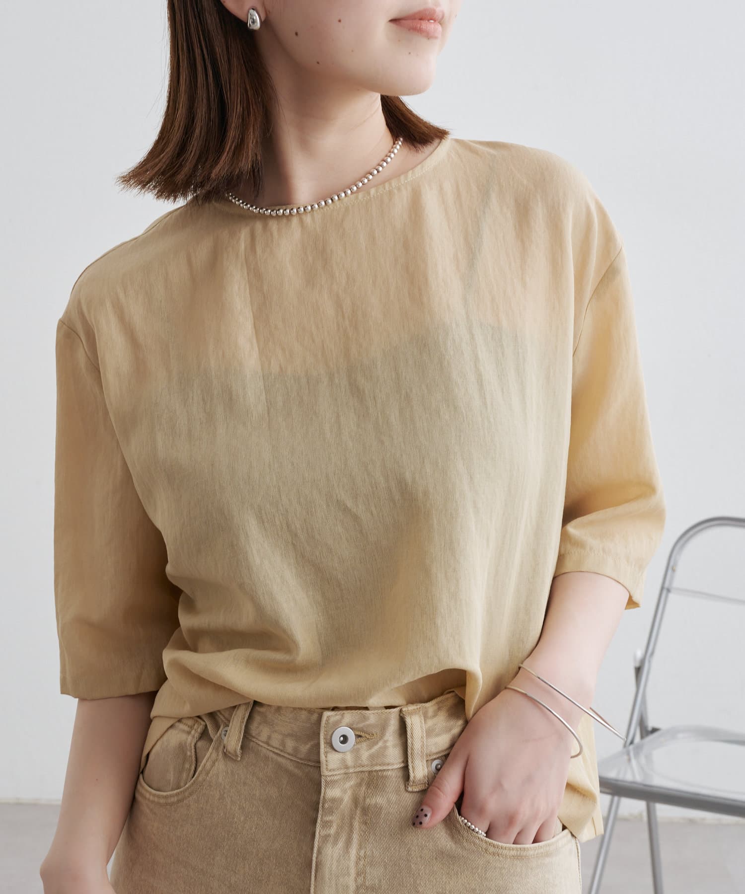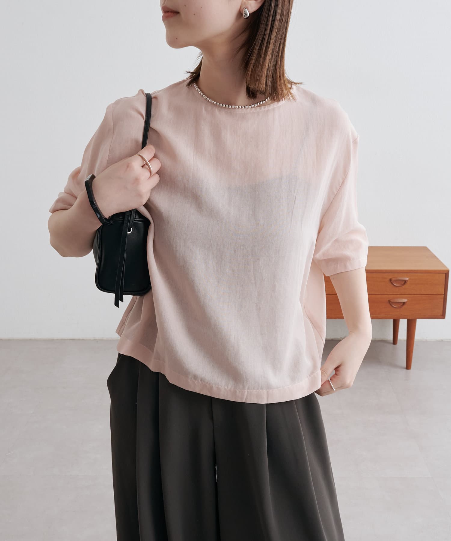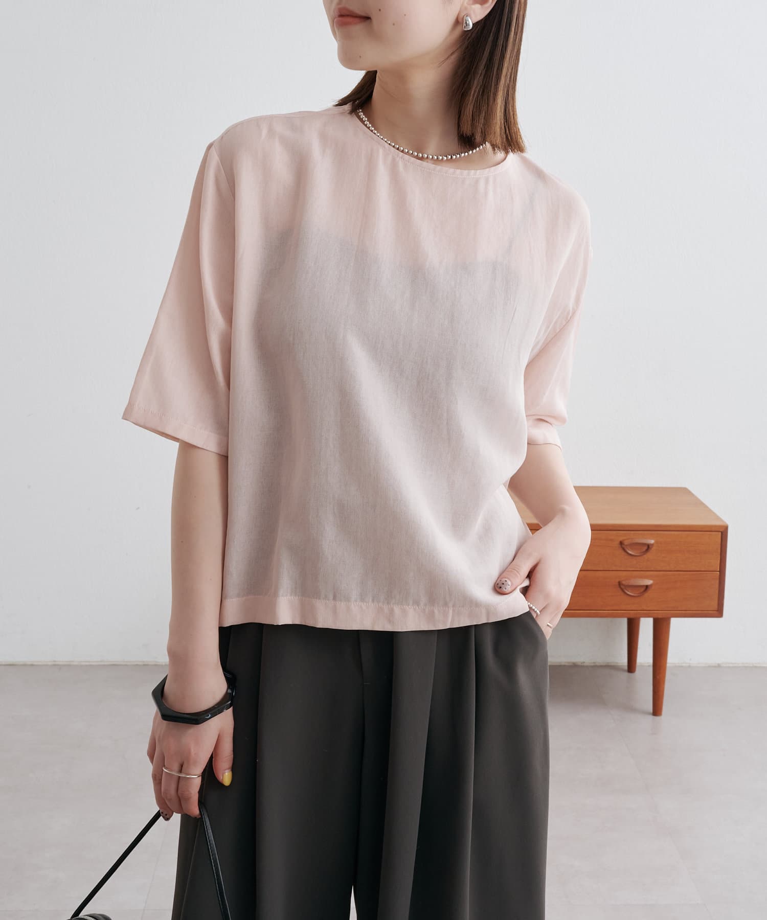 ・Tシャツのようにさらっと一枚で着ていただけるシンプルなブラウス。