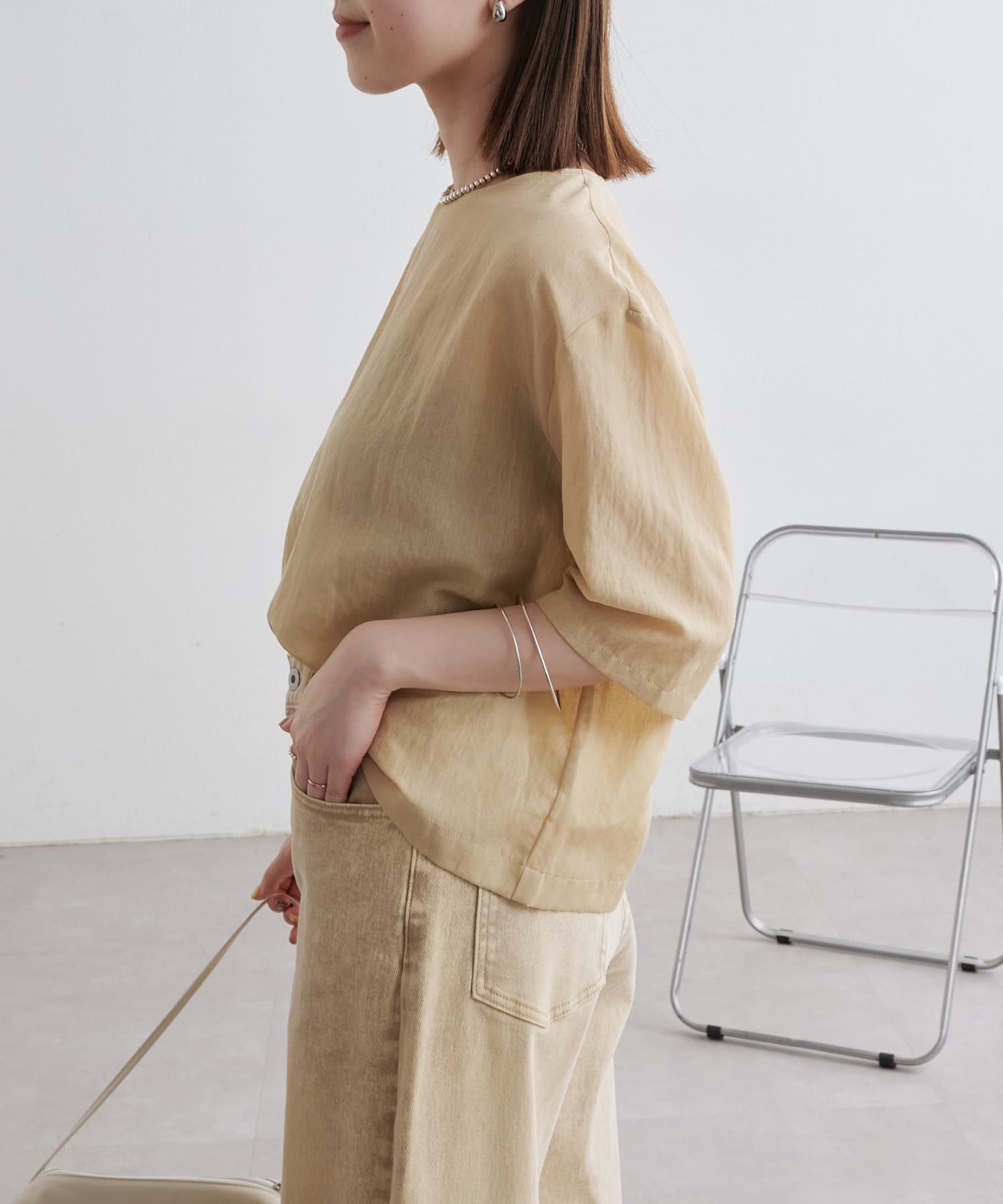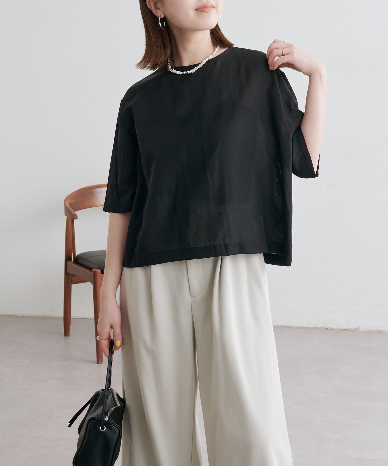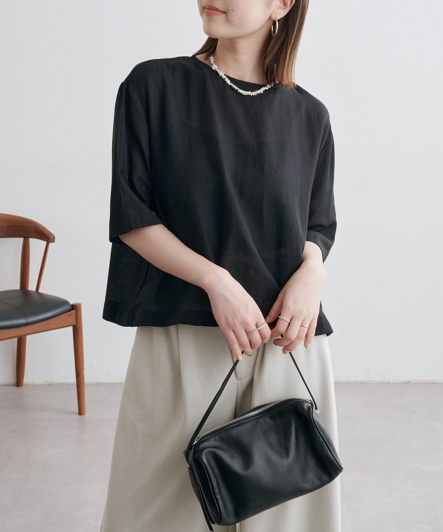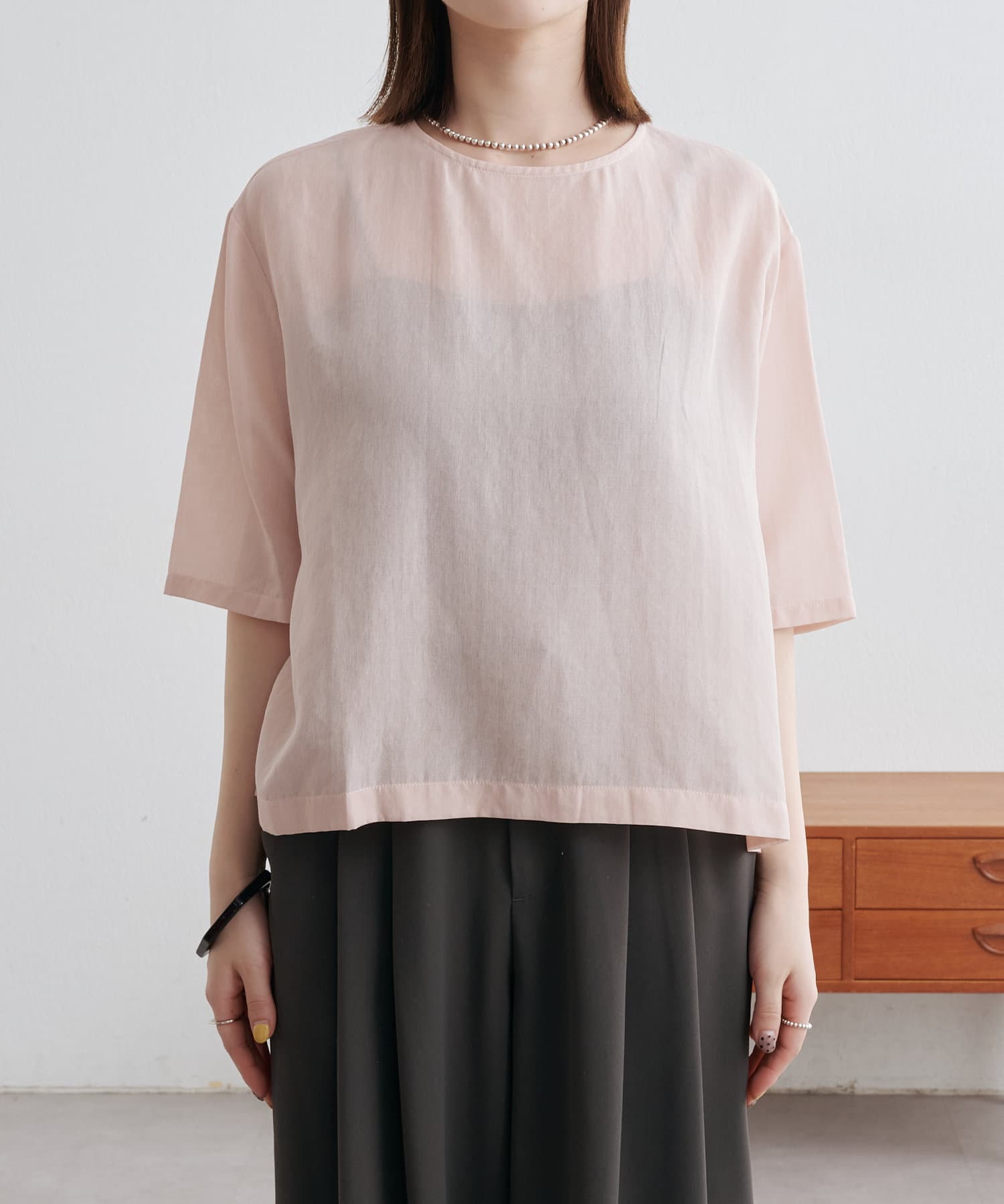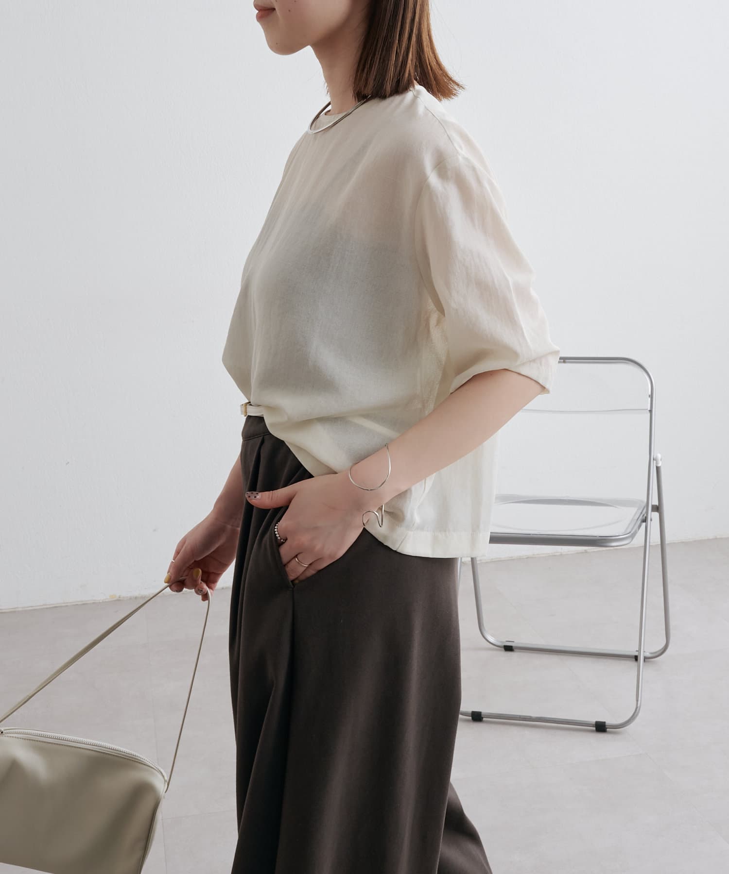 ・Tシャツのようにさらっと一枚で着ていただけるシンプルなブラウス。