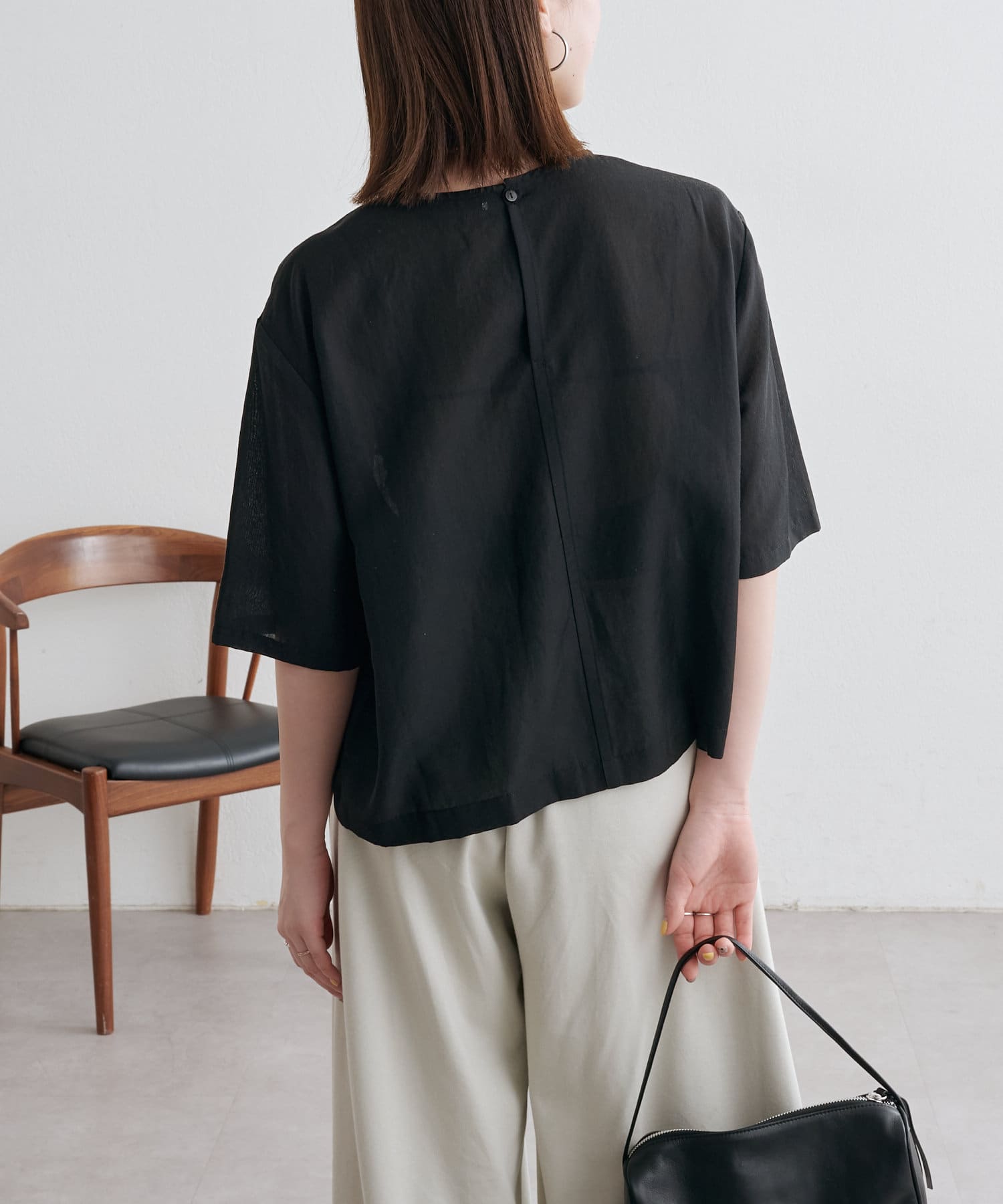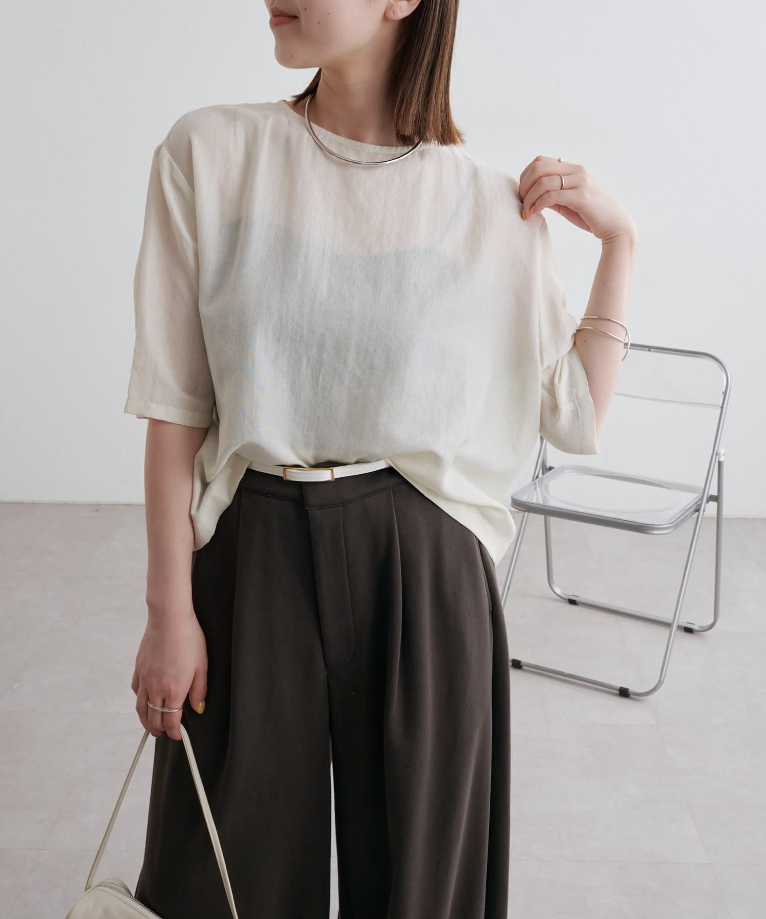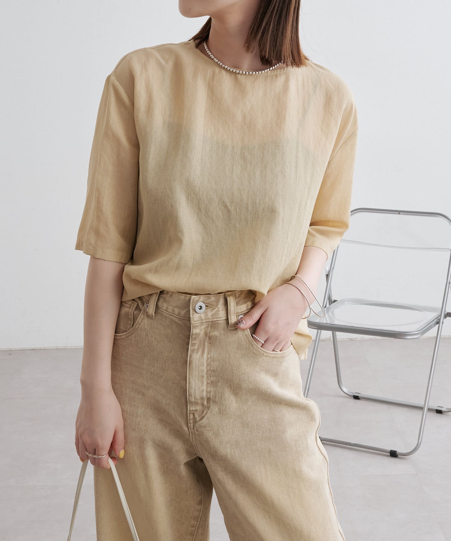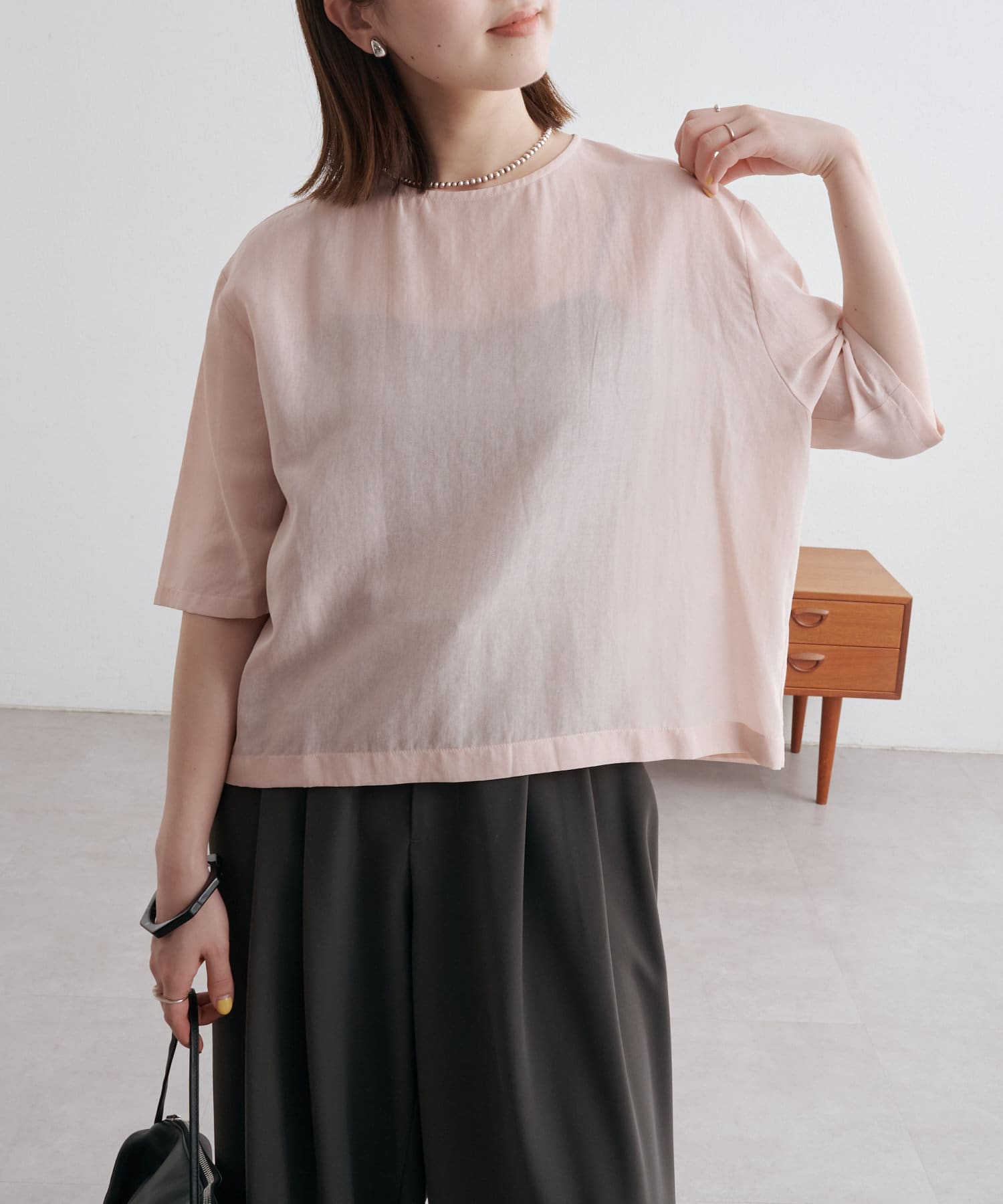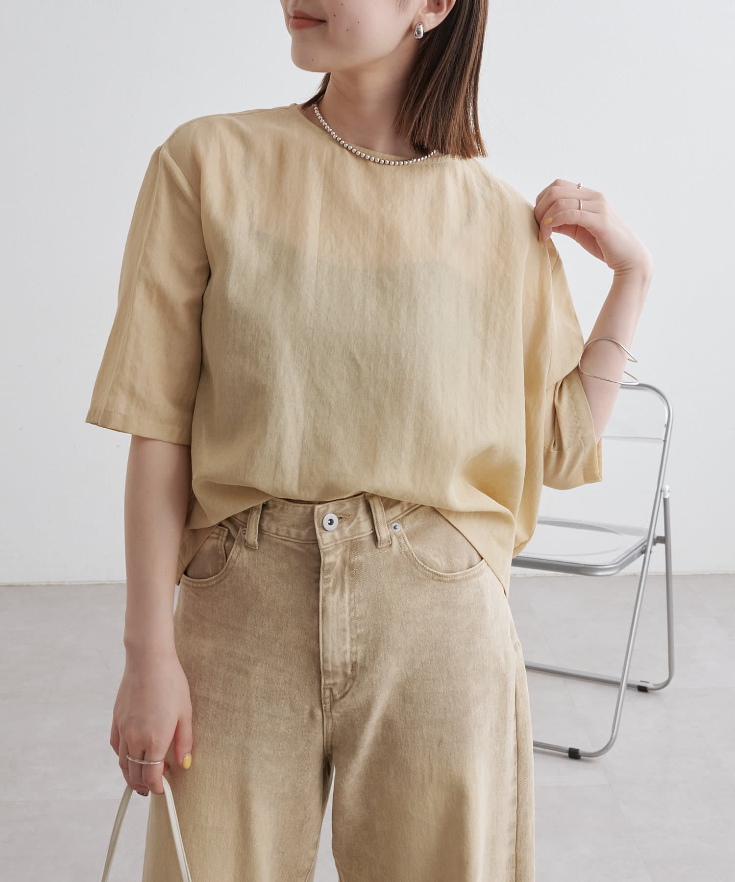 ・Tシャツのようにさらっと一枚で着ていただけるシンプルなブラウス。