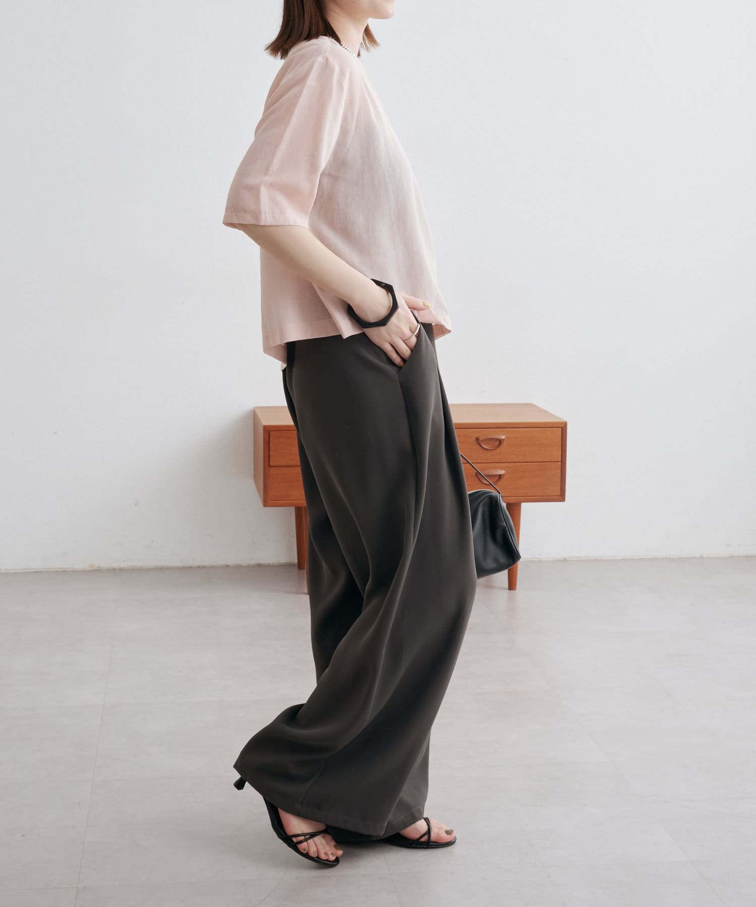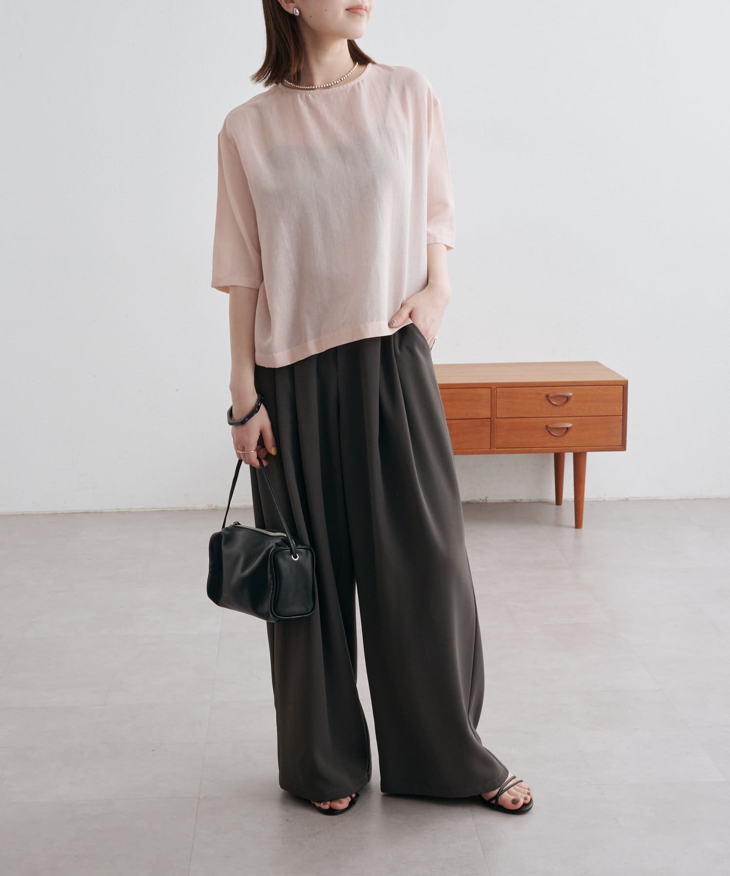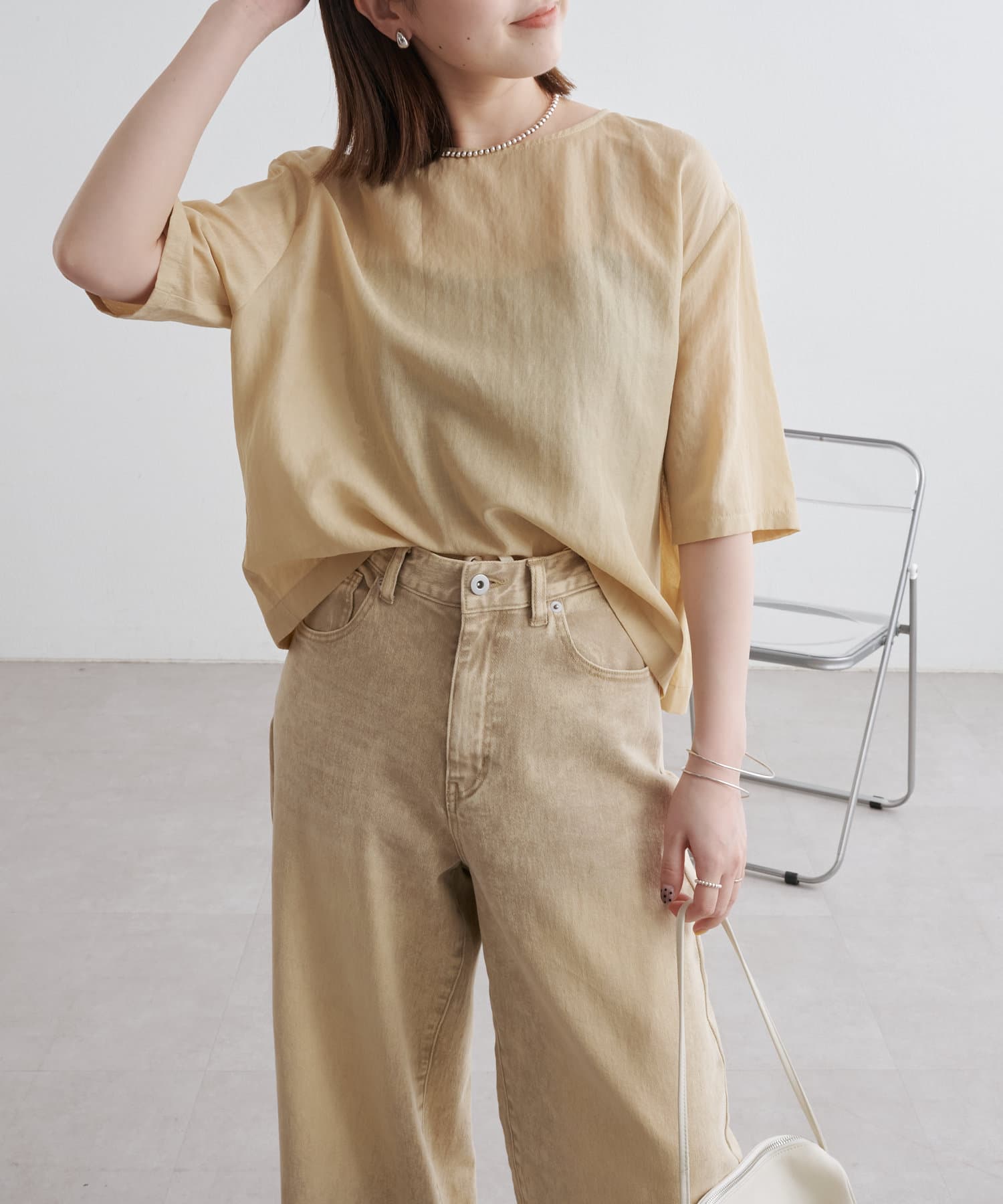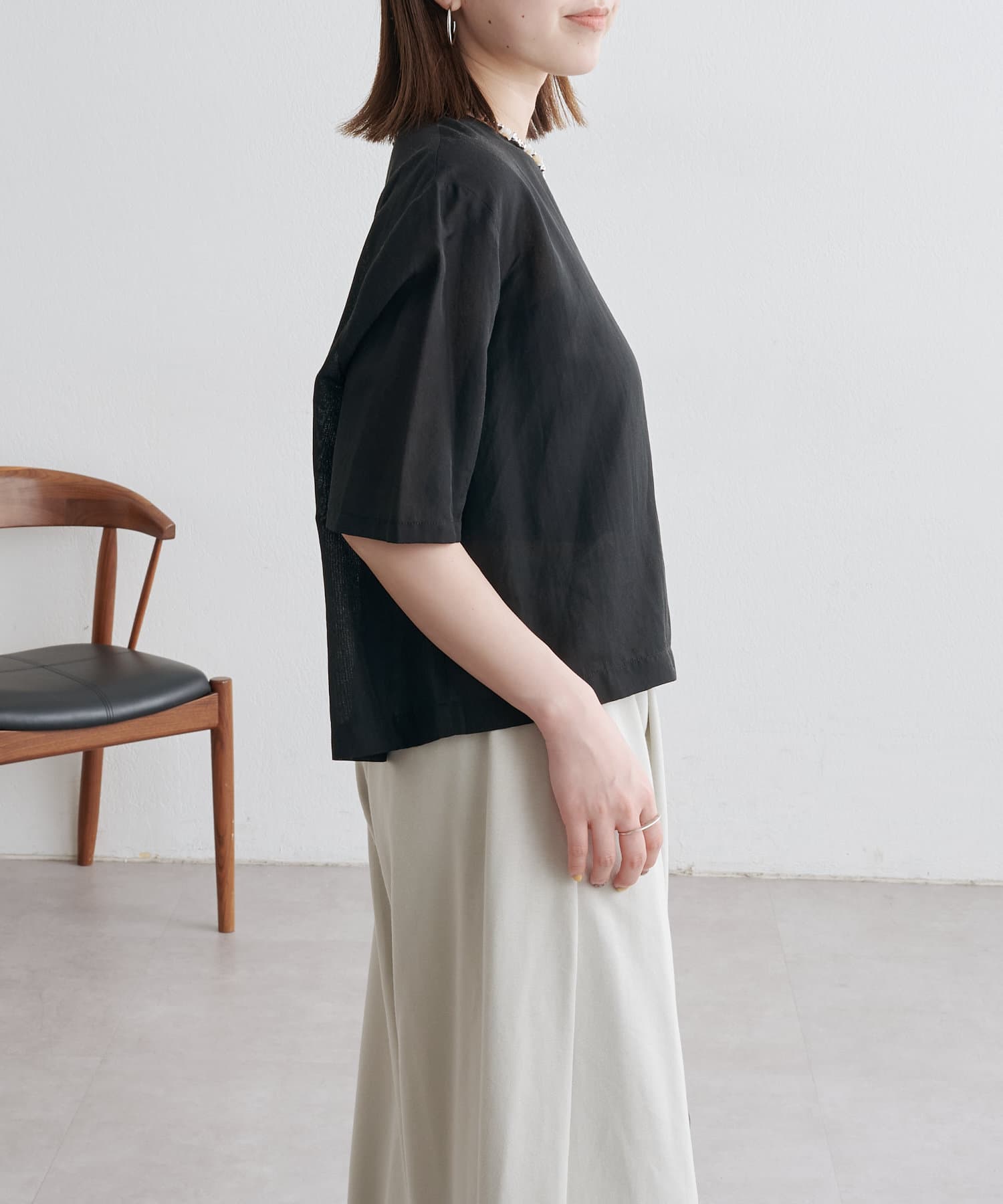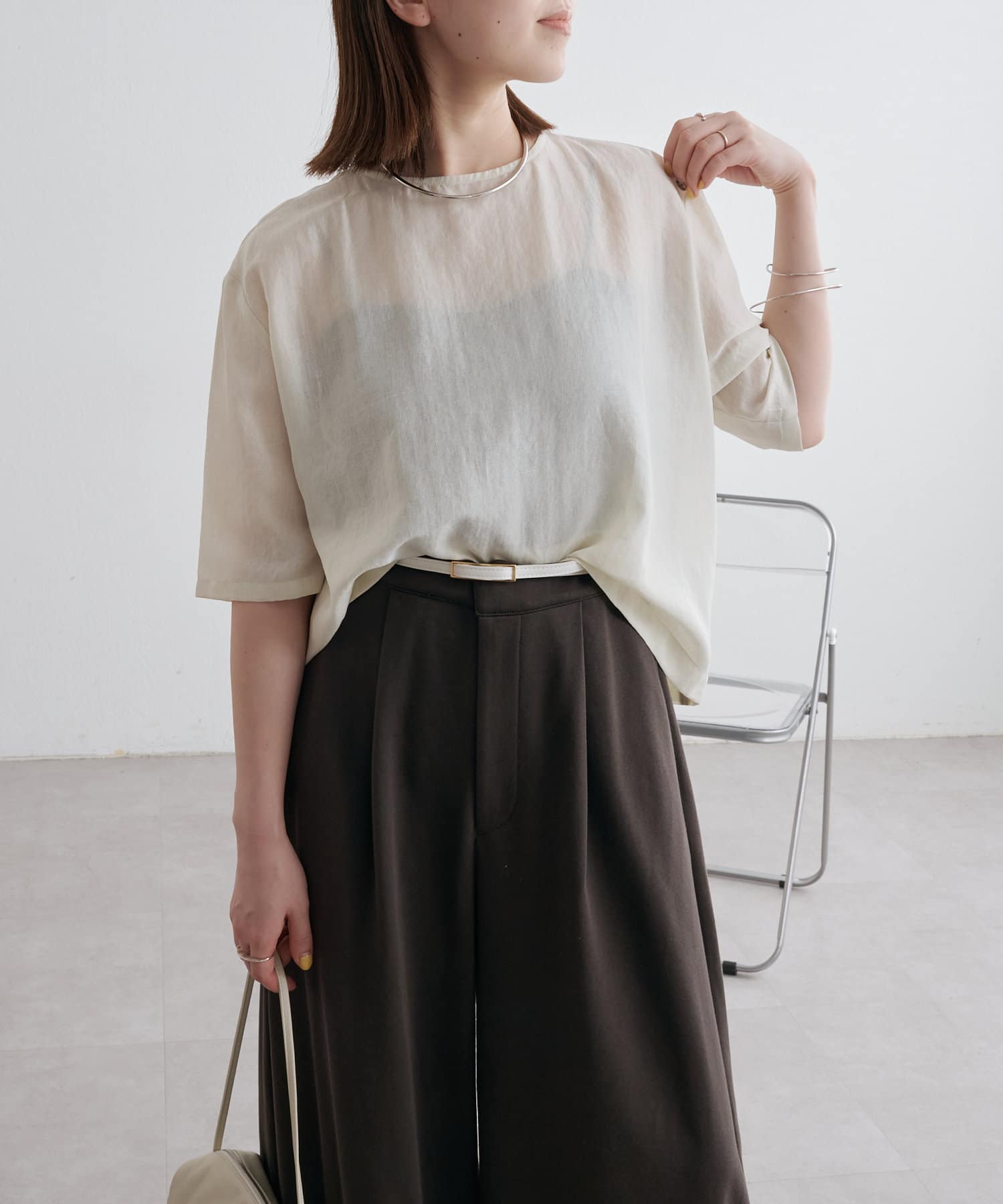 ・Tシャツのようにさらっと一枚で着ていただけるシンプルなブラウス。