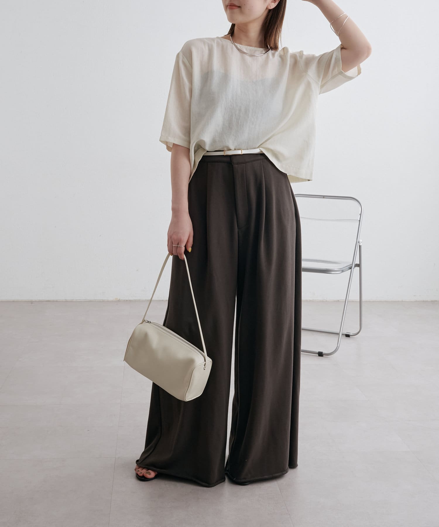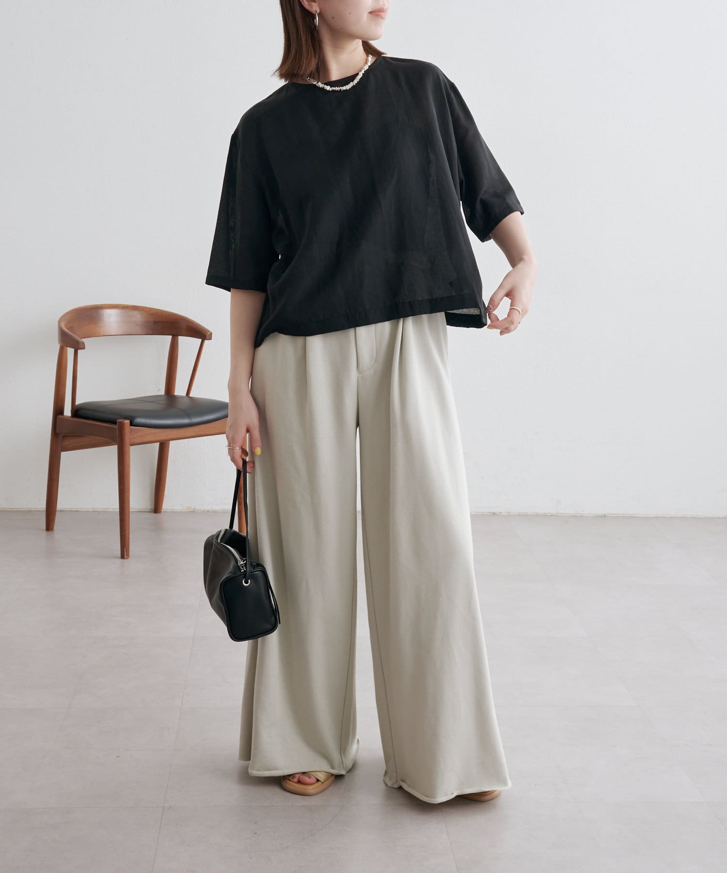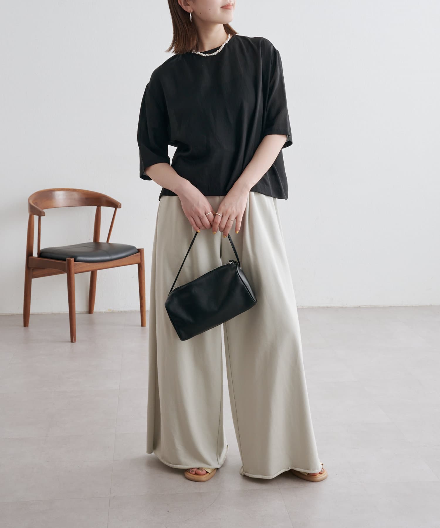【オフホワイト】スウェットワイドパンツ(チャコールグレー)