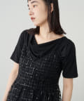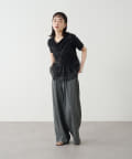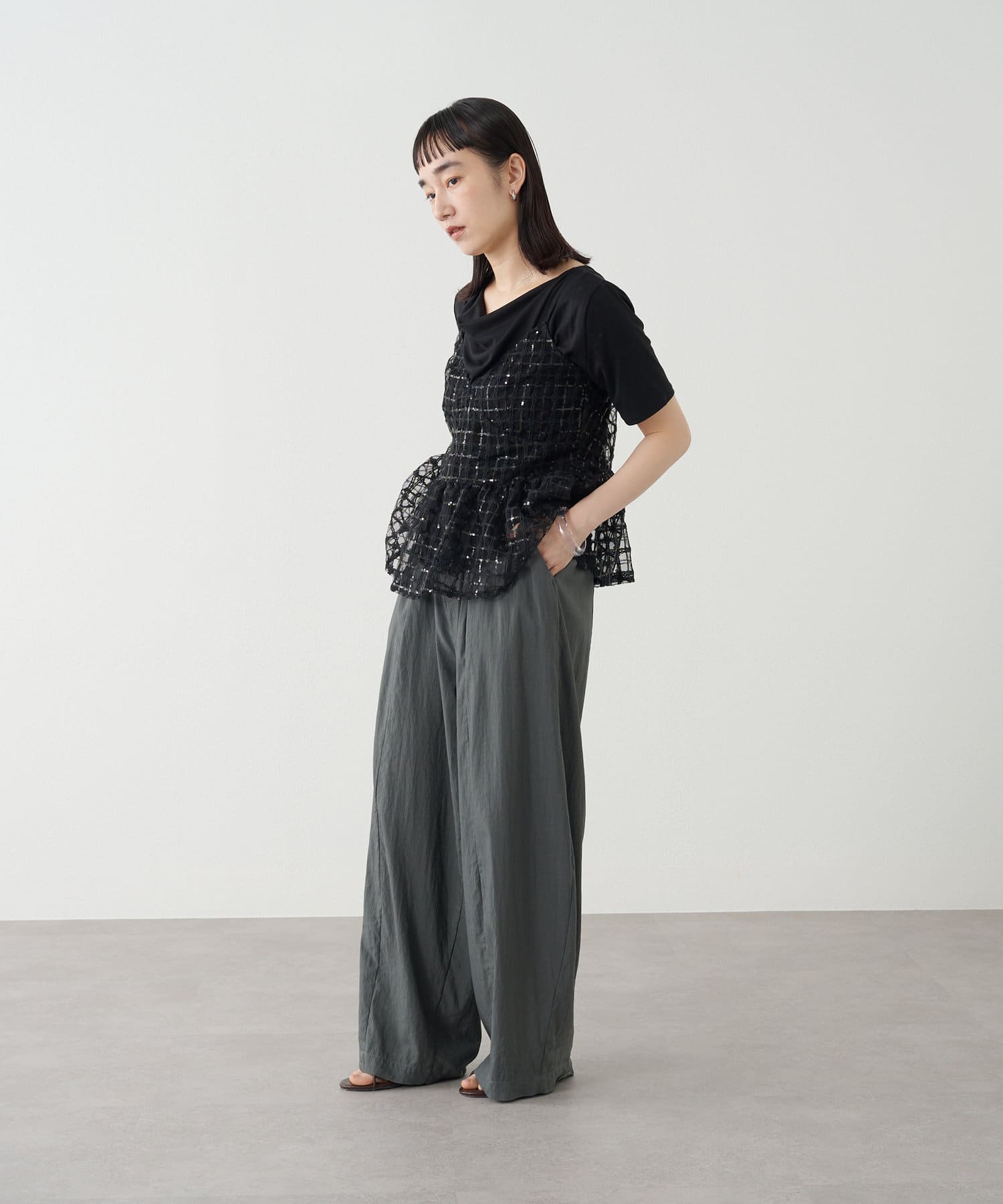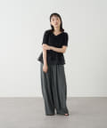 【ブラック】ボートネックドレープ半袖Tシャツ / ドロストカーブパンツ