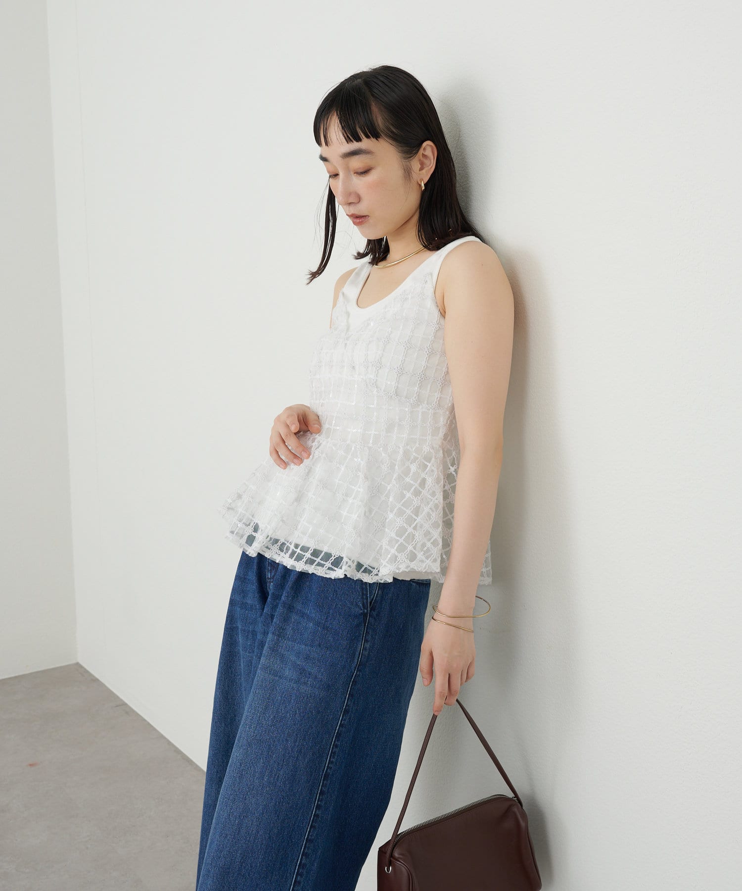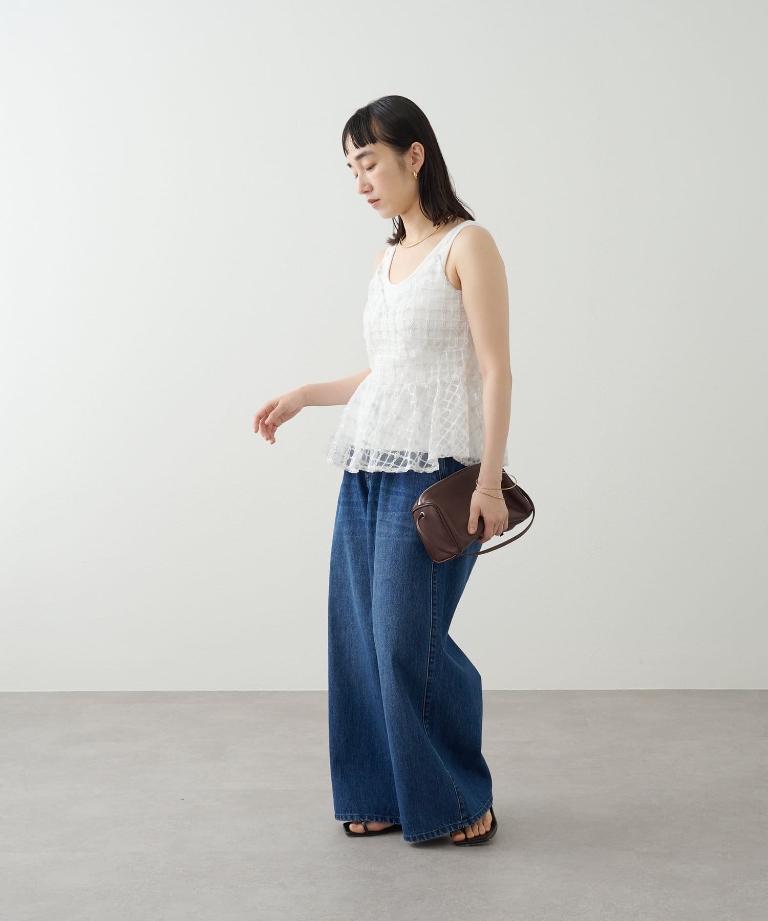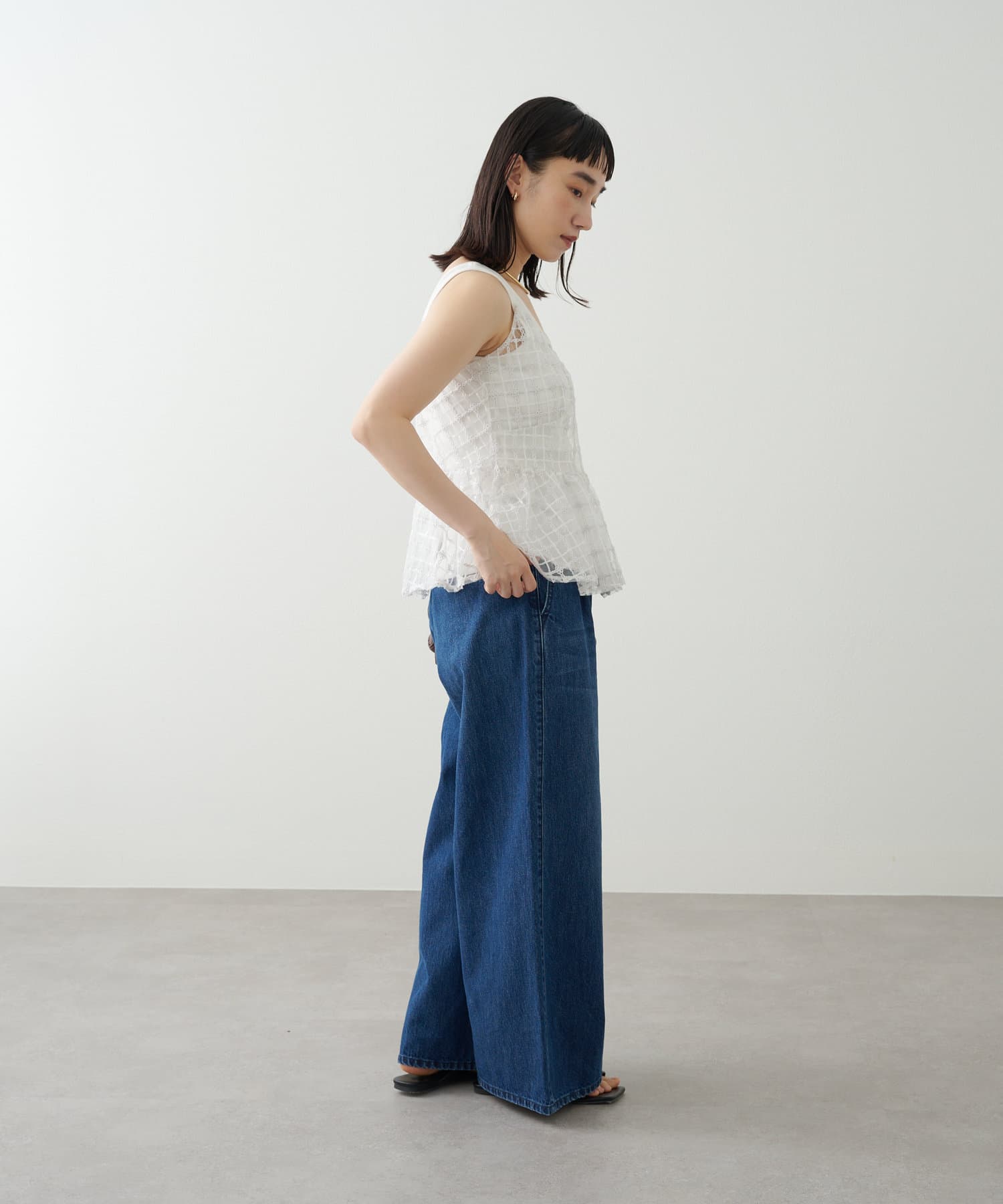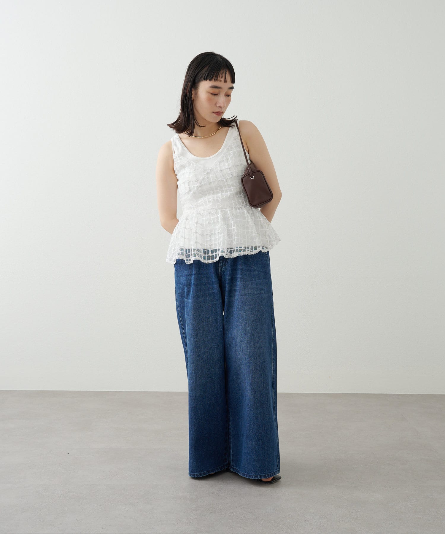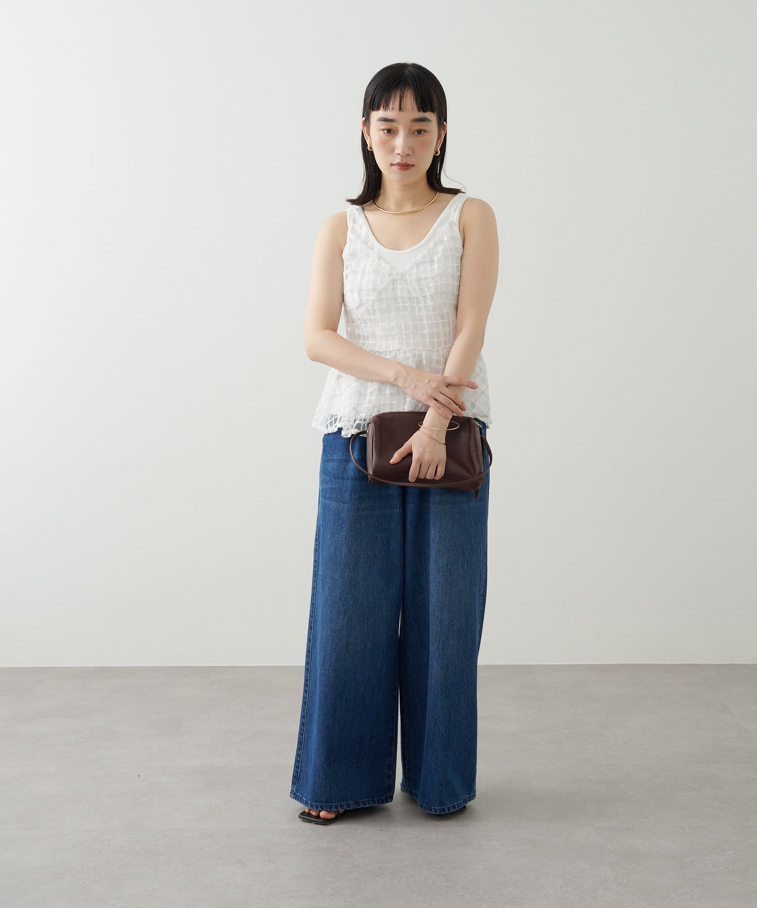 【ホワイト】Nowhere タンクトップ / ドロストタックワイドデニム