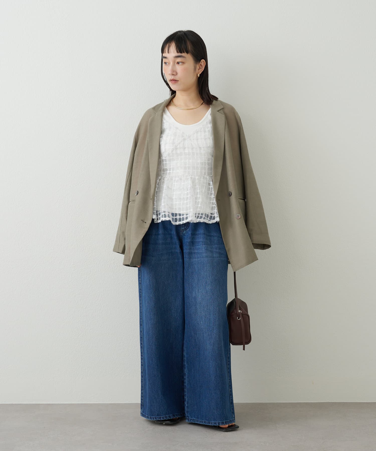 ・キャミソールやタンクトップ合わせでヘルシーに着こなすのはもちろん、ジャケット合わせでチラ見せするのもおすすめ◎