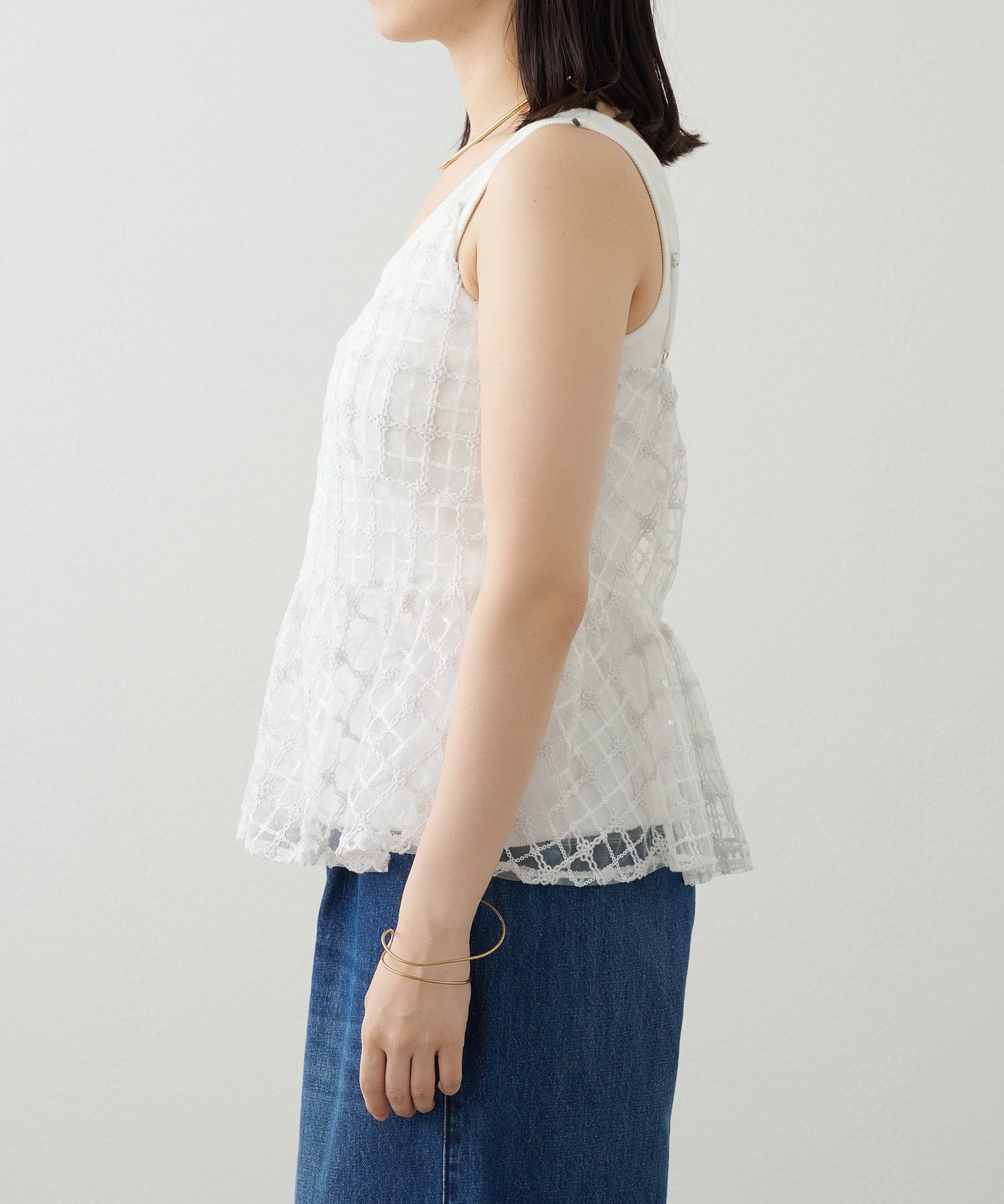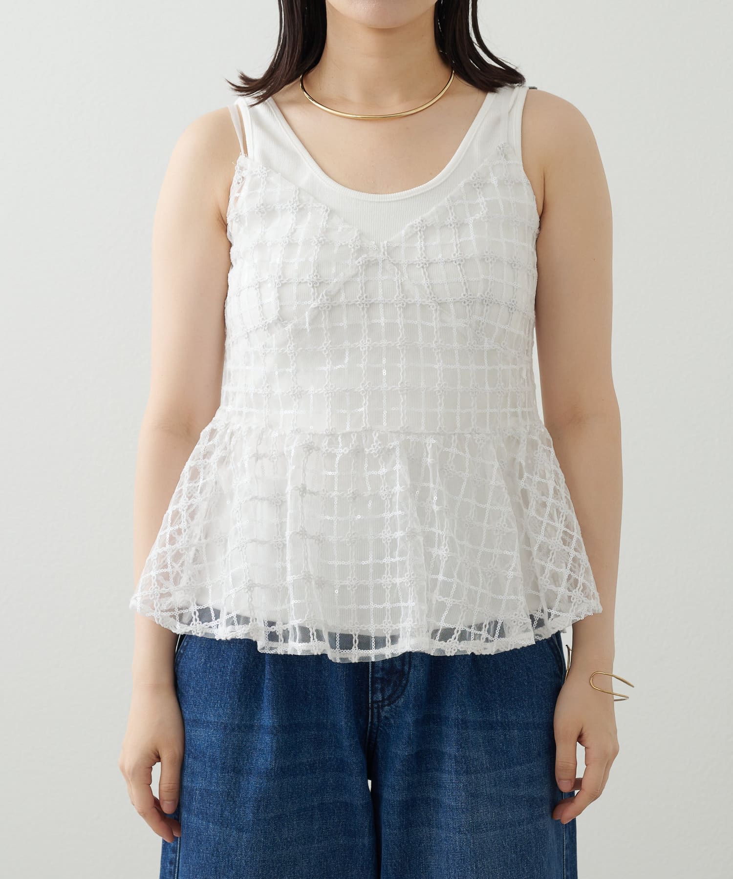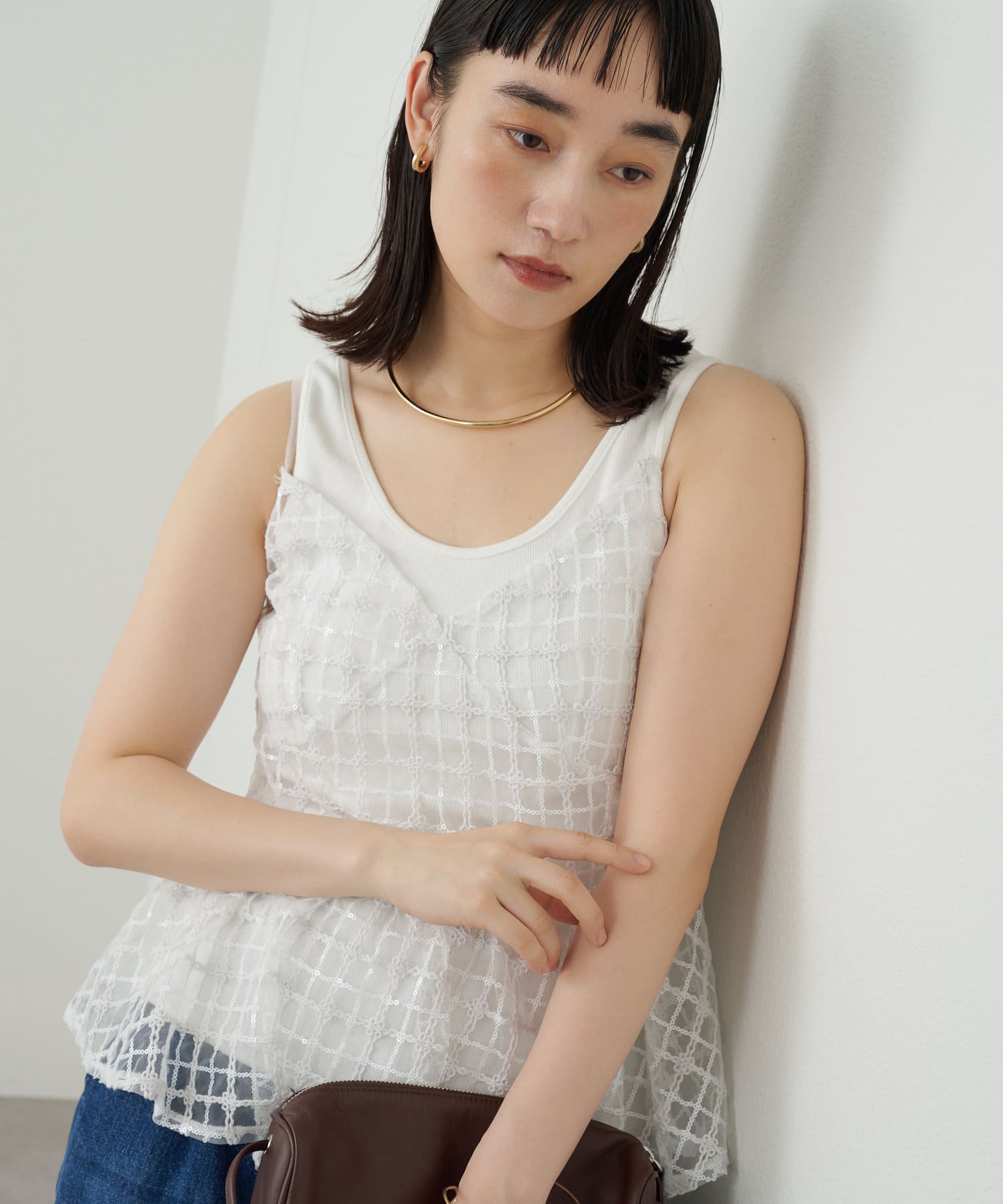 コーディネートに華やぎをプラスしてくれるスパンコールキャミ
