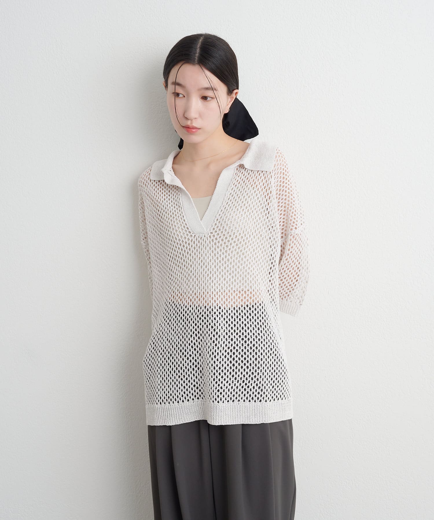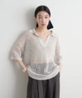 TOP > OUTLET > レディース > トップス > ニット/セーター > 【Omekashi】襟付きメッシュヘンリーニット