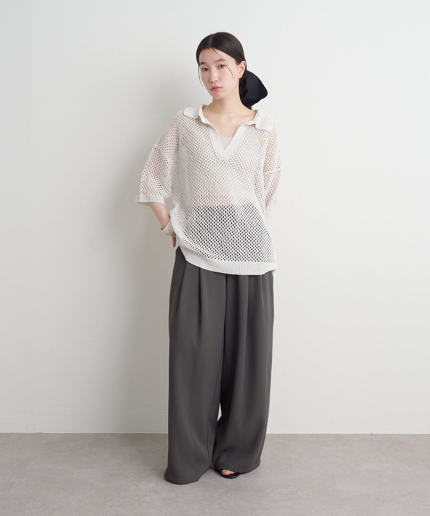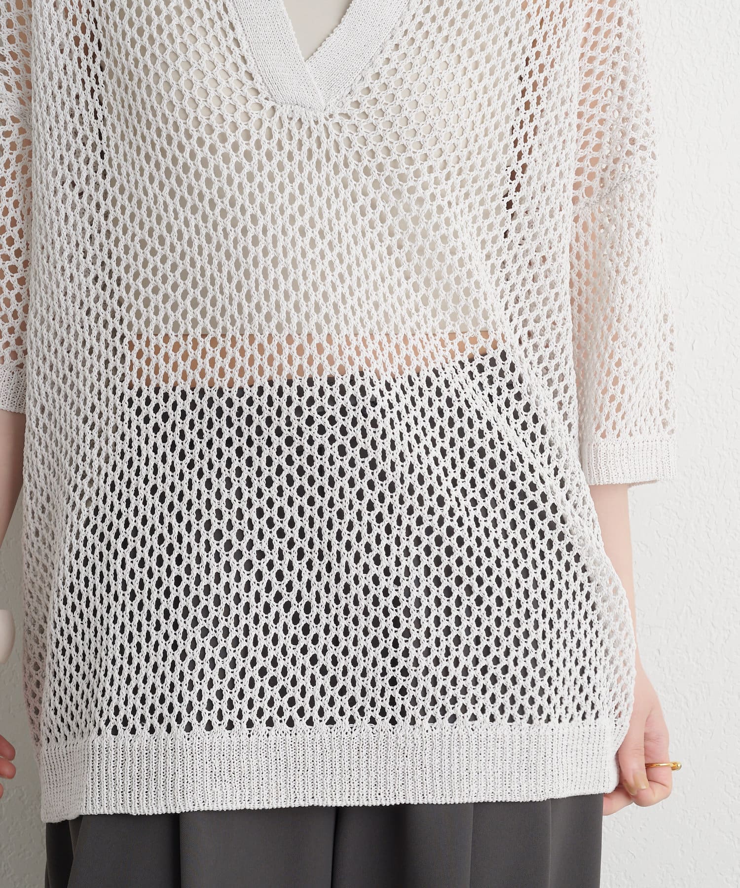 メッシュ素材が今年らしい、こなれ感のあるリラクシートップス