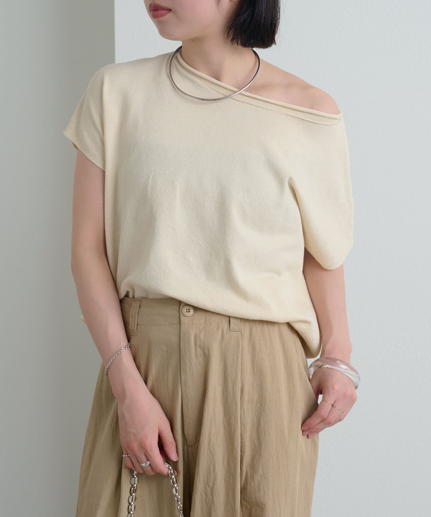 オフショルでも着用可能なこの夏たくさん着まわせるサマーニット