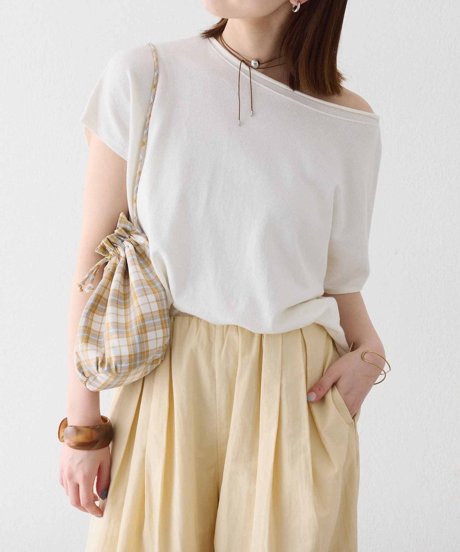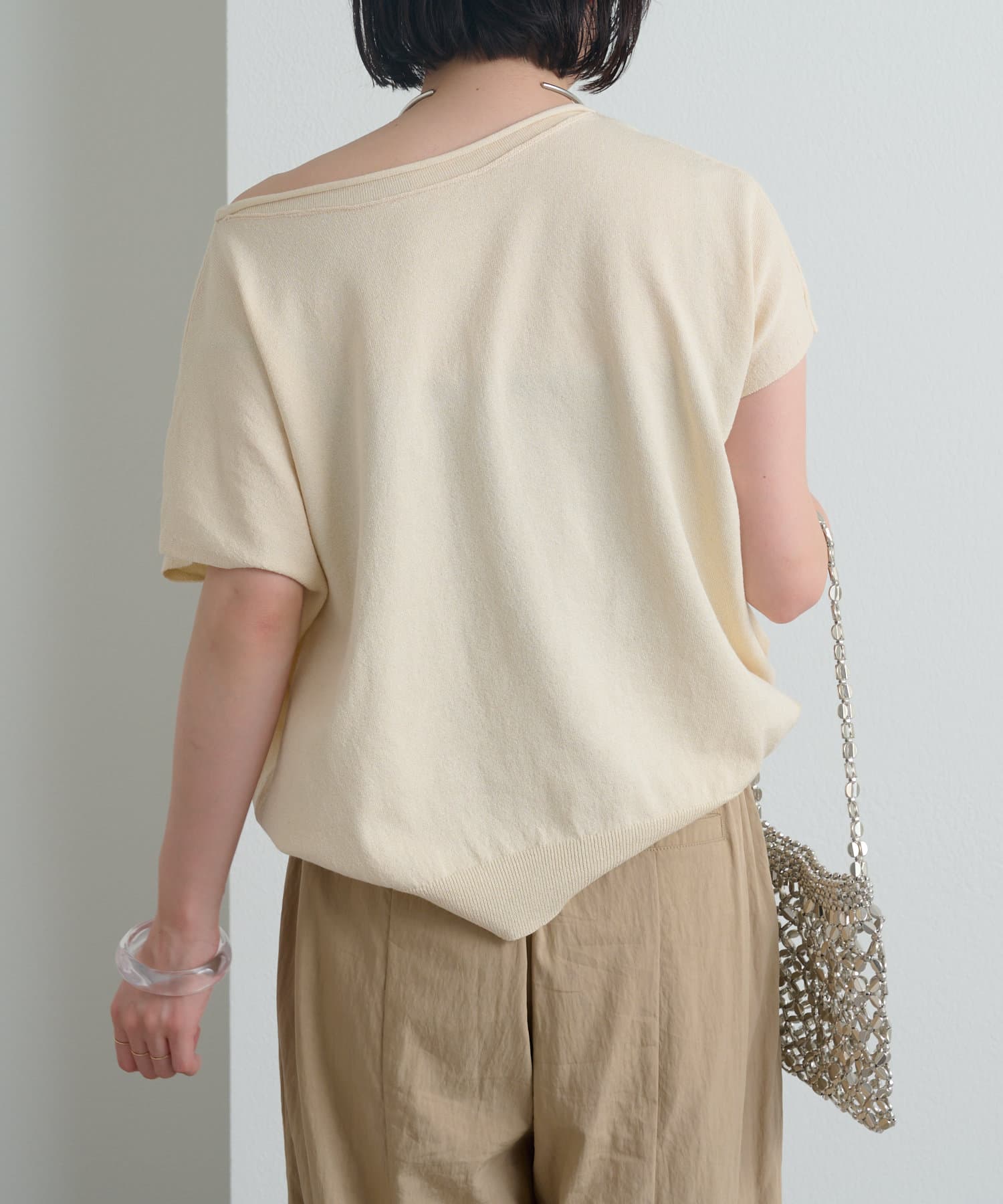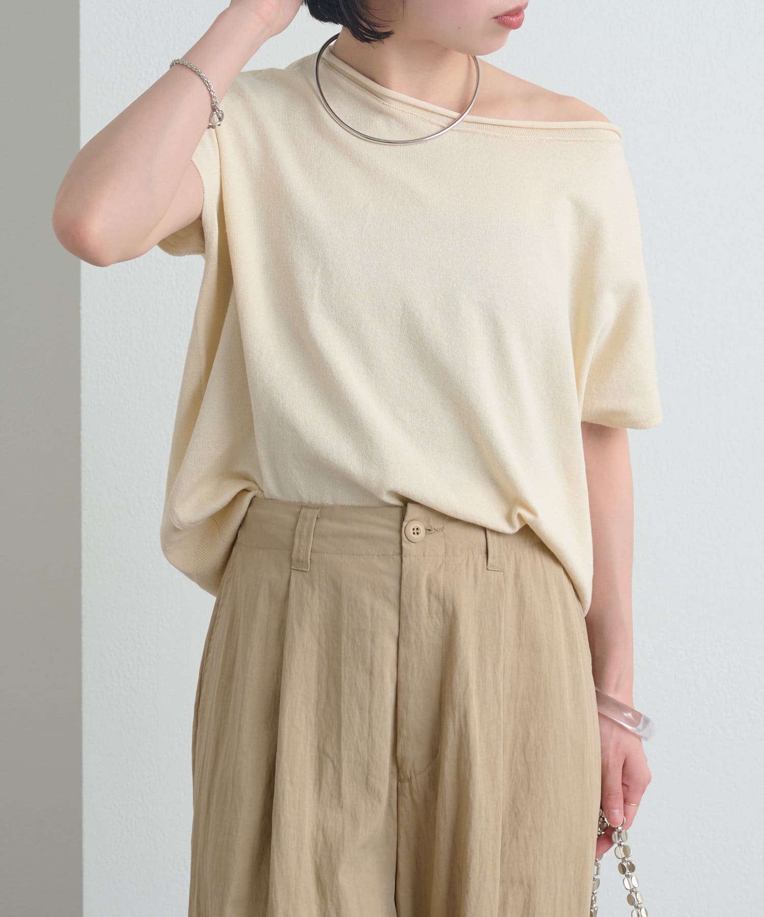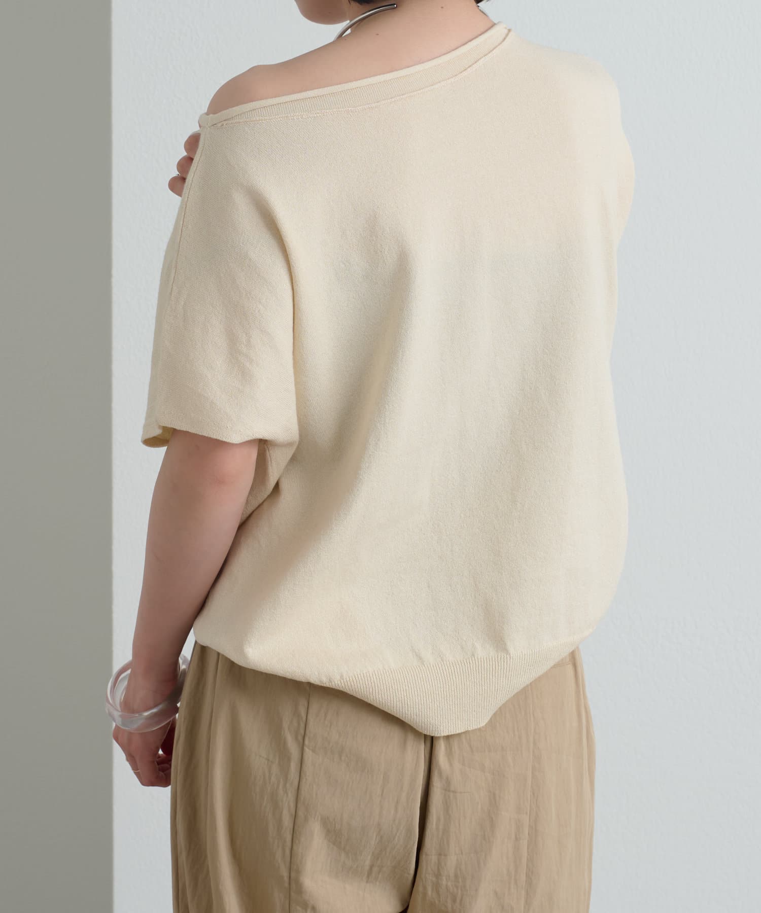 オフショルでも着用可能なこの夏たくさん着まわせるサマーニット