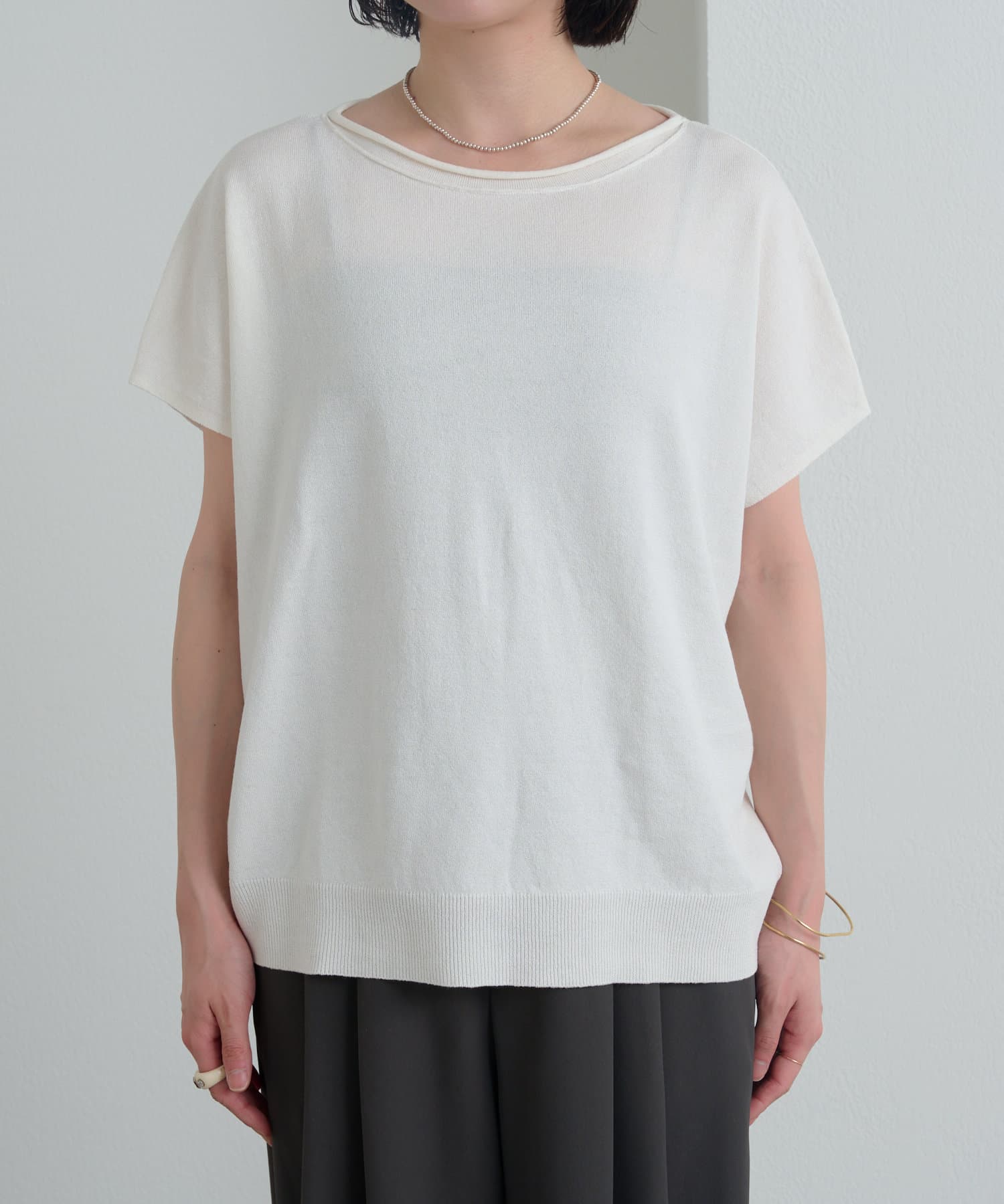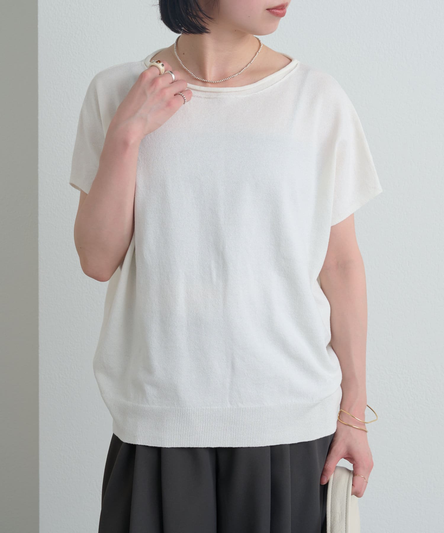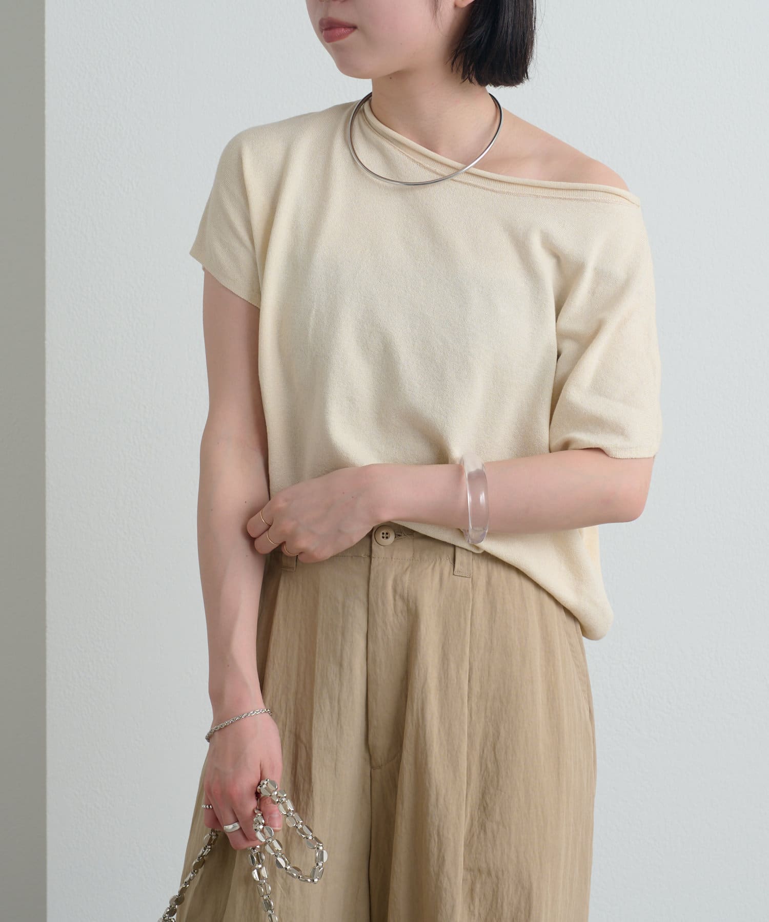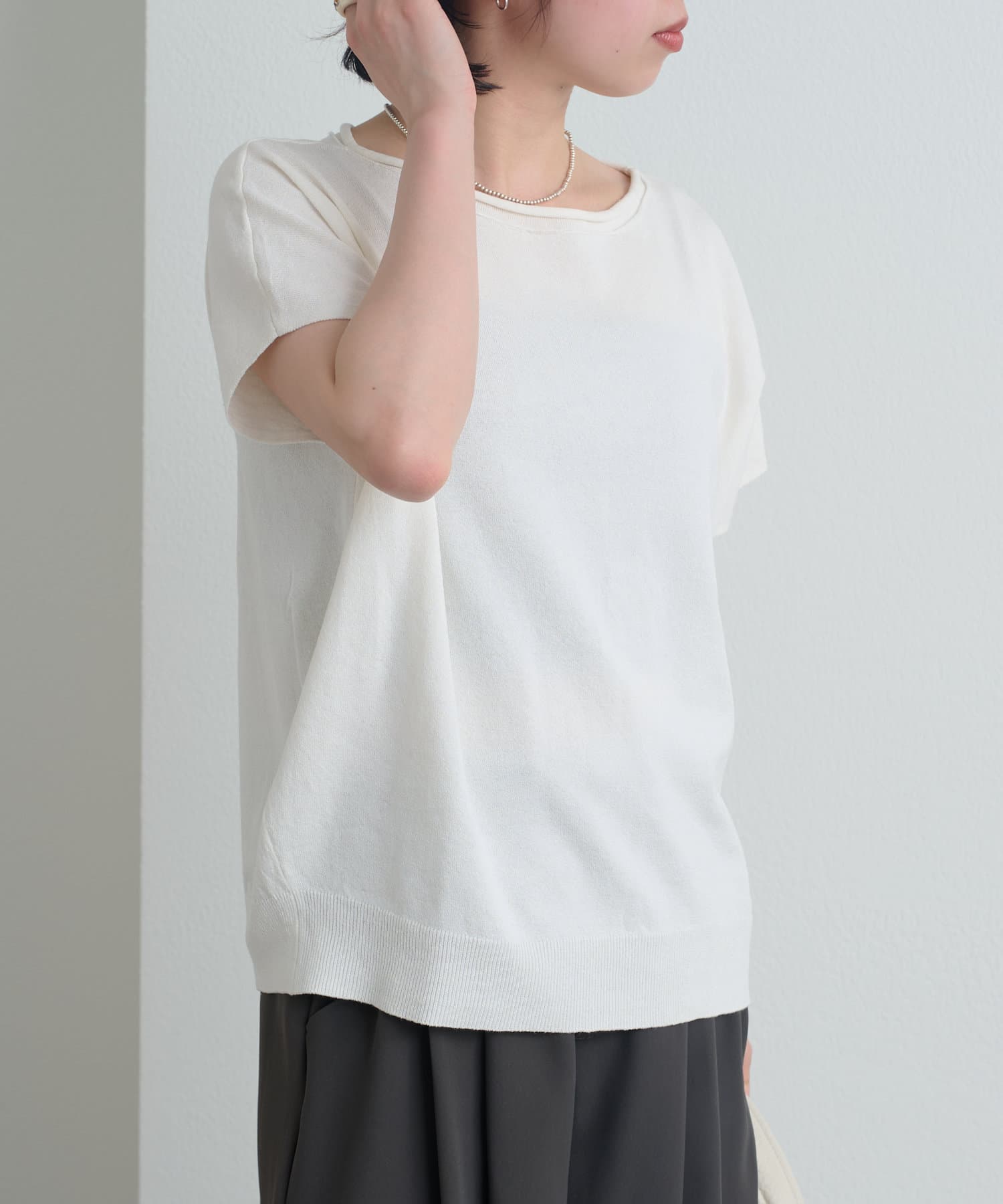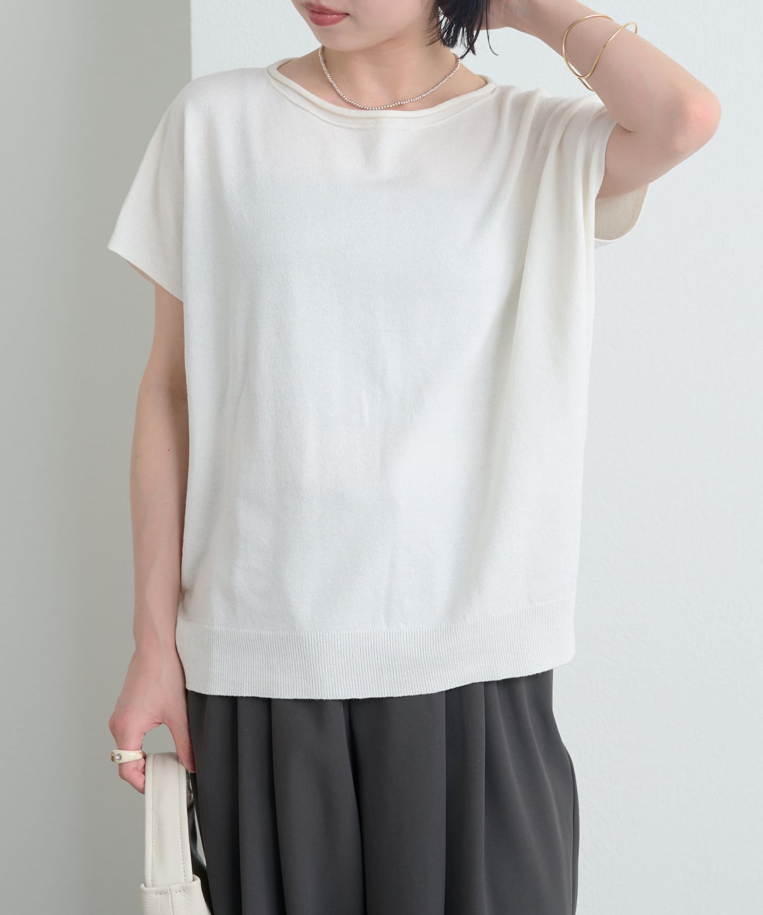 オフショルでも着用可能なこの夏たくさん着まわせるサマーニット