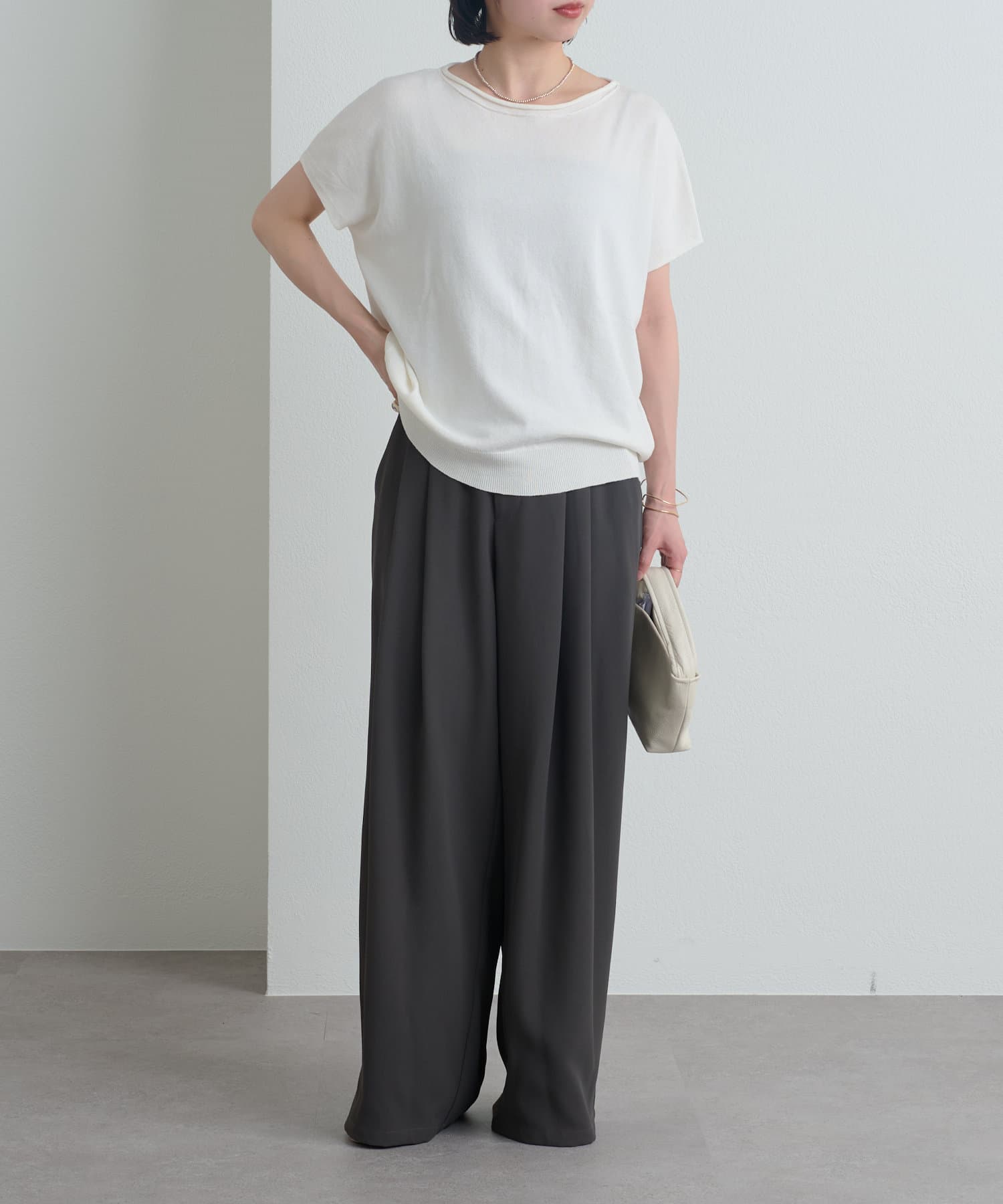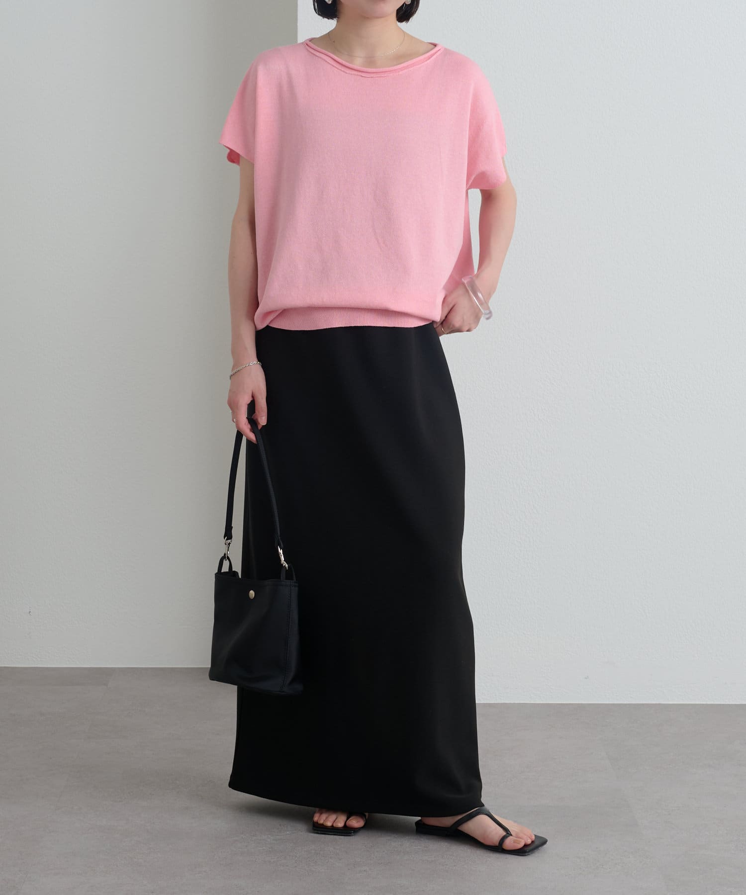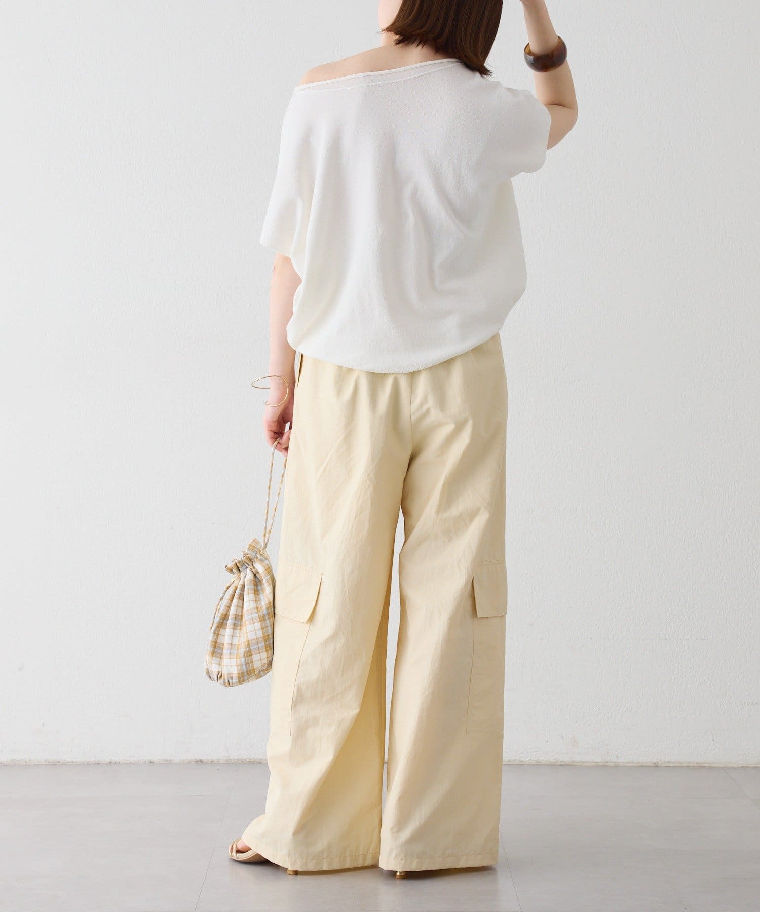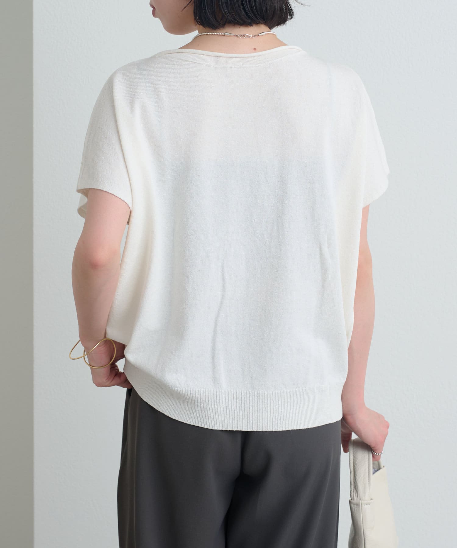 オフショルでも着用可能なこの夏たくさん着まわせるサマーニット