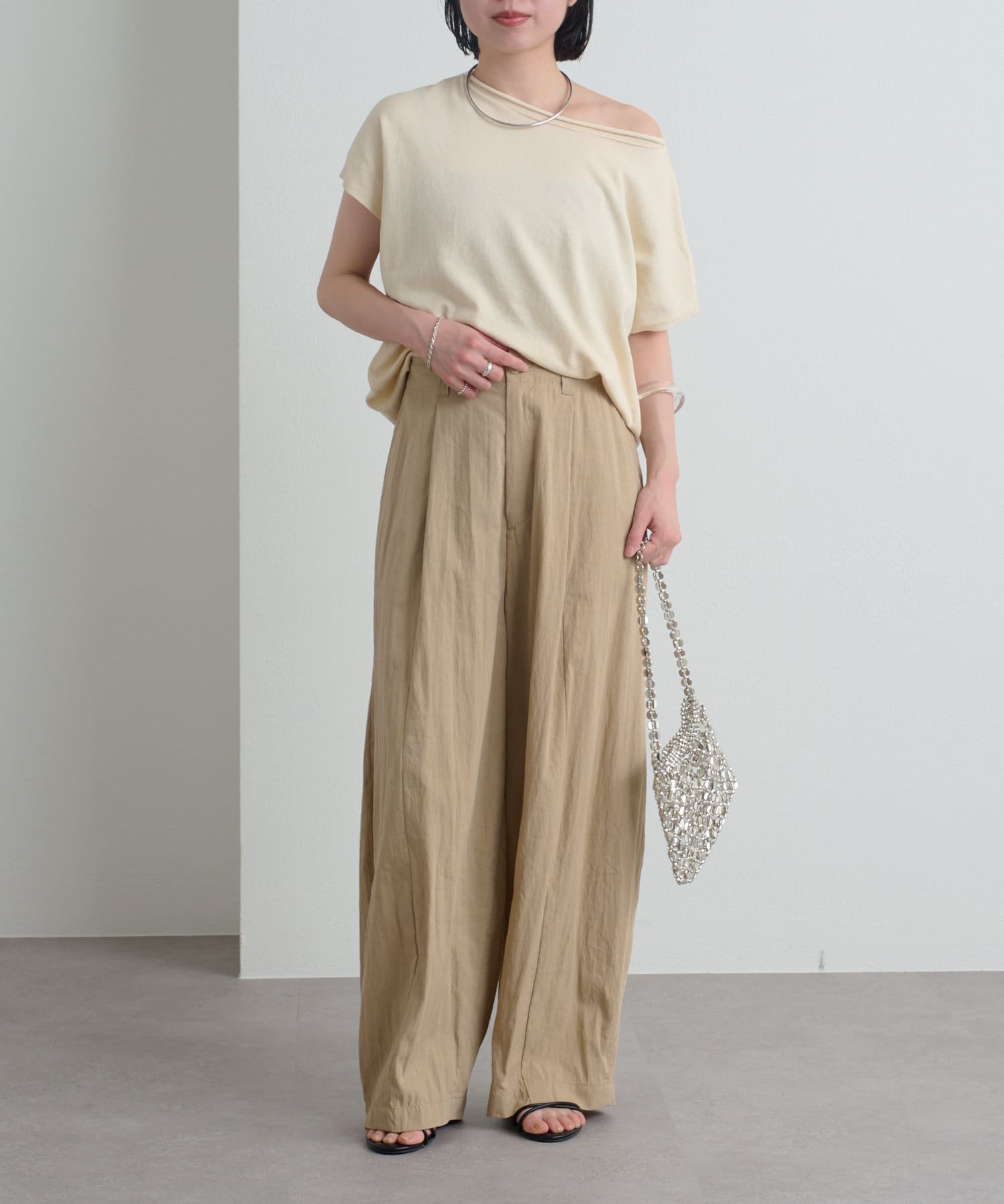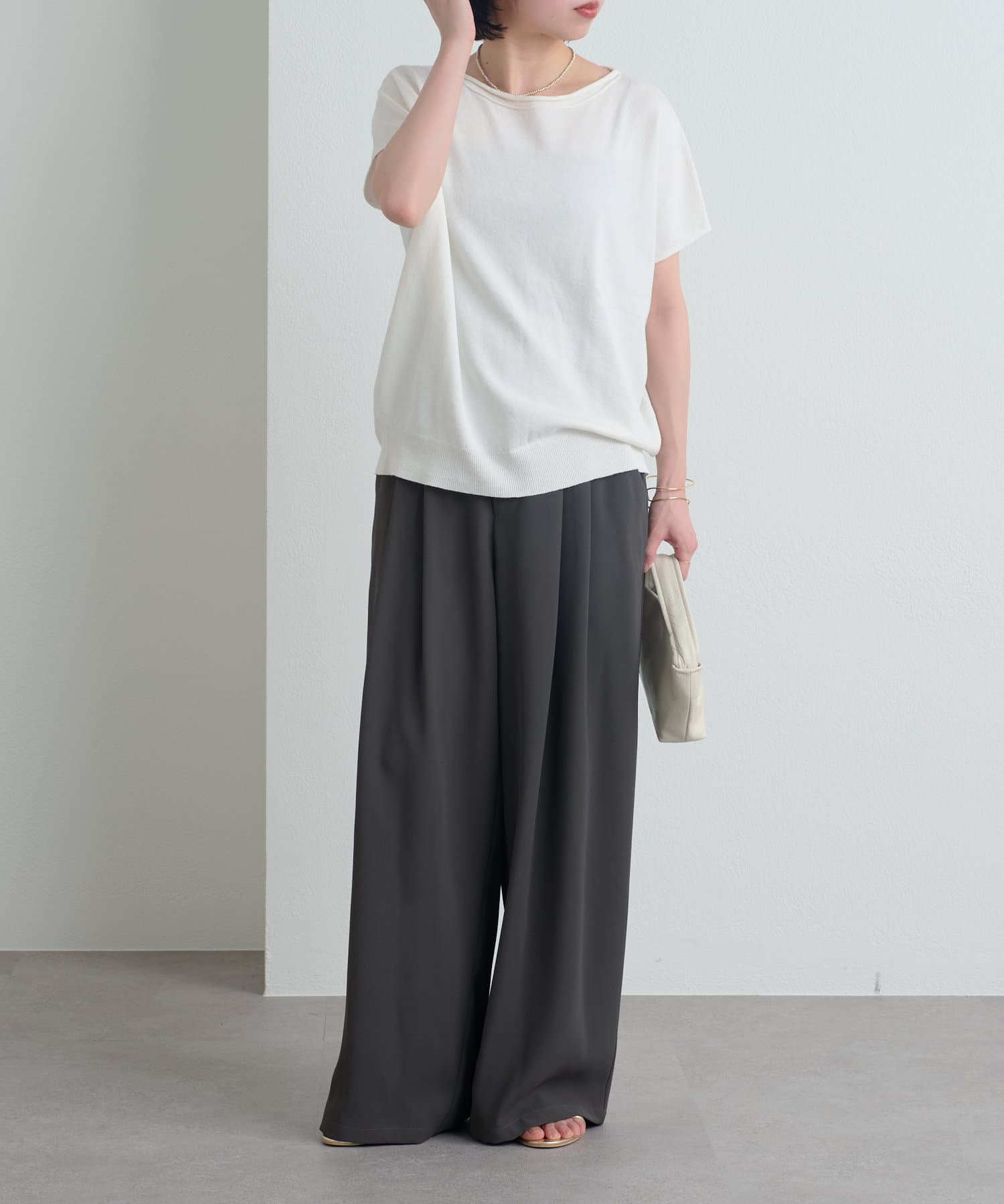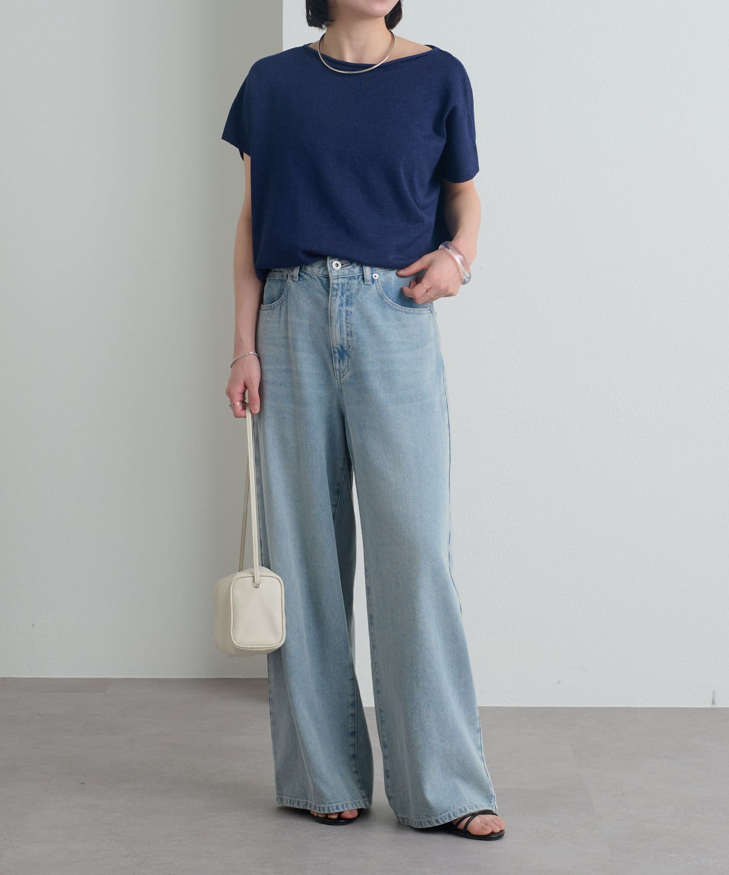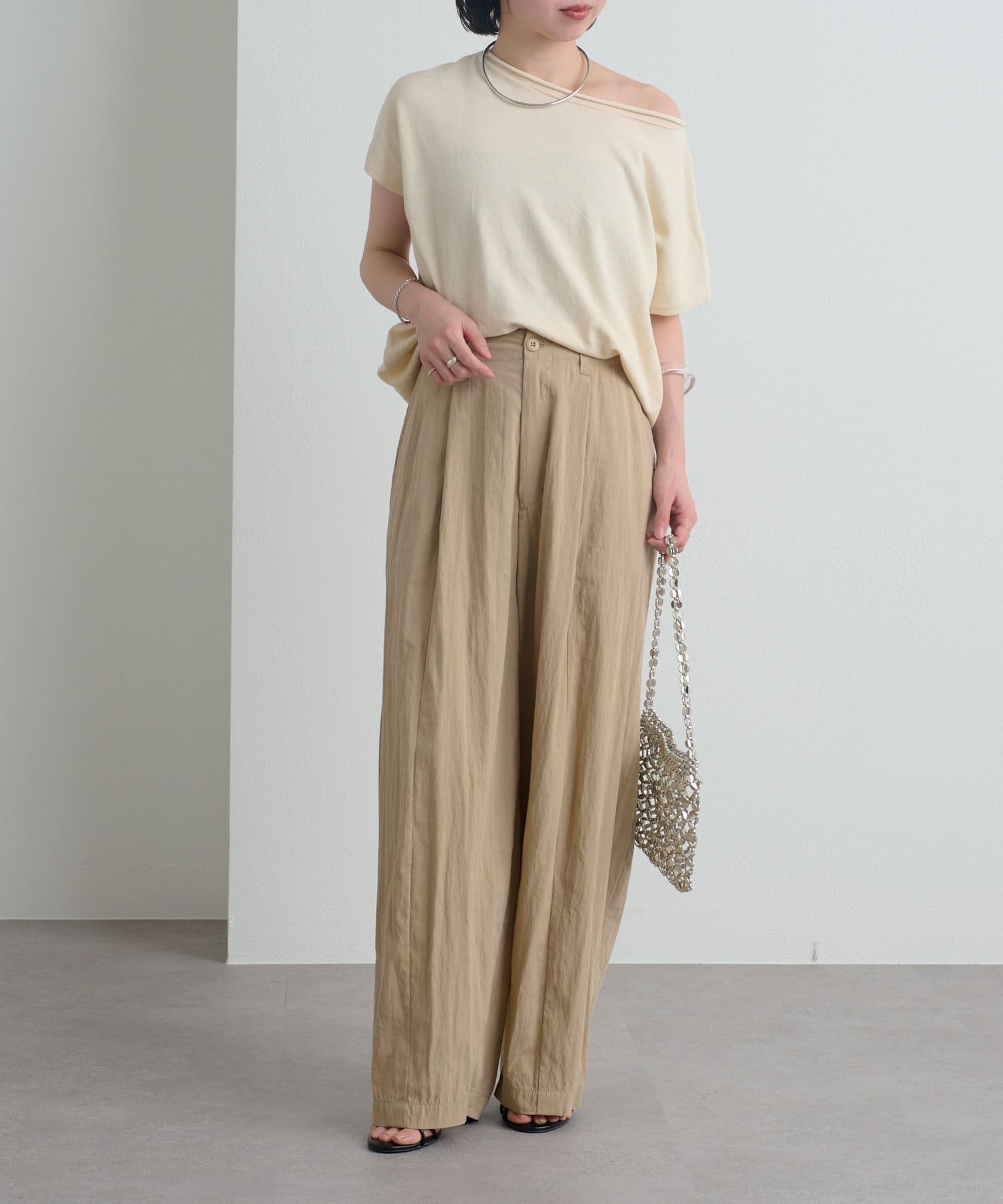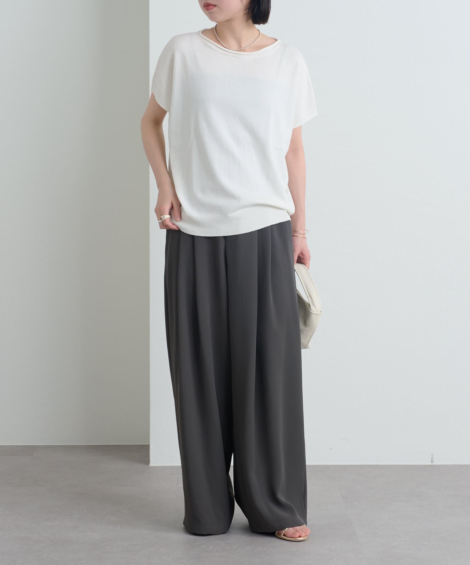 オフショルでも着用可能なこの夏たくさん着まわせるサマーニット