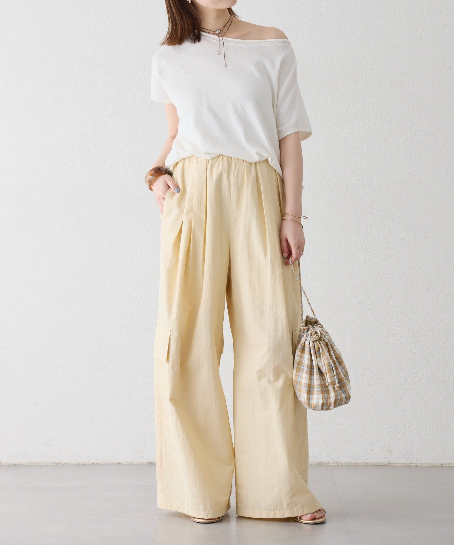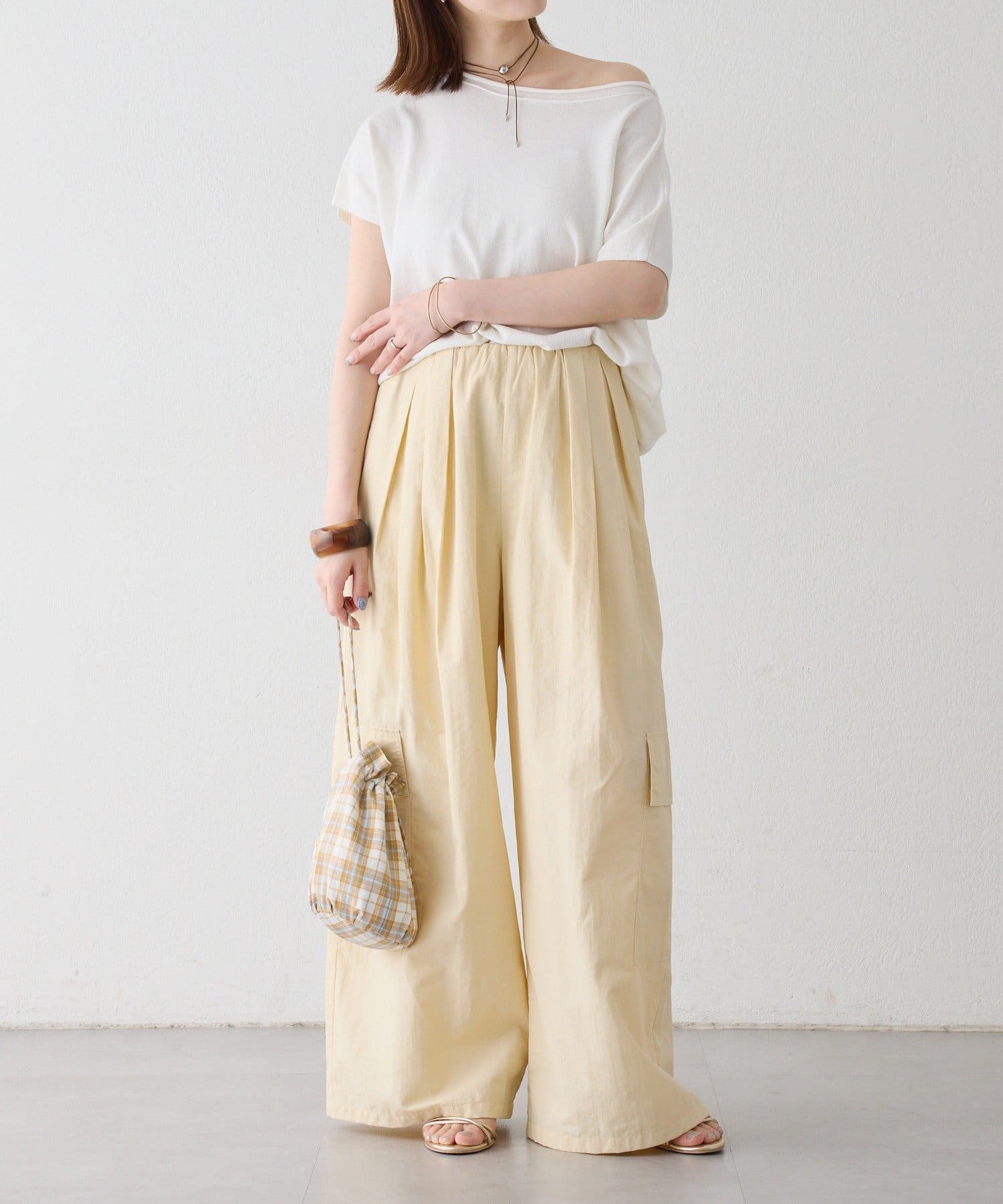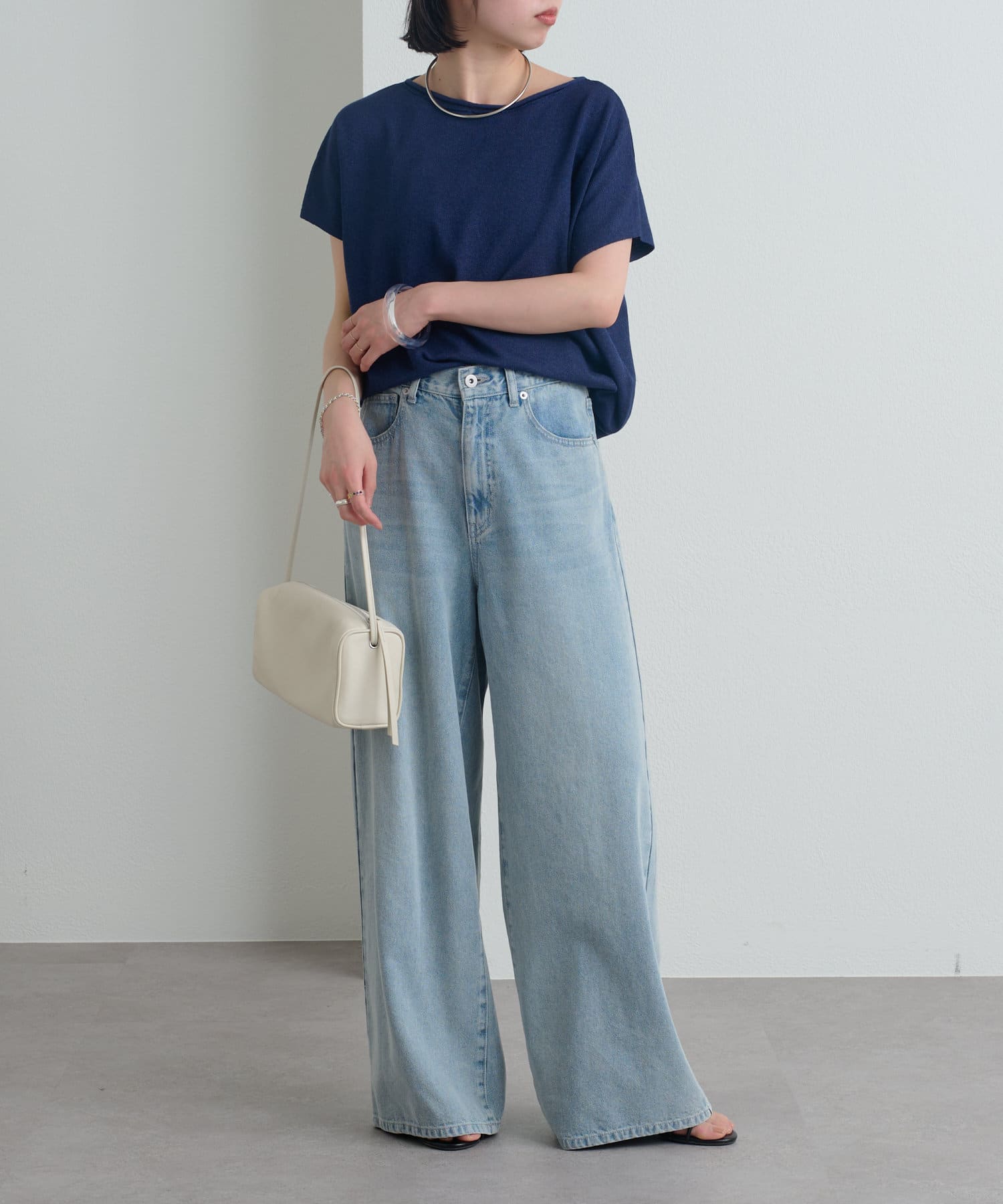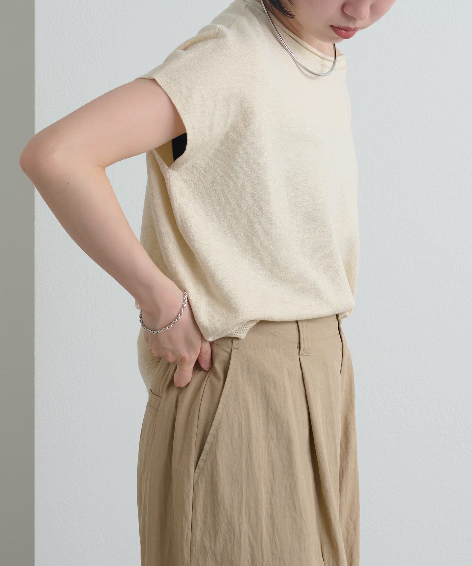 オフショルでも着用可能なこの夏たくさん着まわせるサマーニット