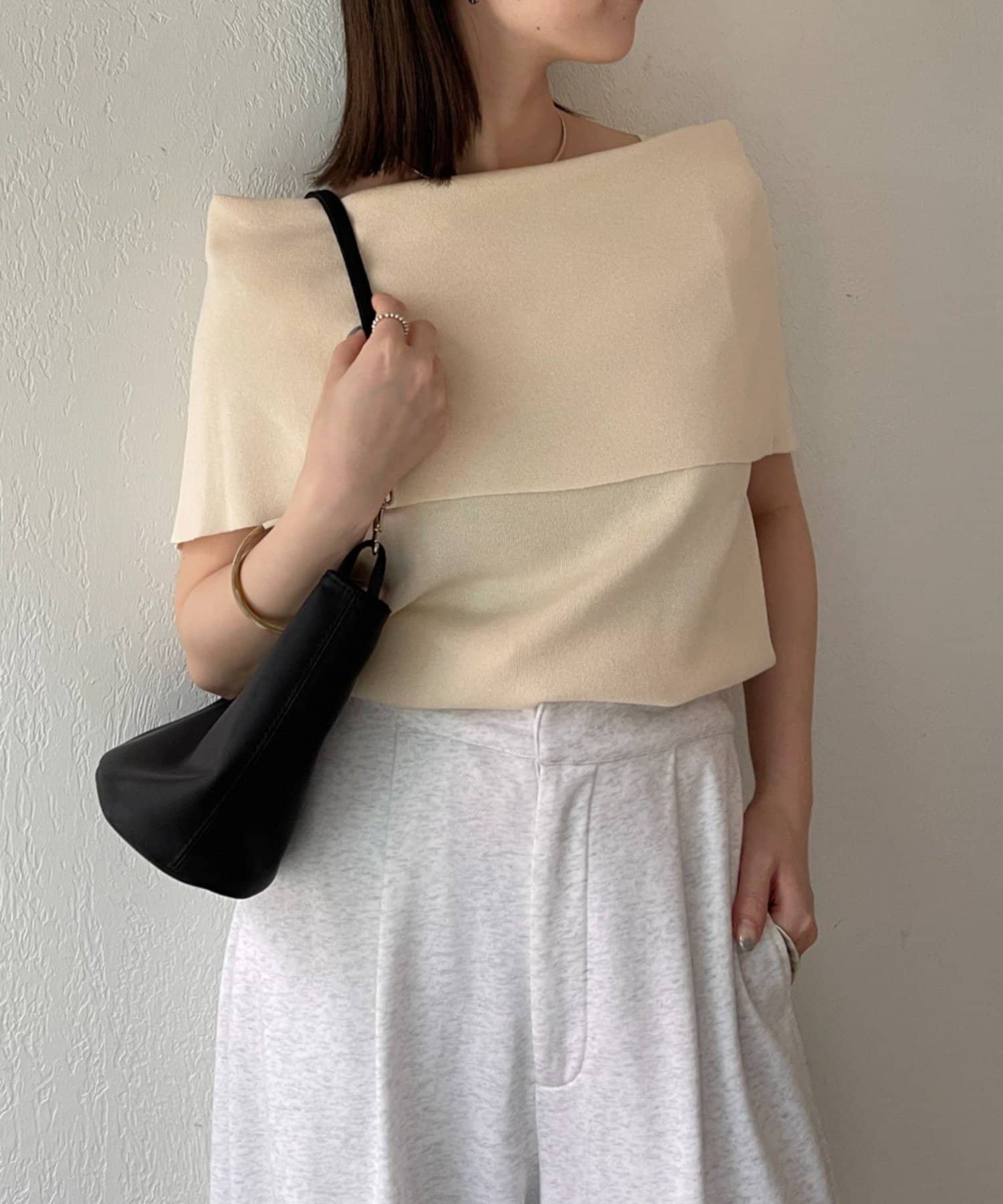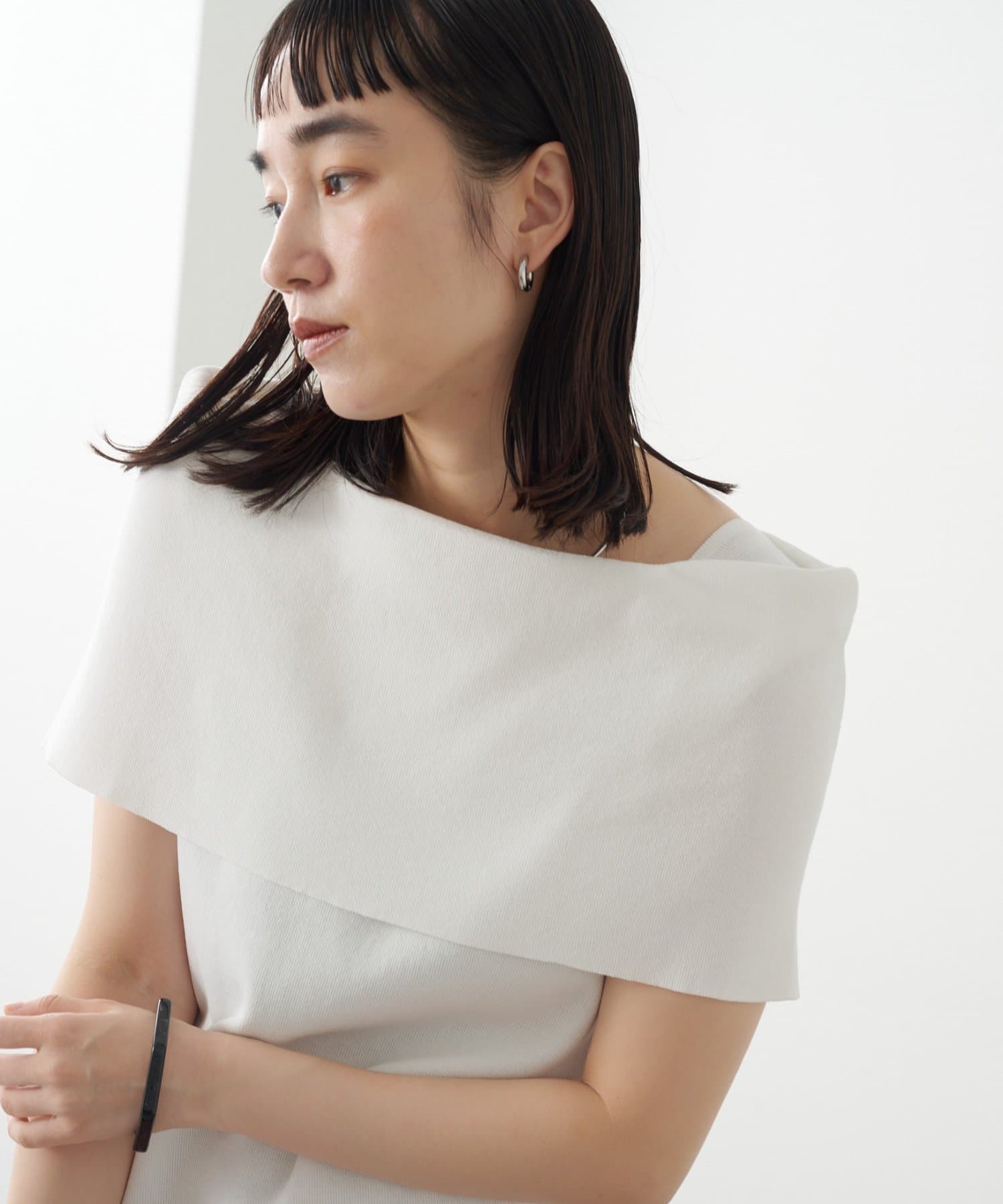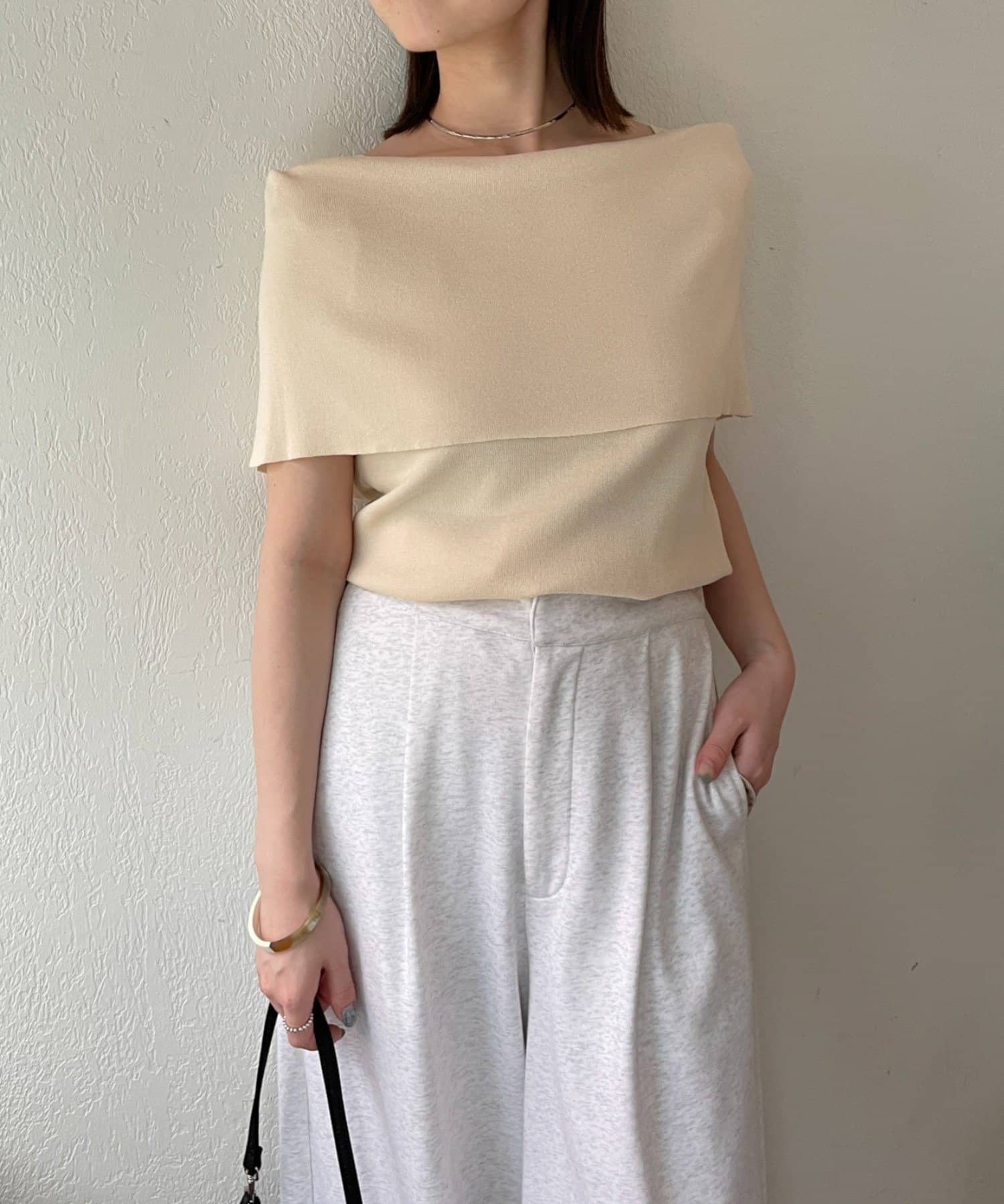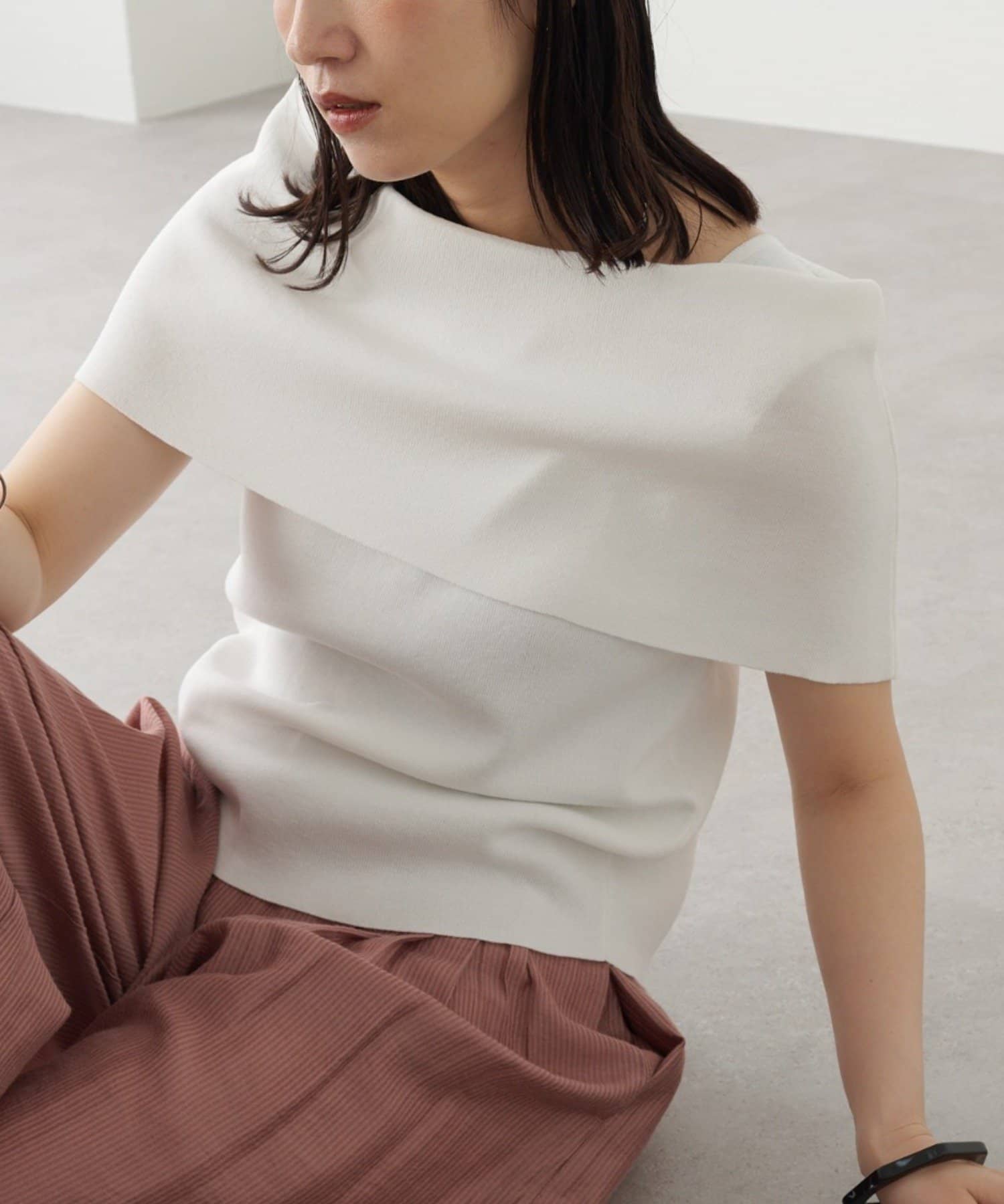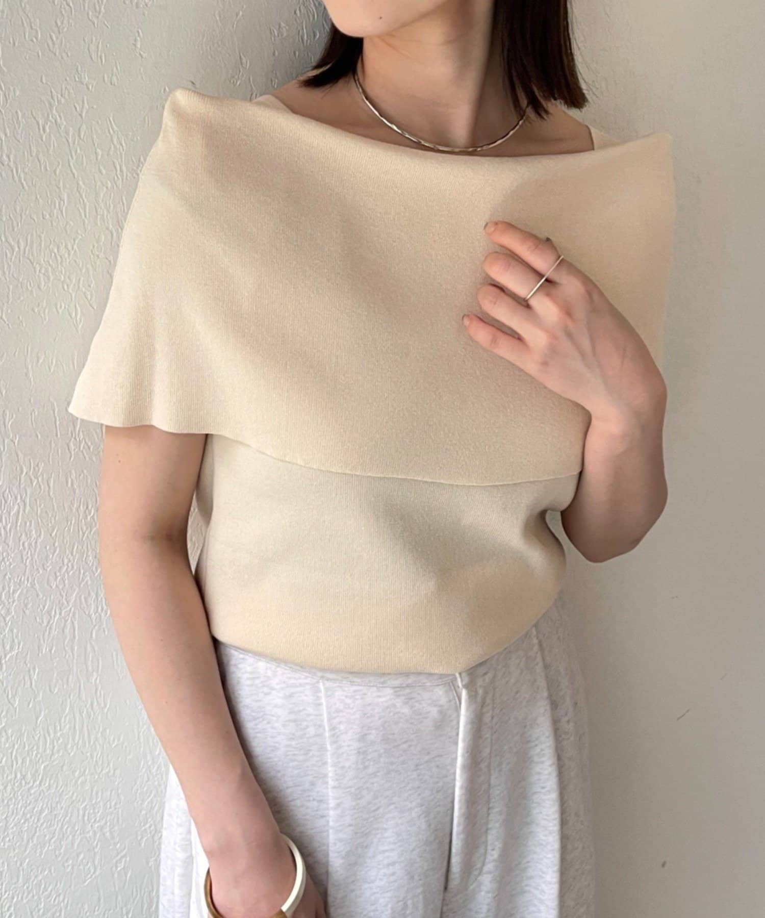 上品な肌見せが叶うノースリオフショルニット