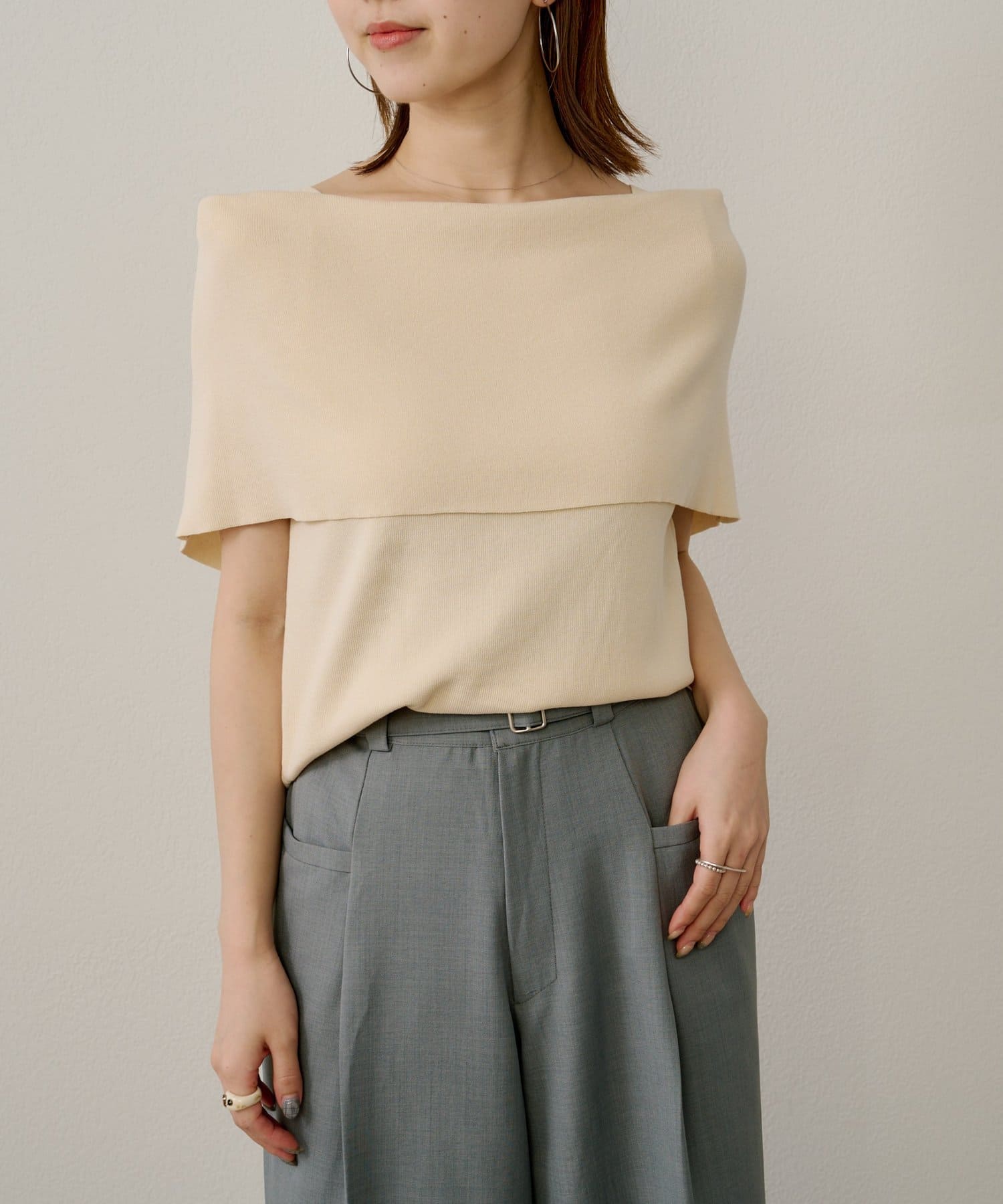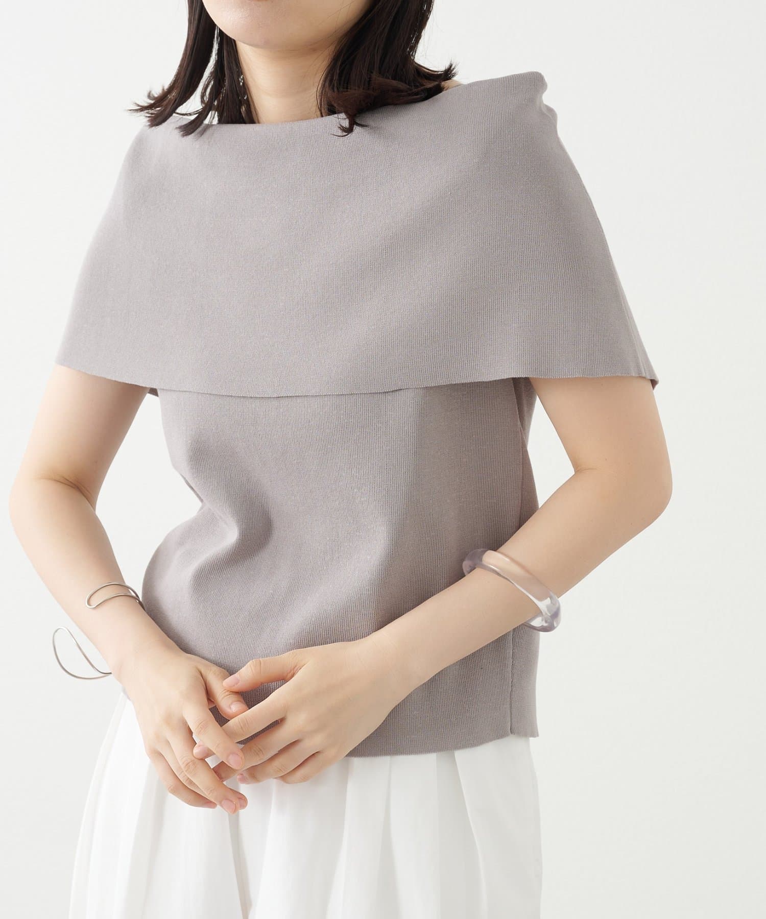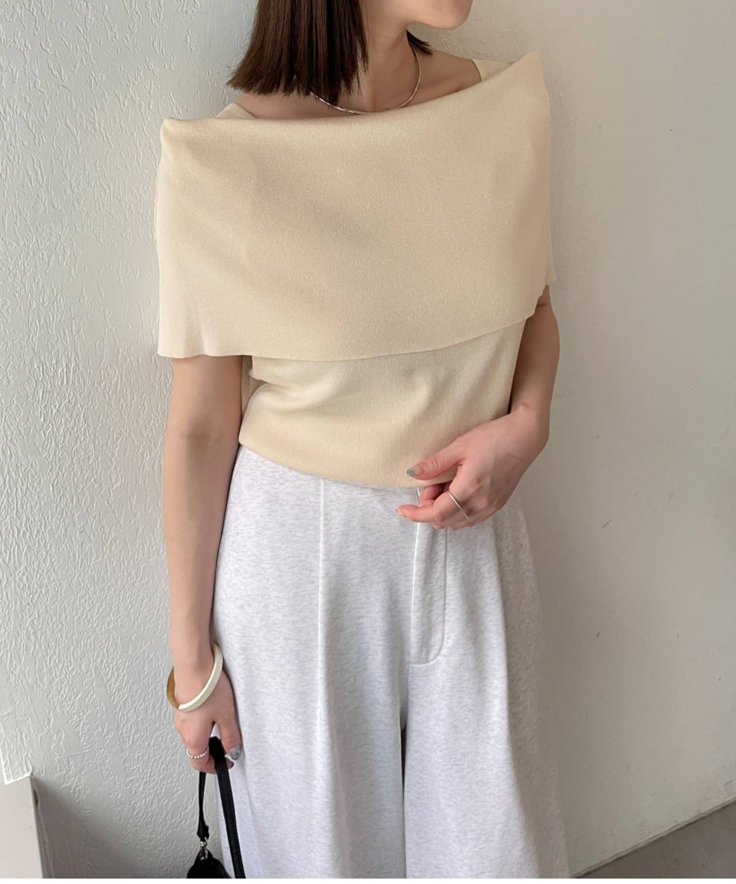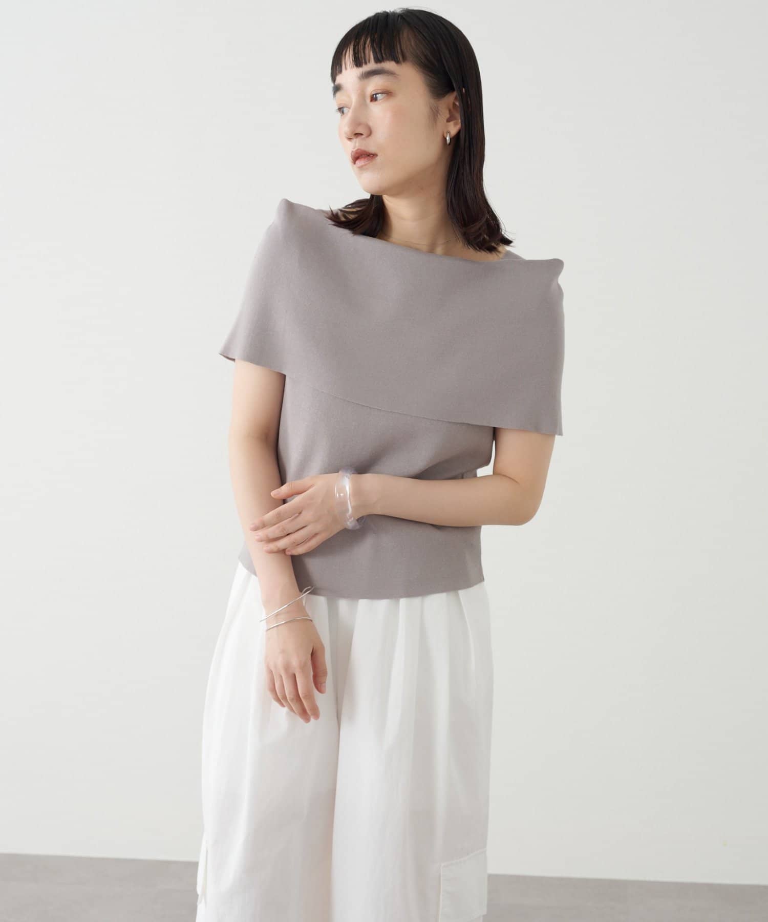上品な肌見せが叶うノースリオフショルニット