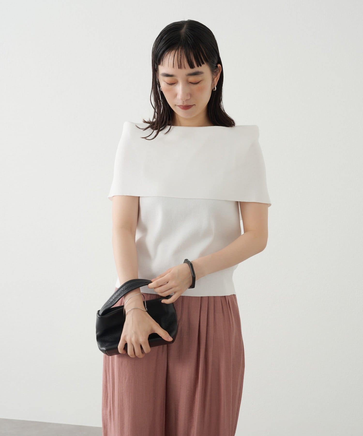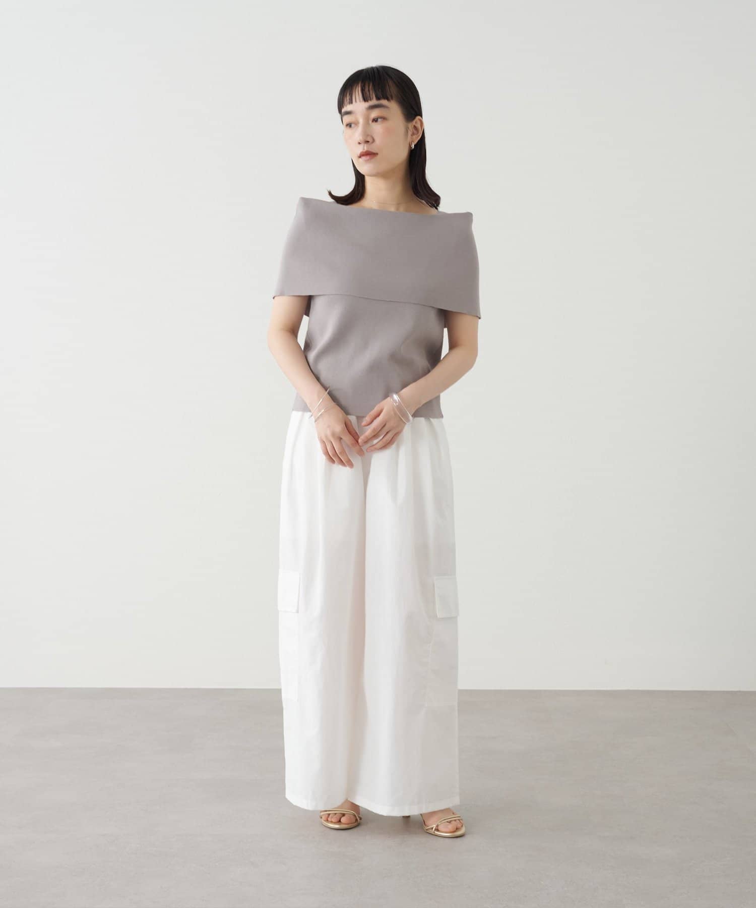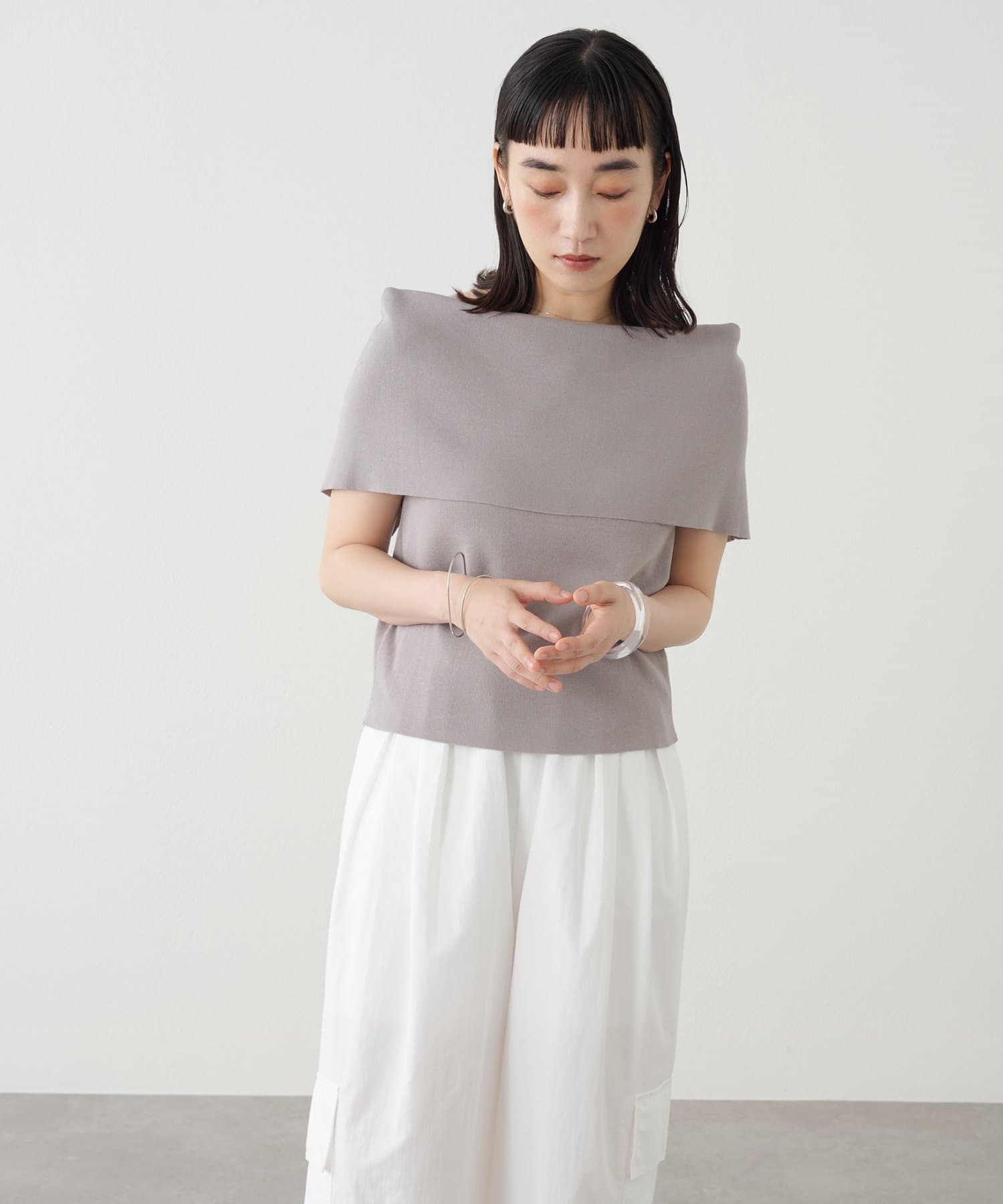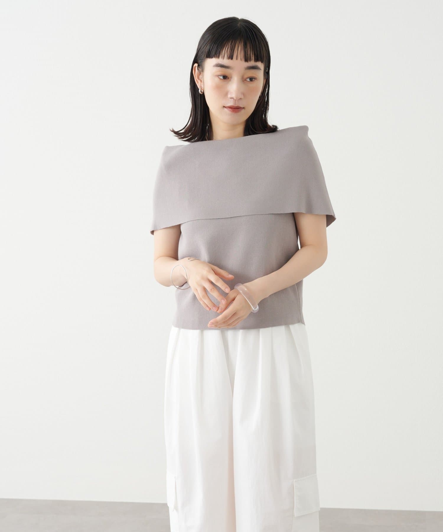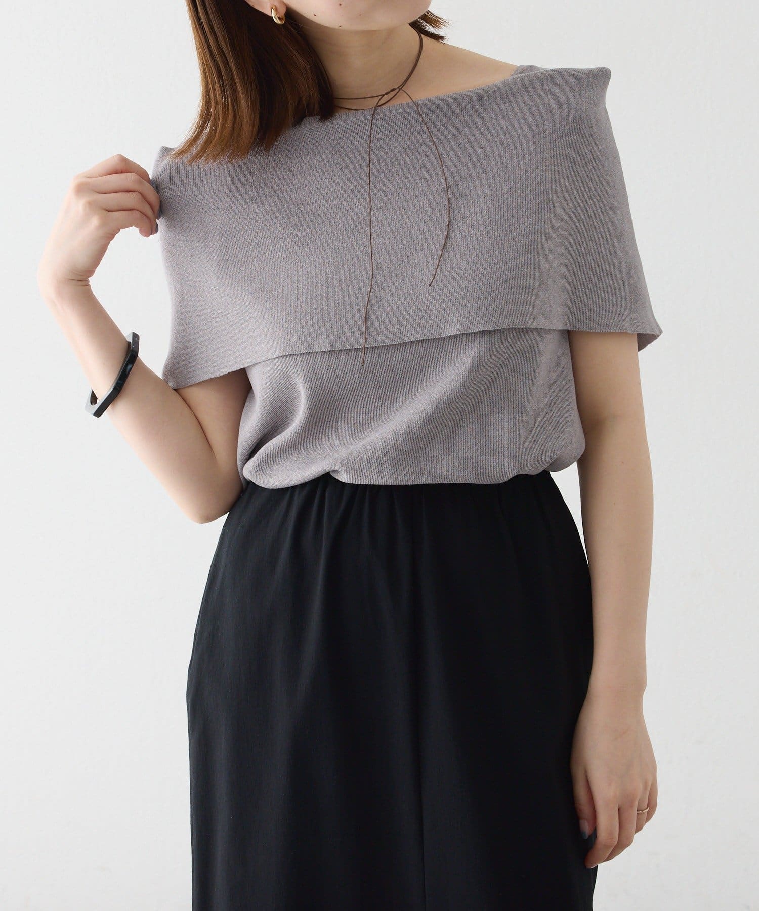 上品な肌見せが叶うノースリオフショルニット