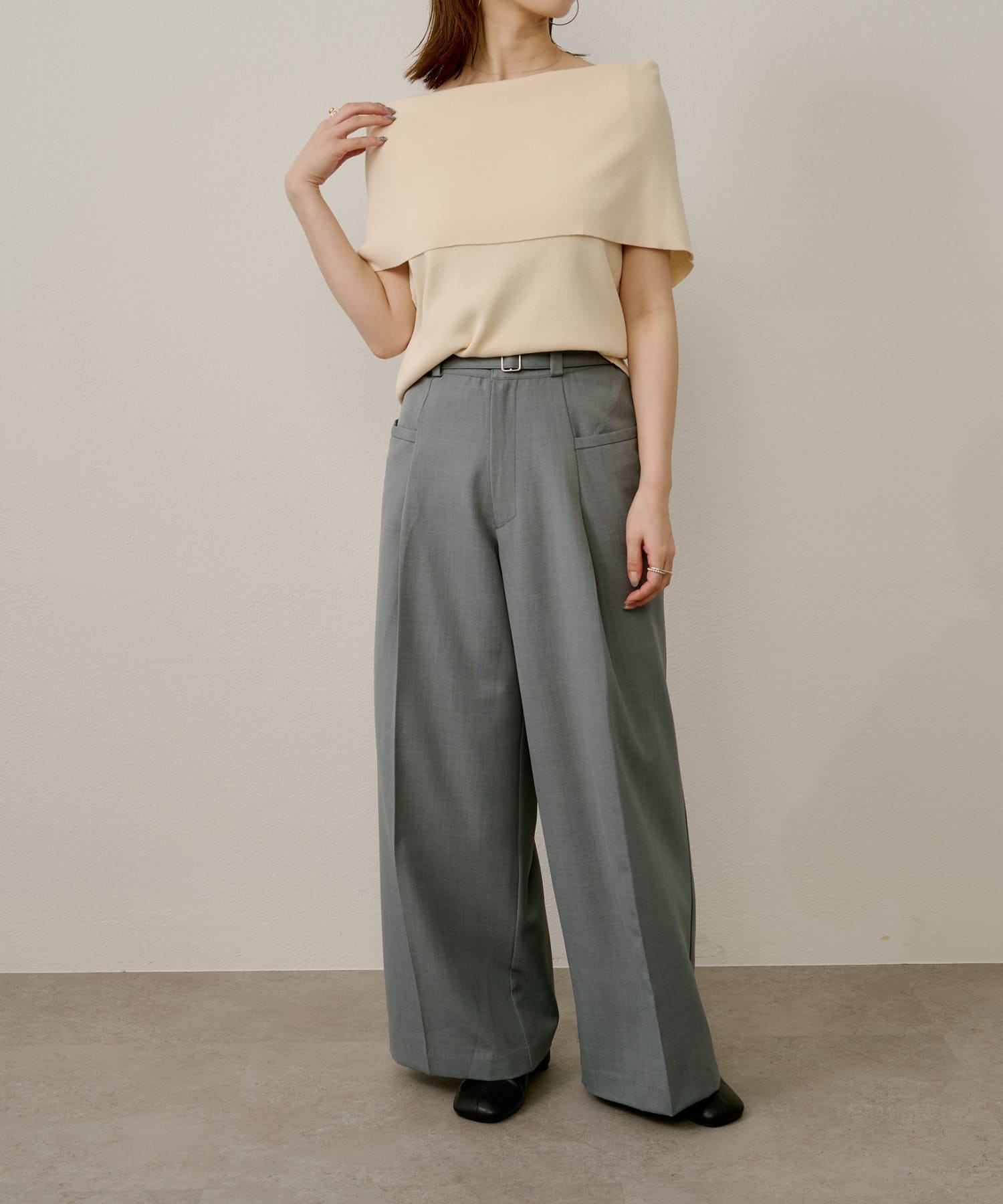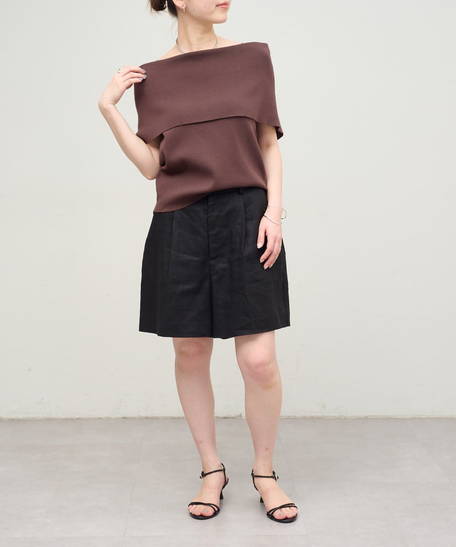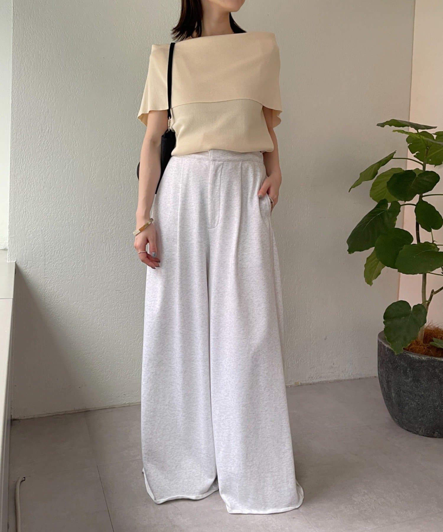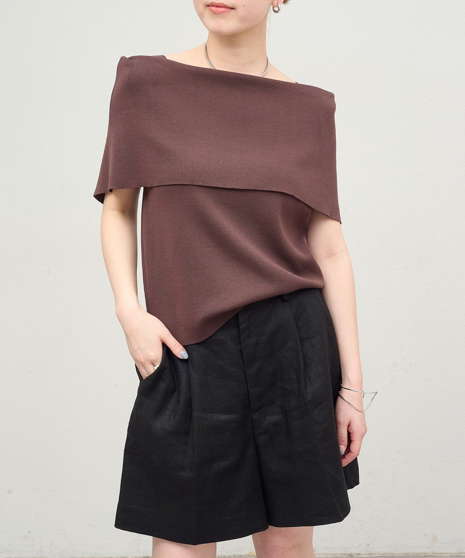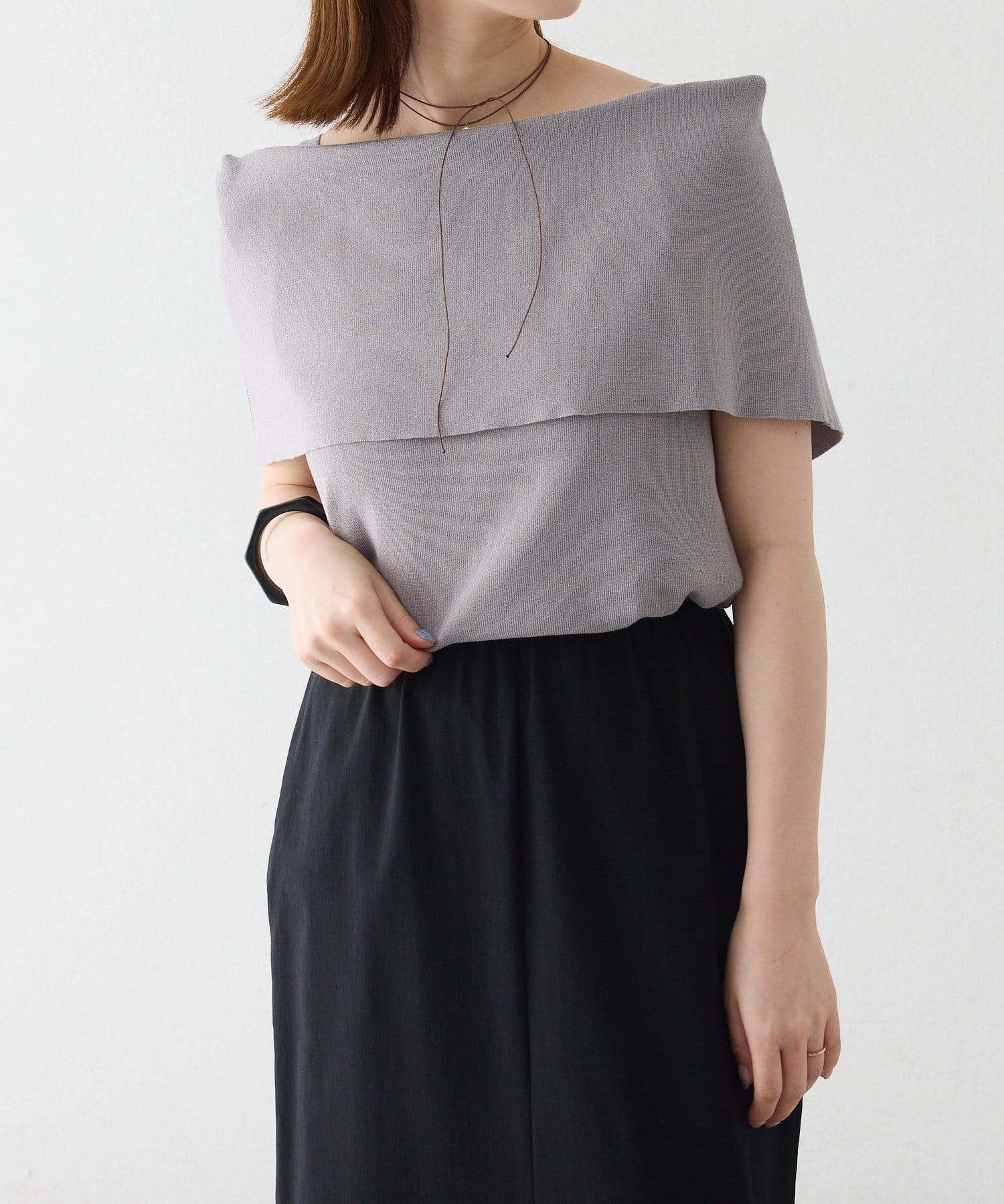 上品な肌見せが叶うノースリオフショルニット