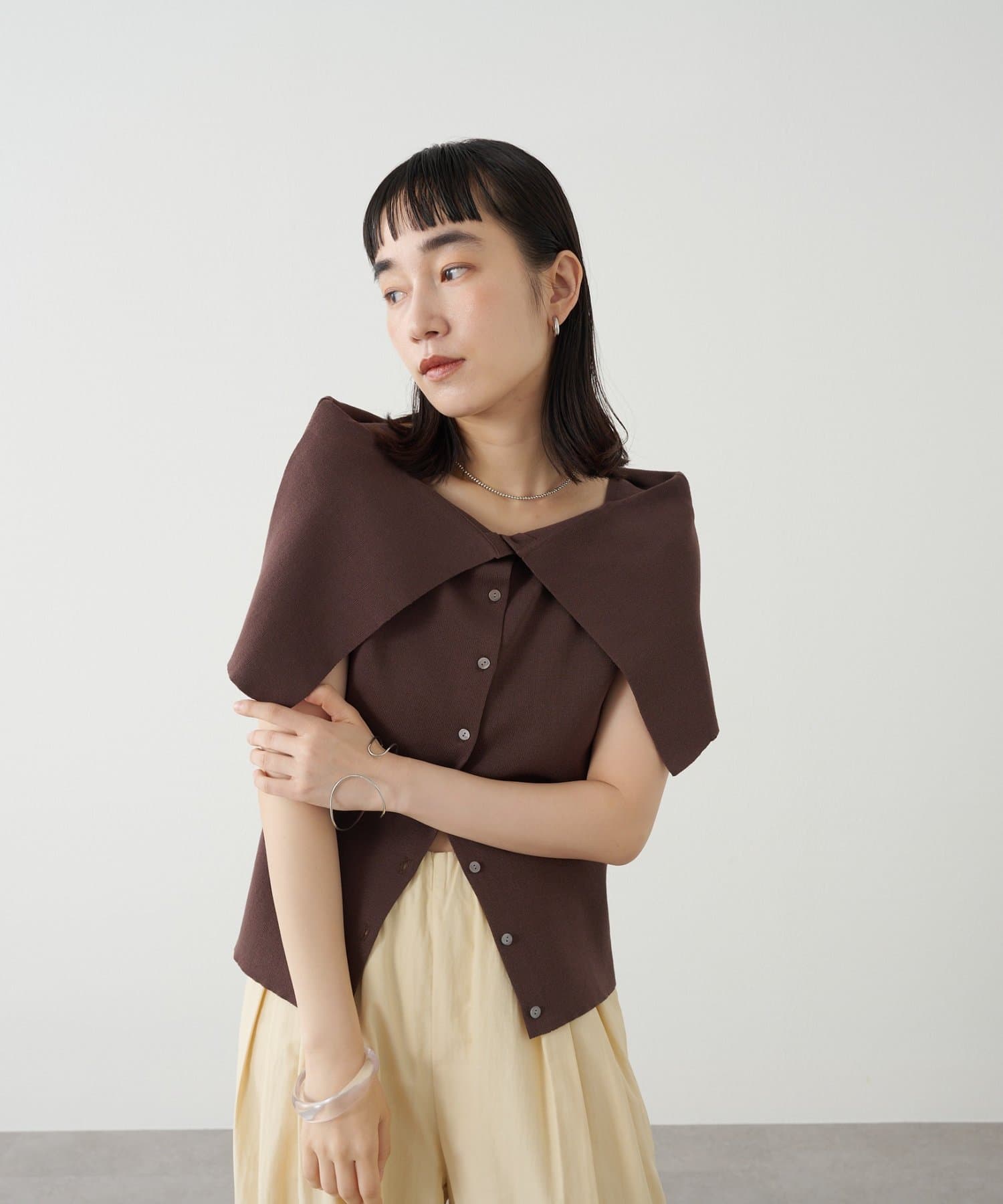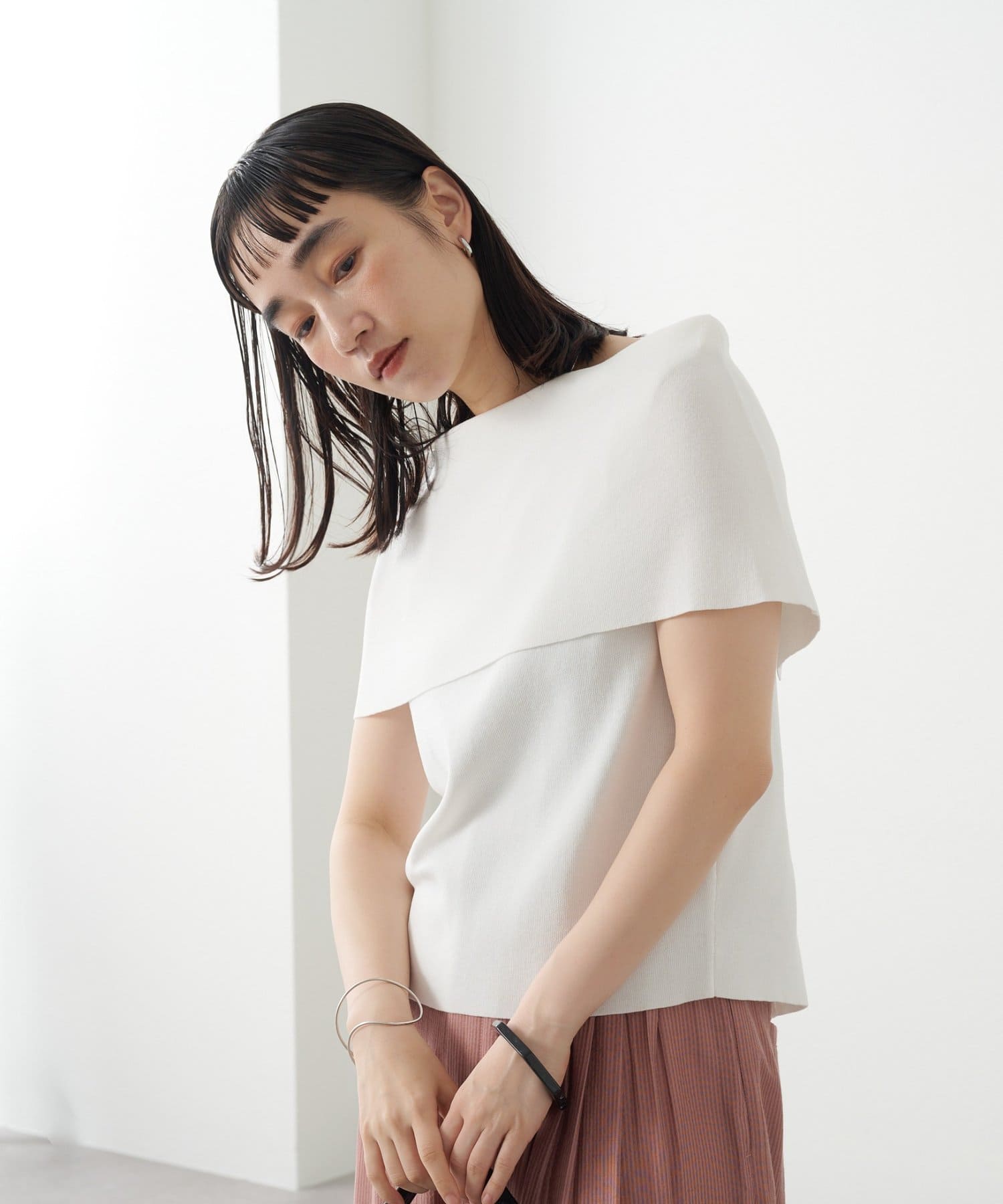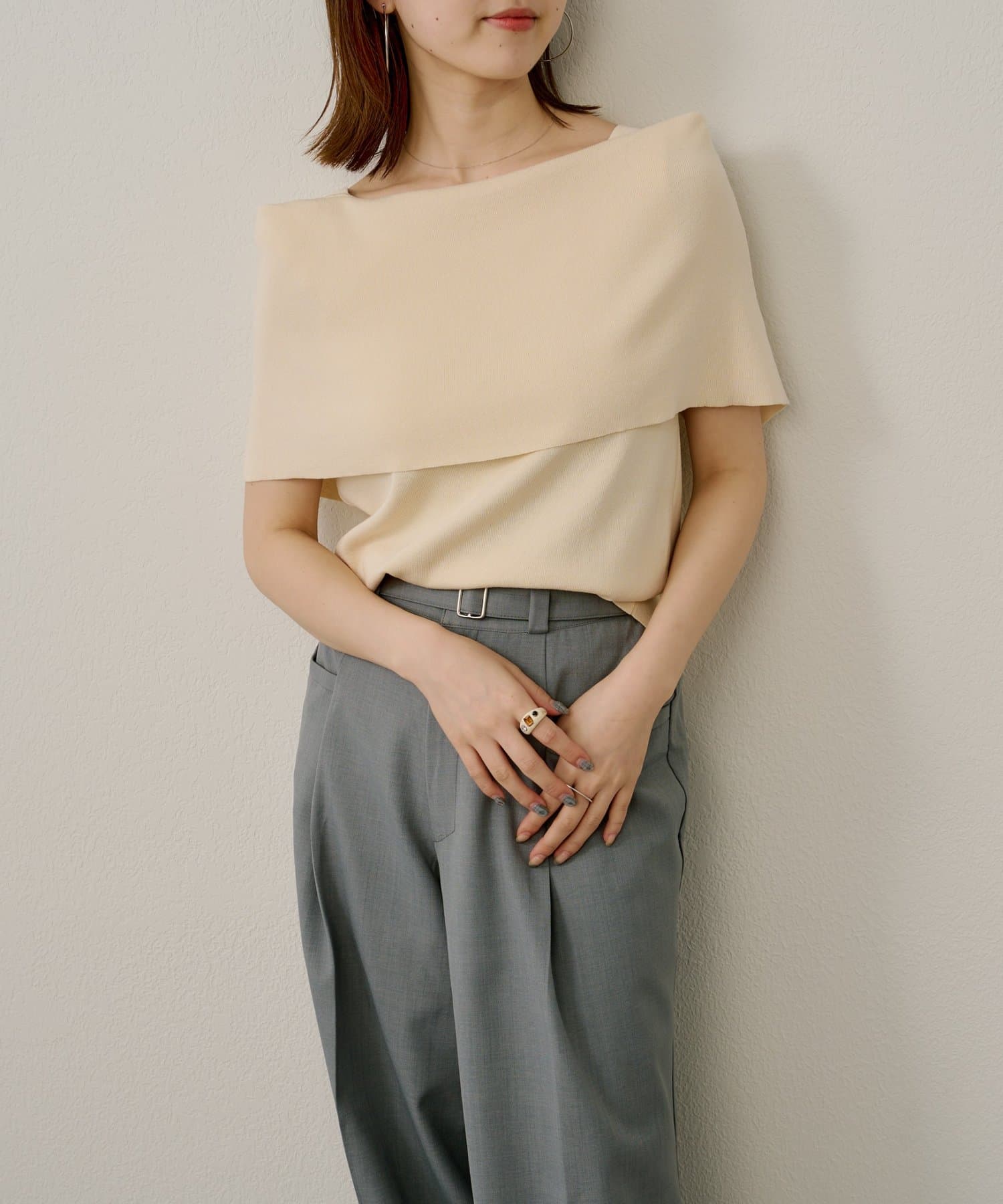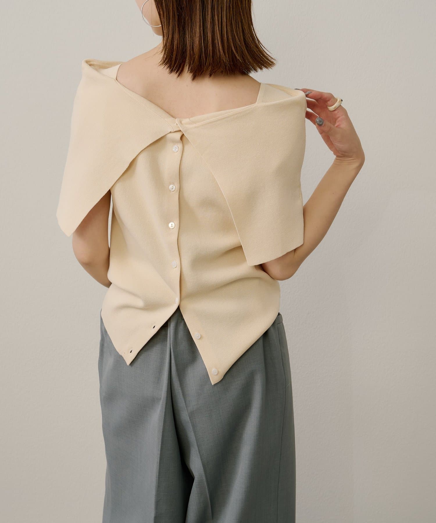 ・大きめな襟デザインが二の腕を隠してくれるので、華奢見え効果抜群。