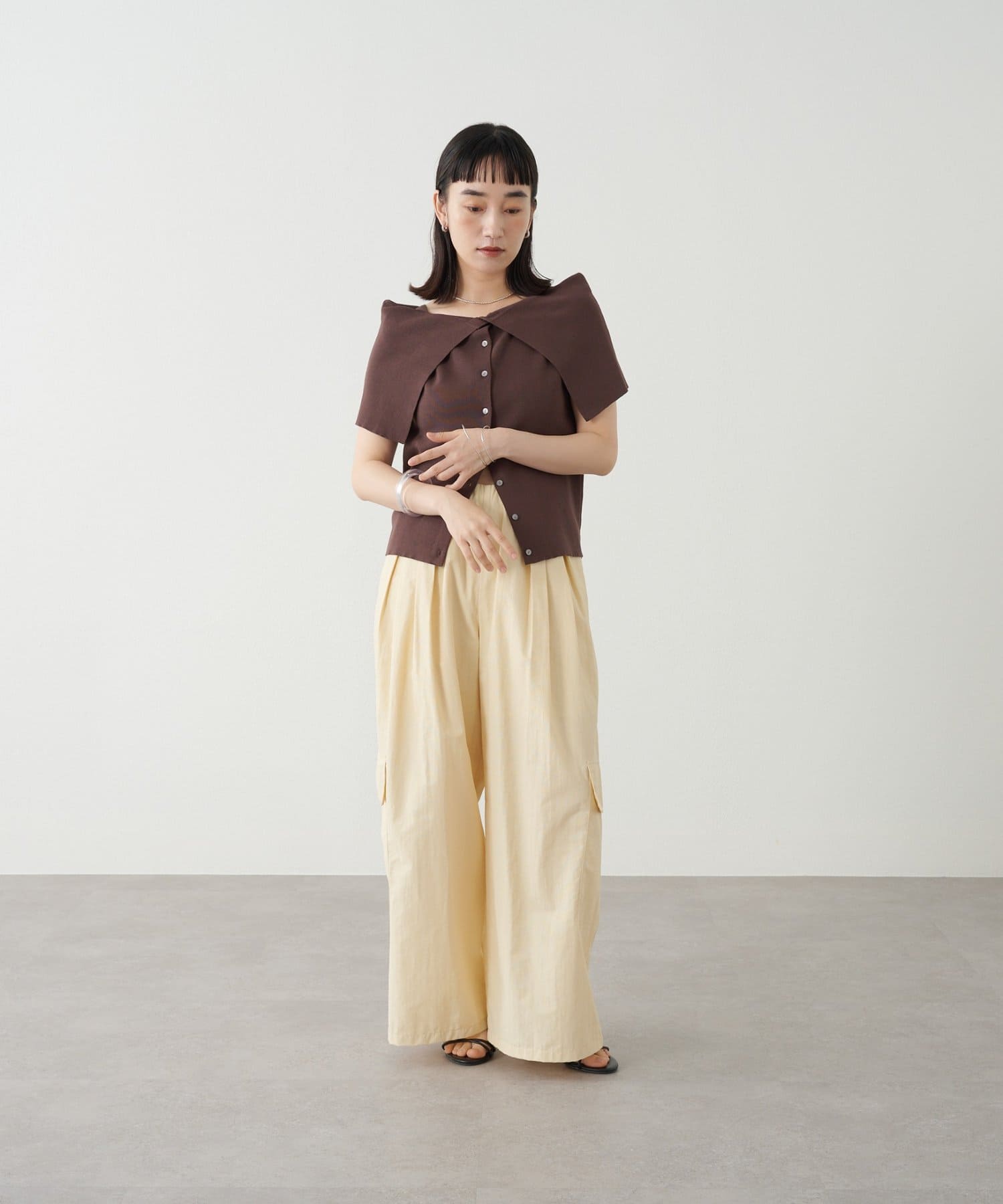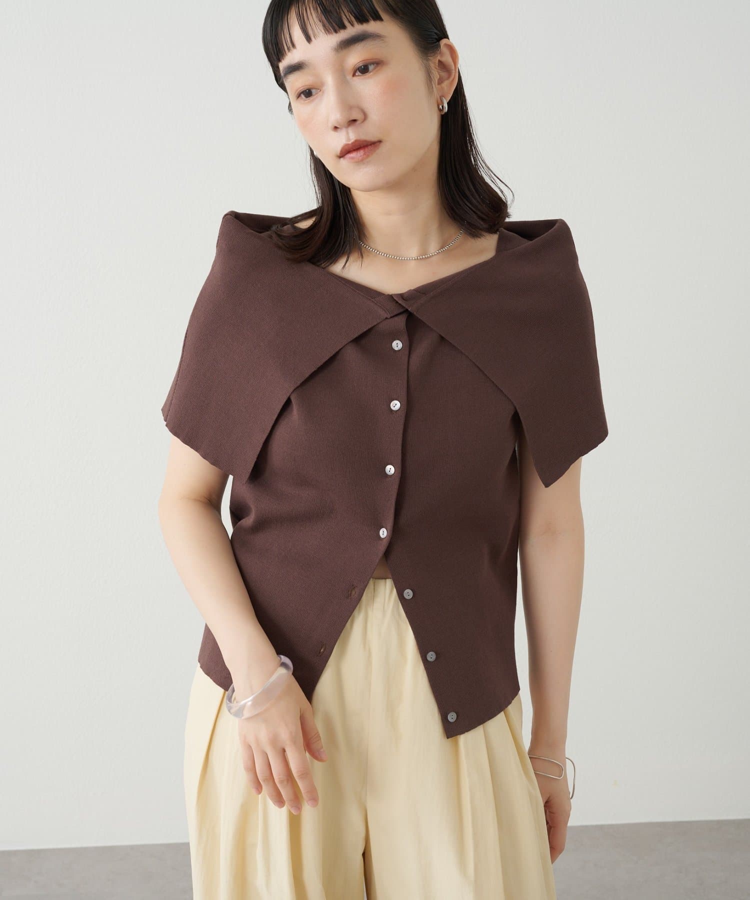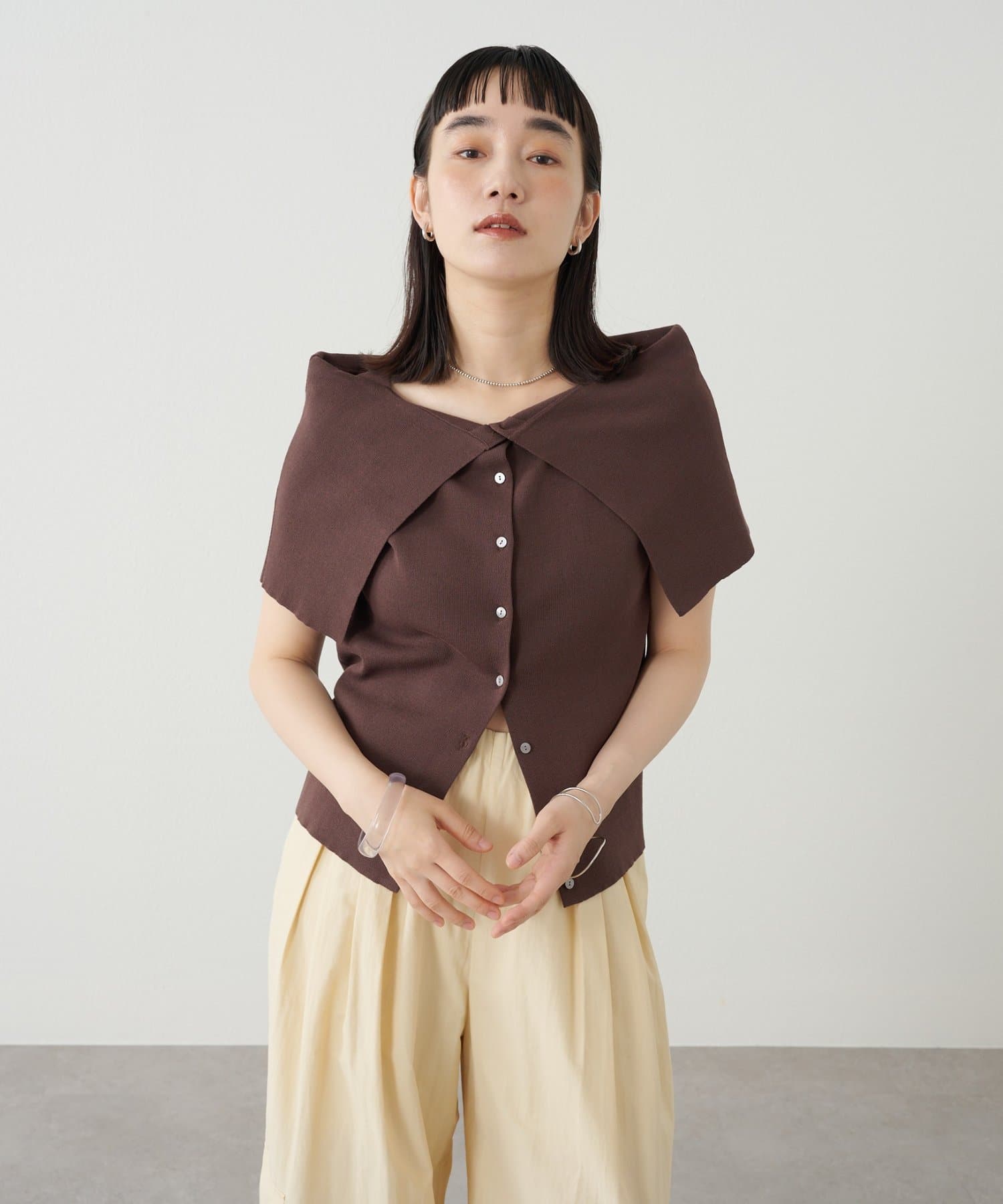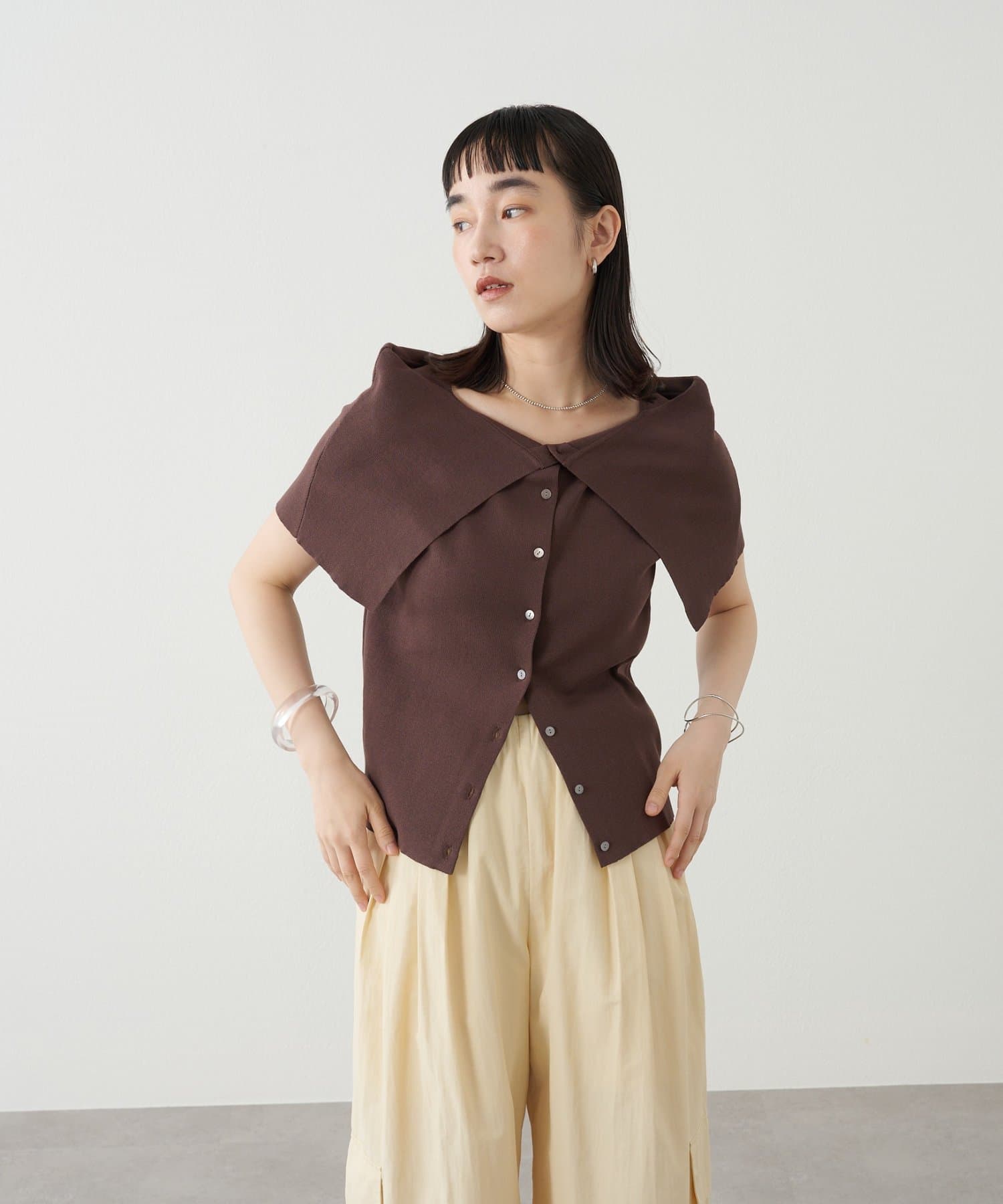・大きめな襟デザインが二の腕を隠してくれるので、華奢見え効果抜群。