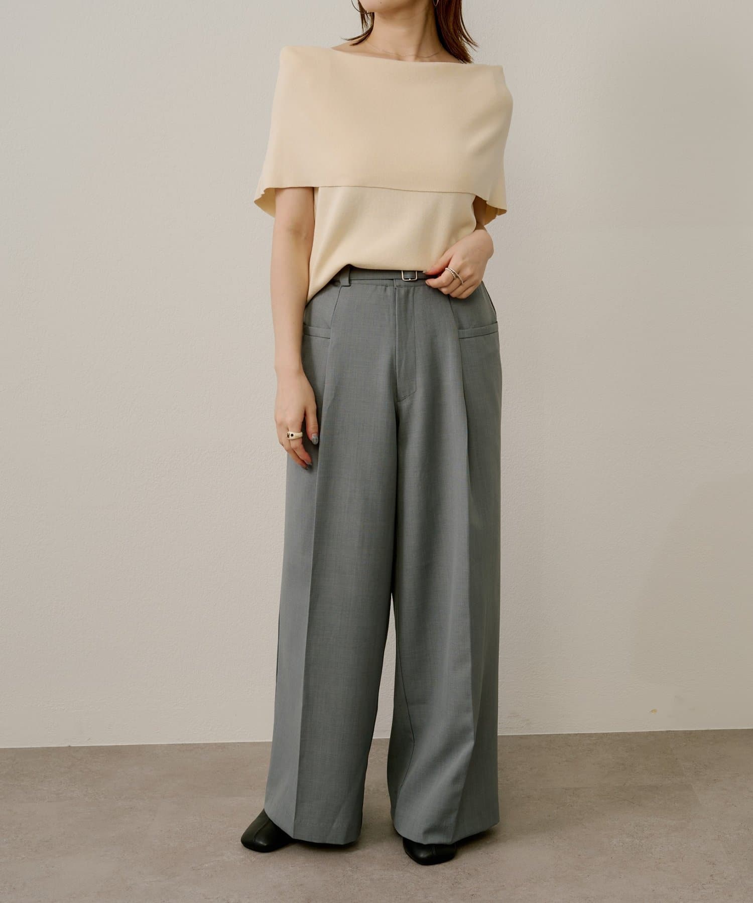 ・着まわしやすいオフホワイト・グレー・ブラック・ブラウンの4色展開。