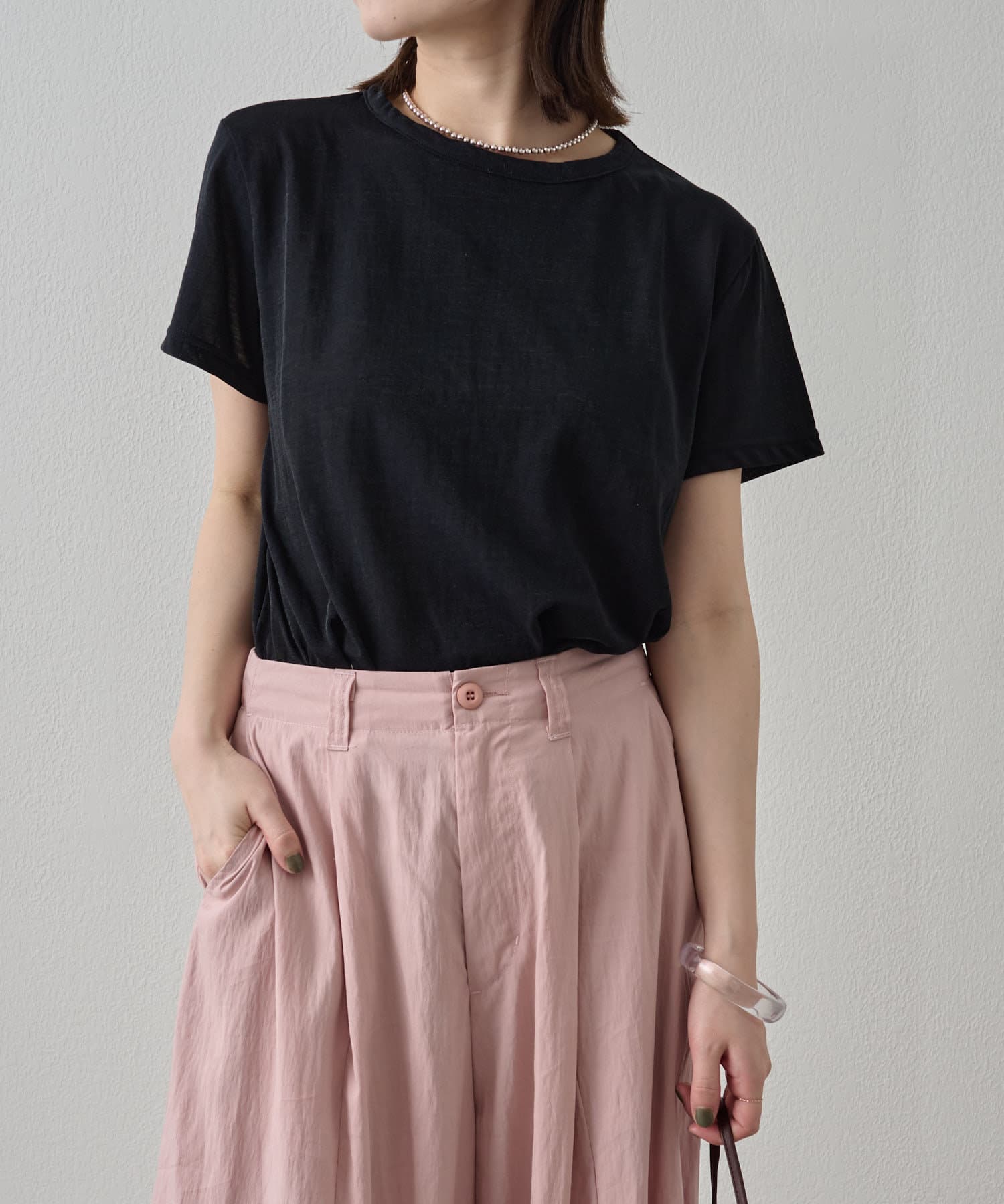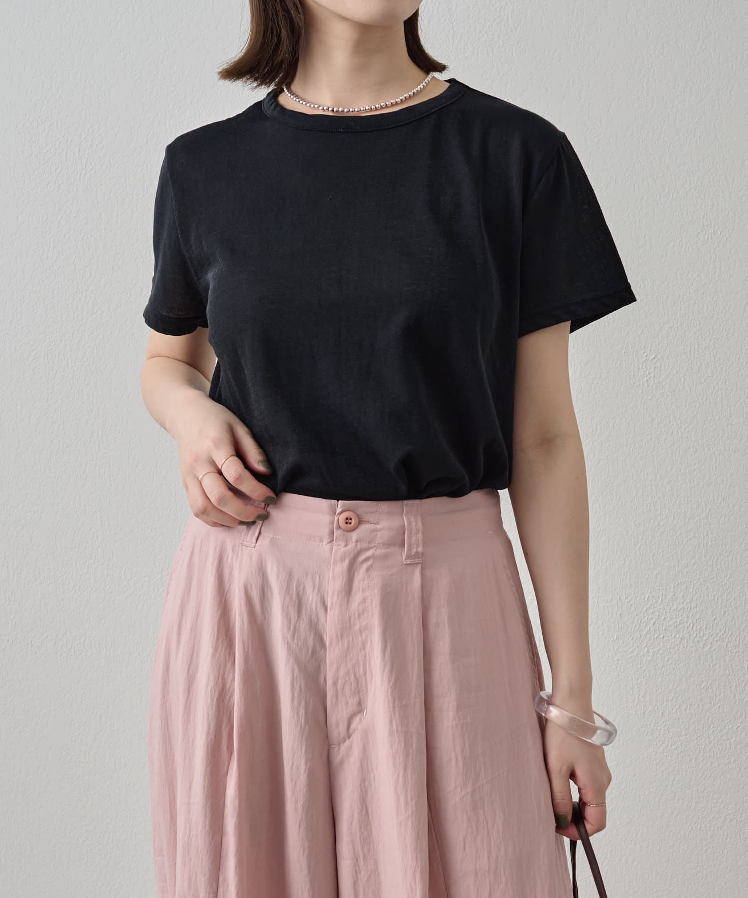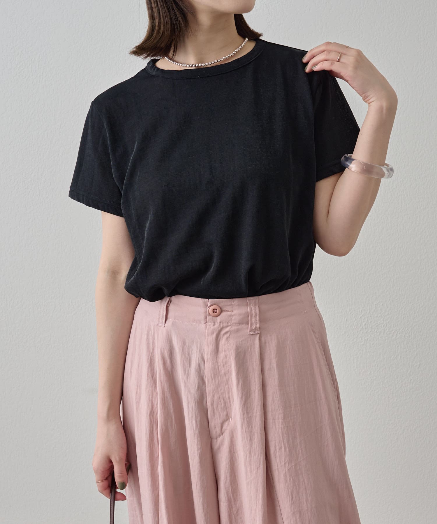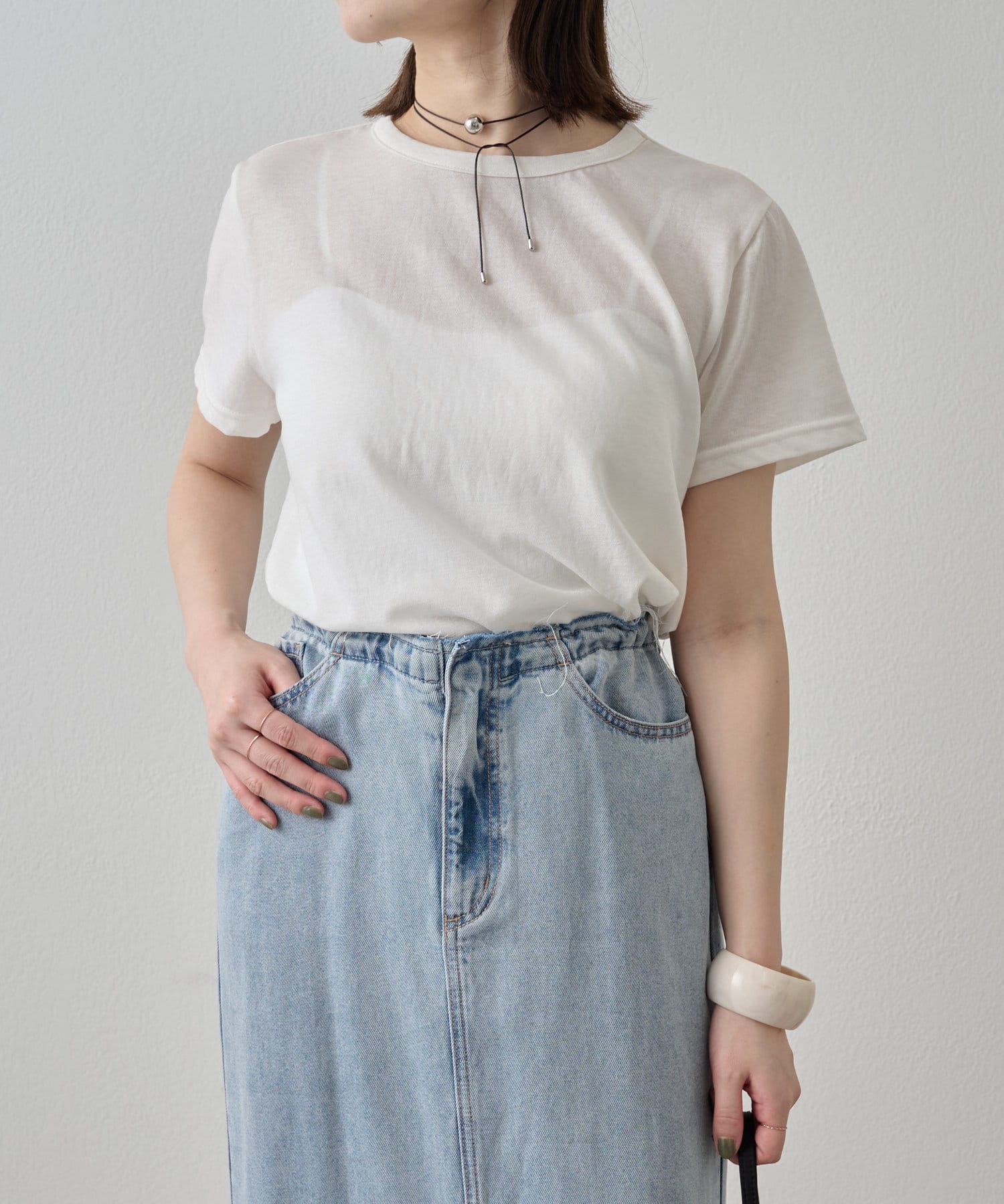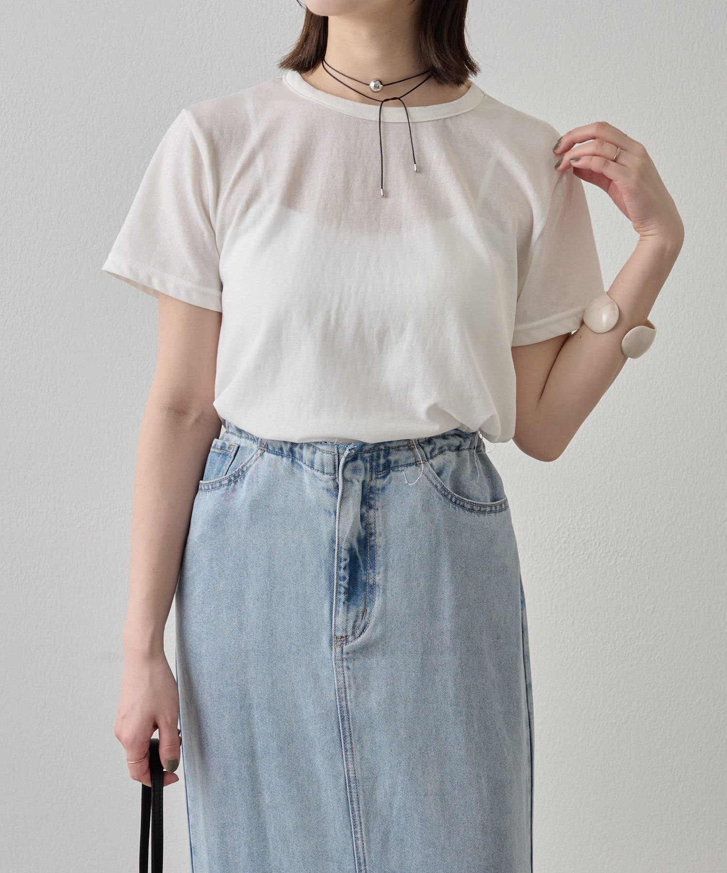 ・程よい透け感で、シンプルでありながらもお洒落見えが叶うTシャツ。