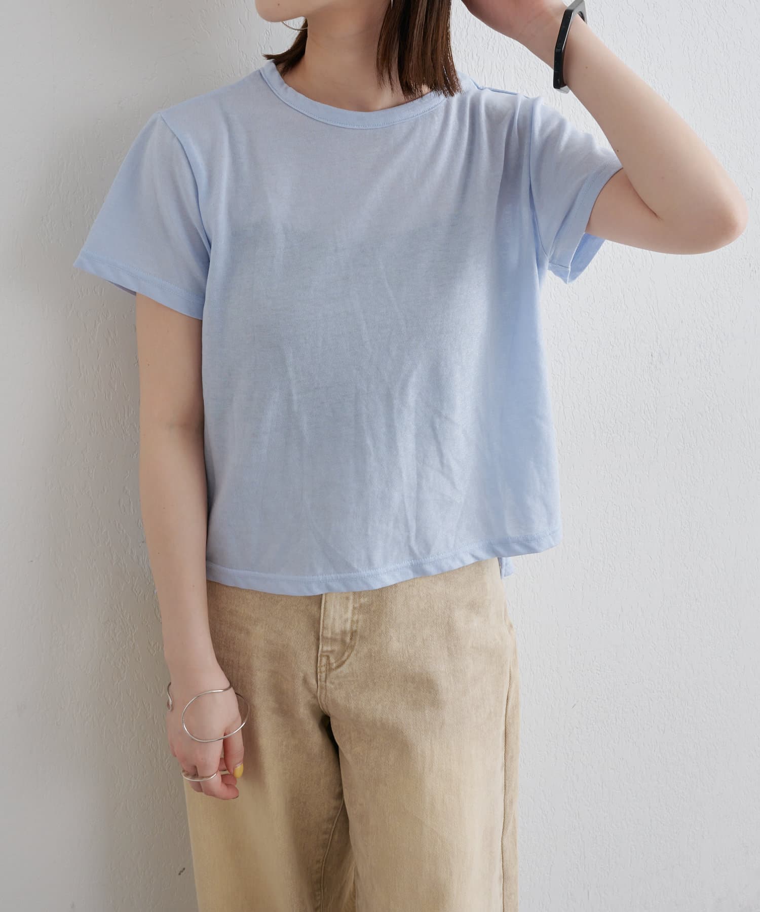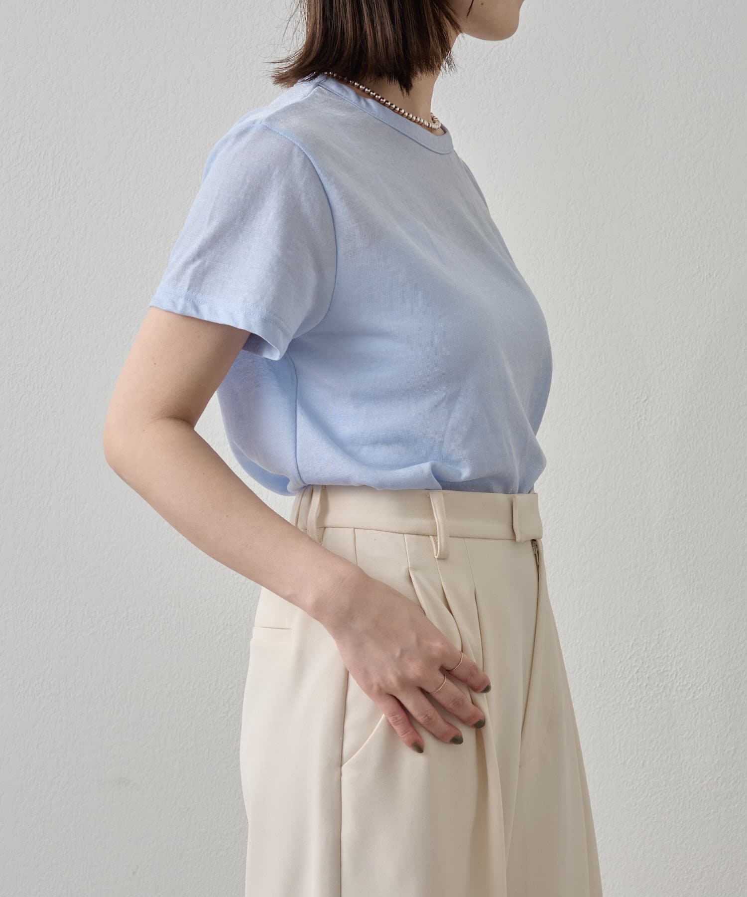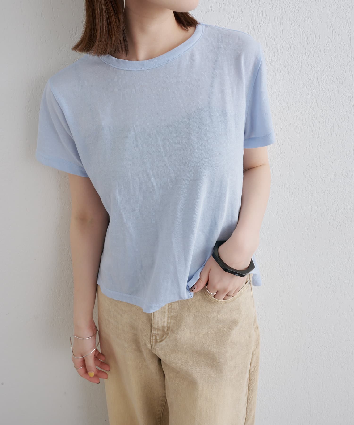 ・程よい透け感で、シンプルでありながらもお洒落見えが叶うTシャツ。