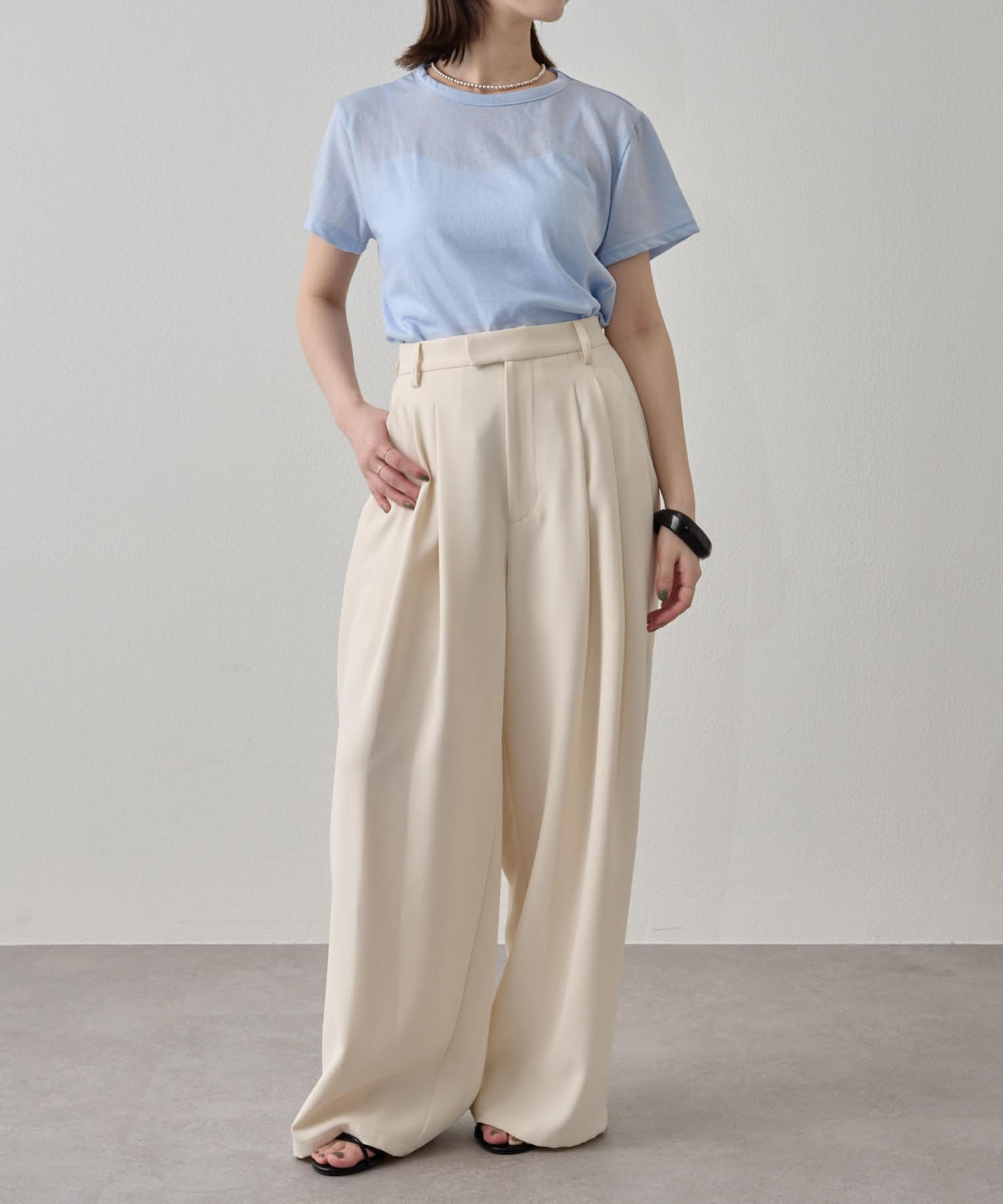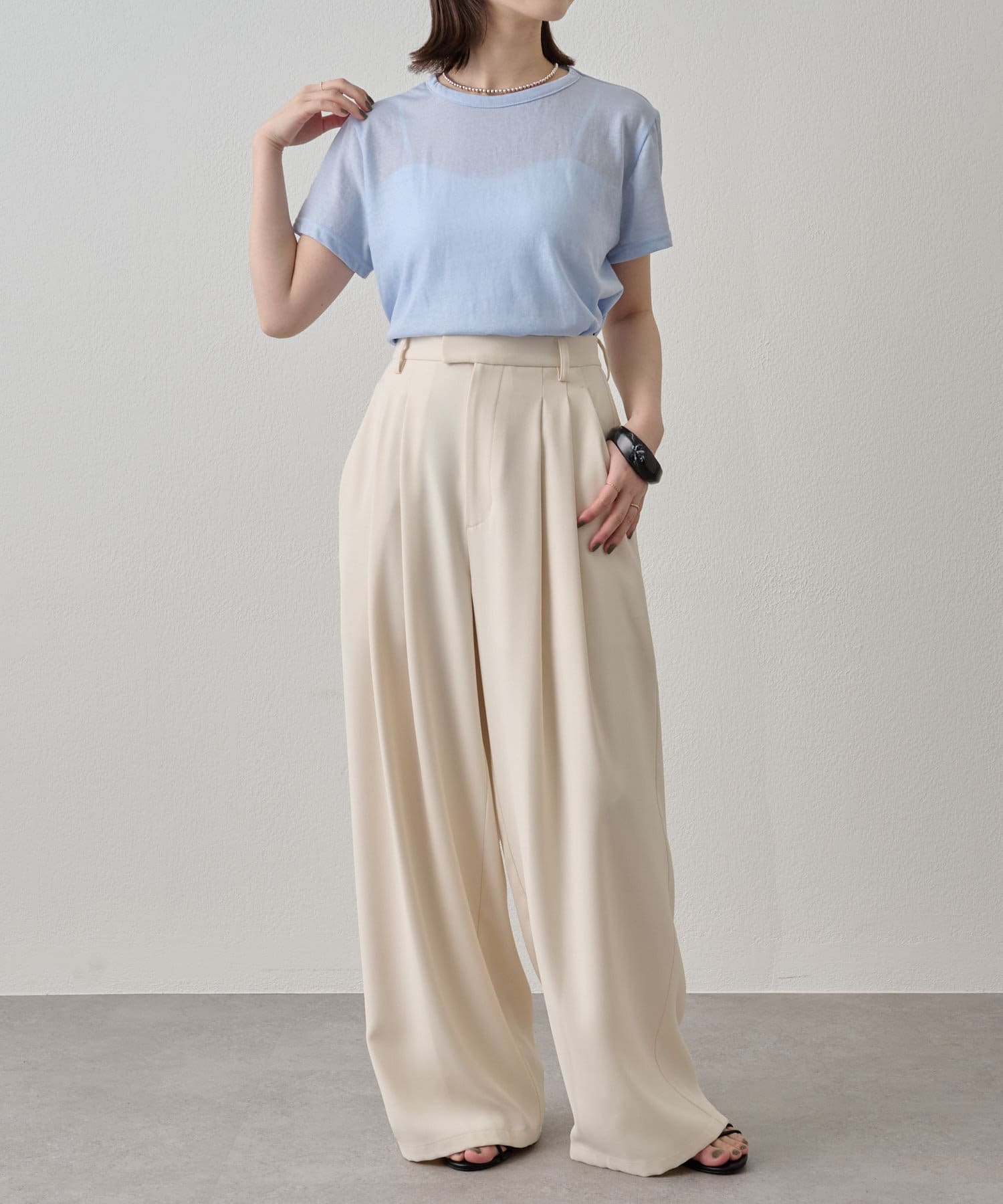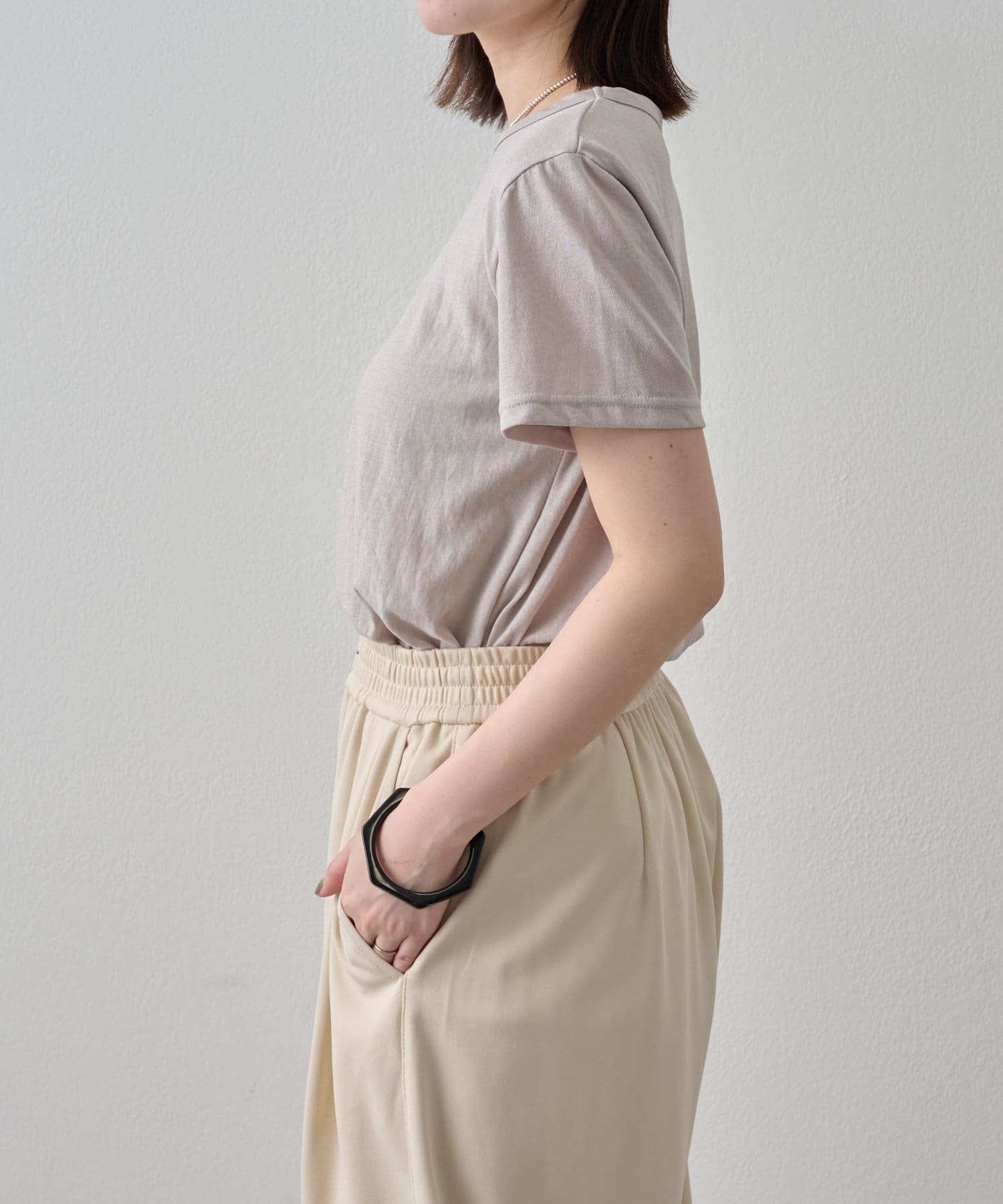 ・程よい透け感で、シンプルでありながらもお洒落見えが叶うTシャツ。