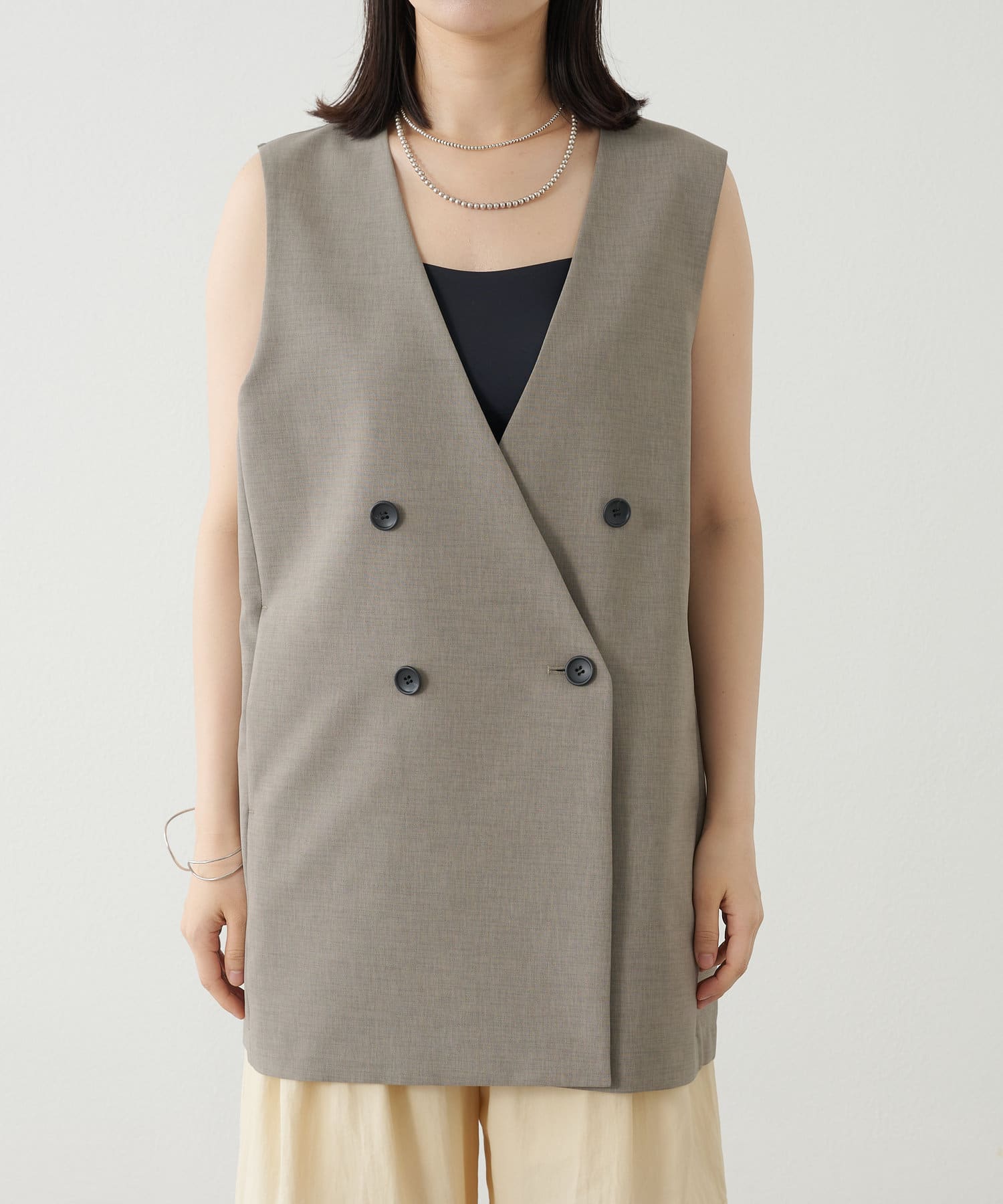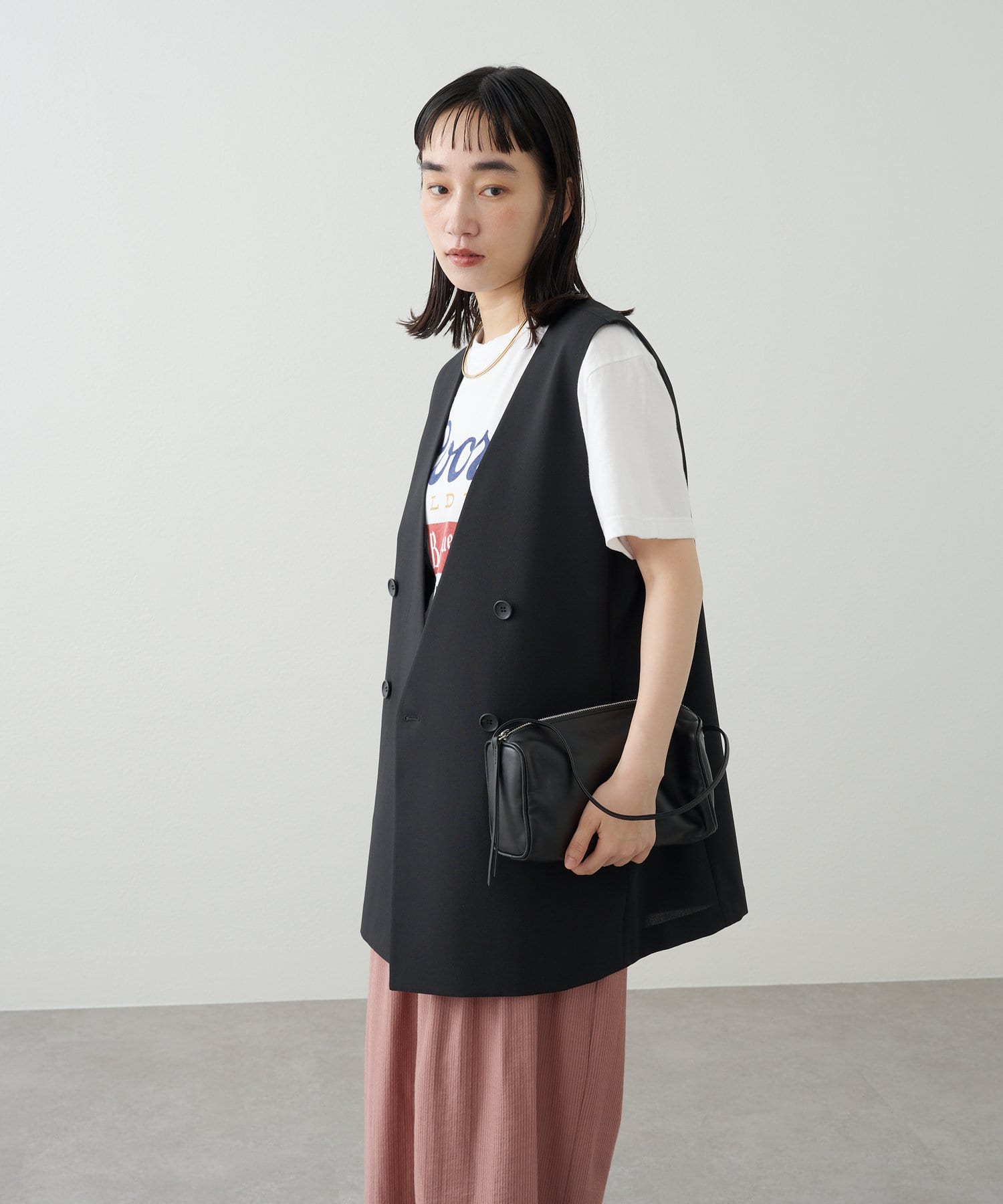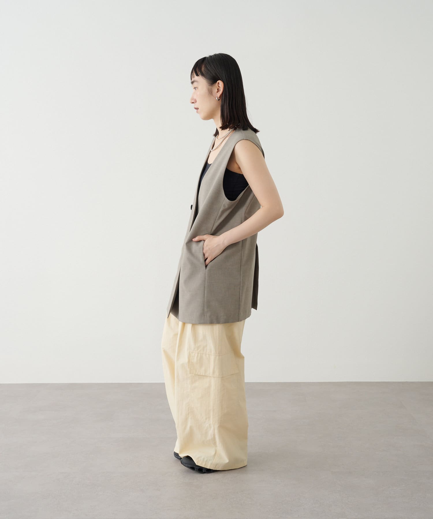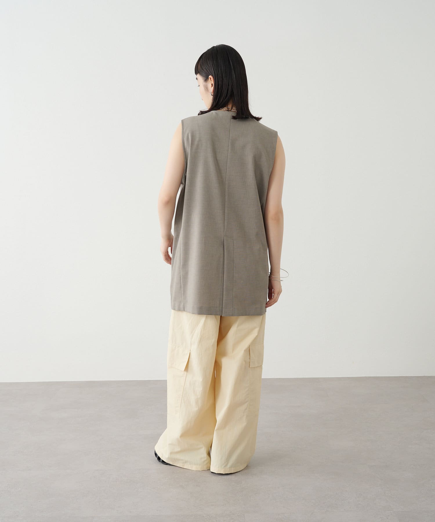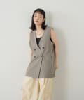 ・ノーカラーで首回りすっきりなデザインのジレ。
