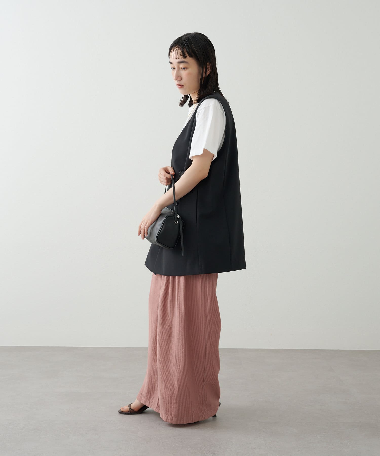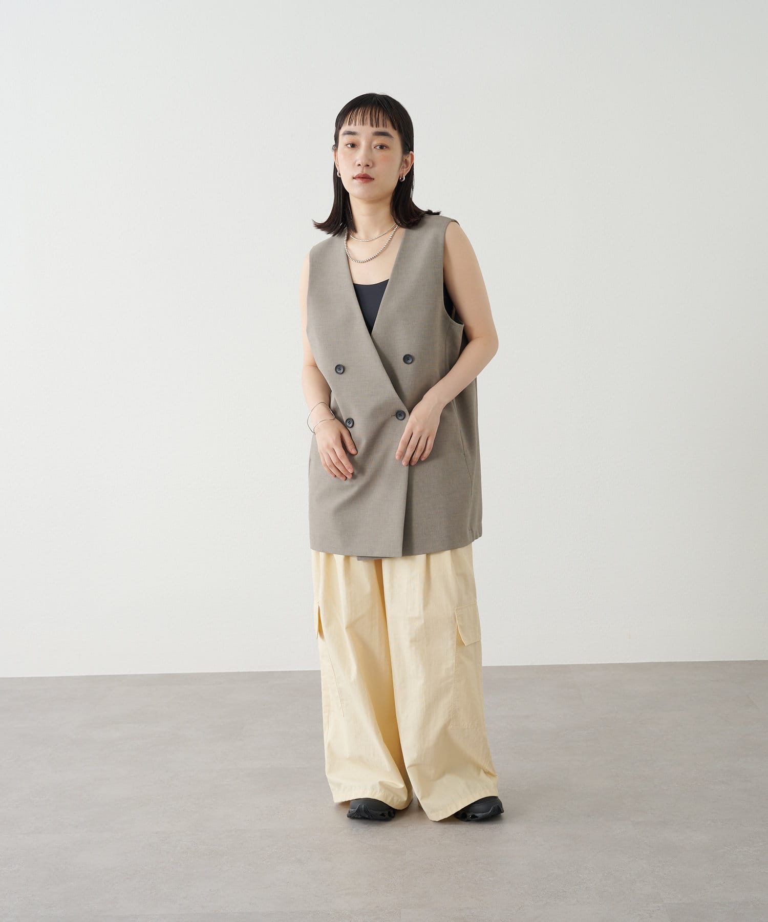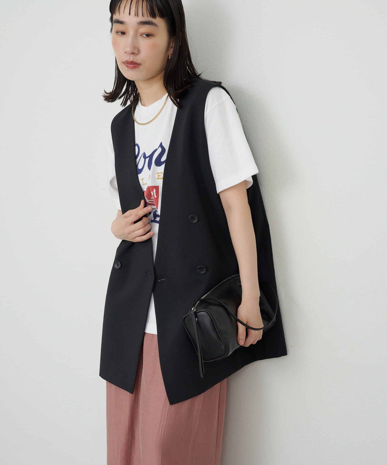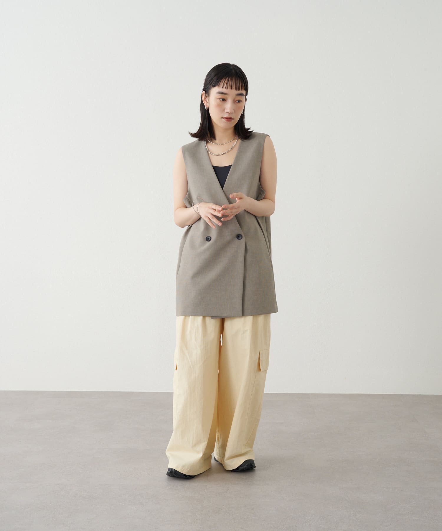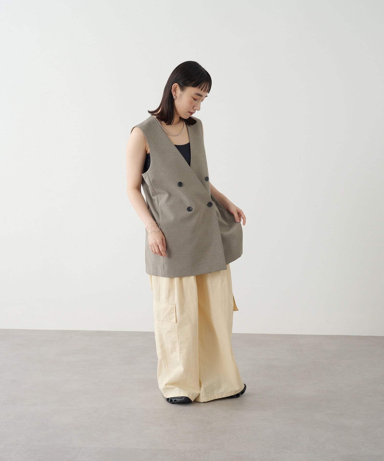 ・ノーカラーで首回りすっきりなデザインのジレ。