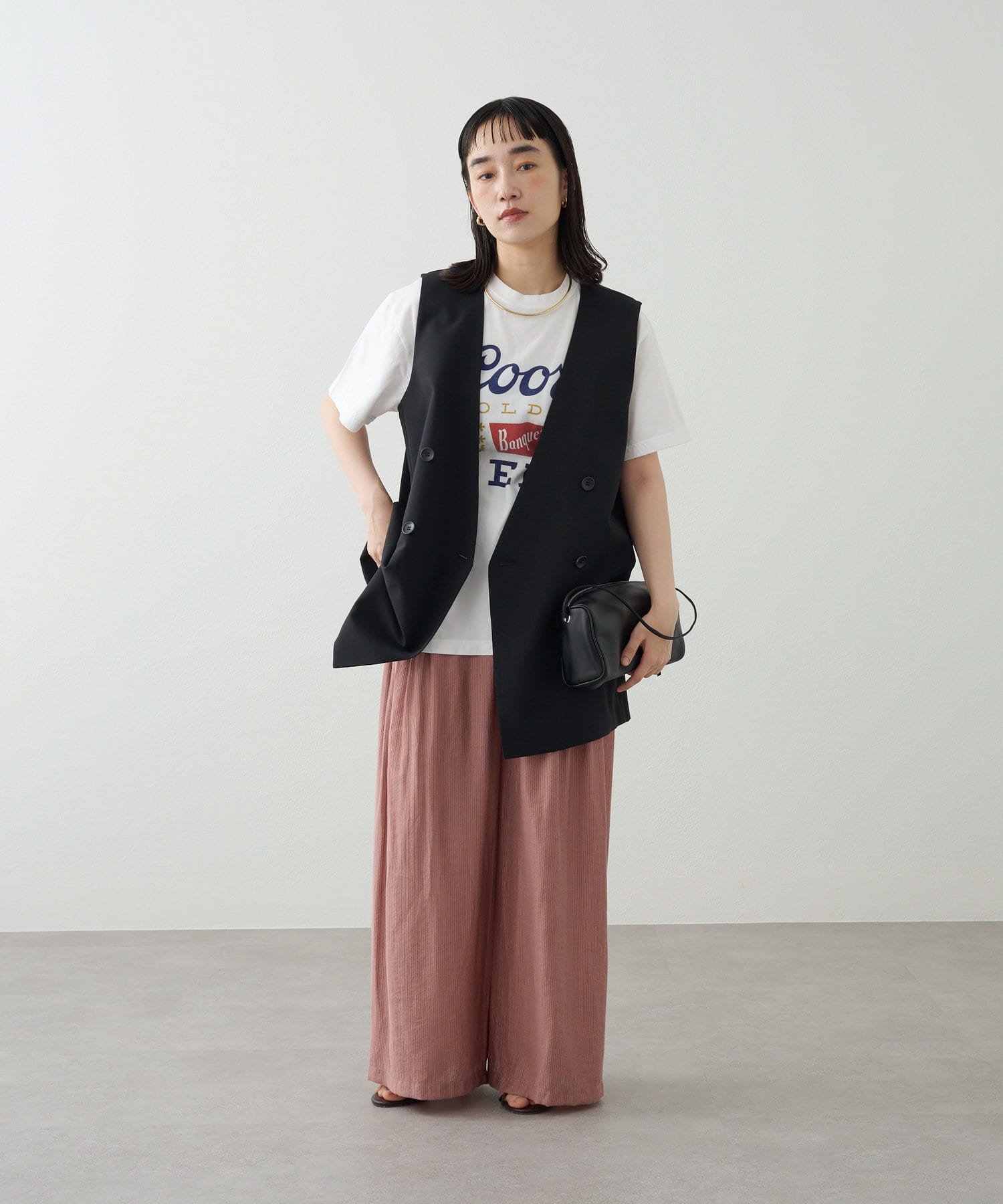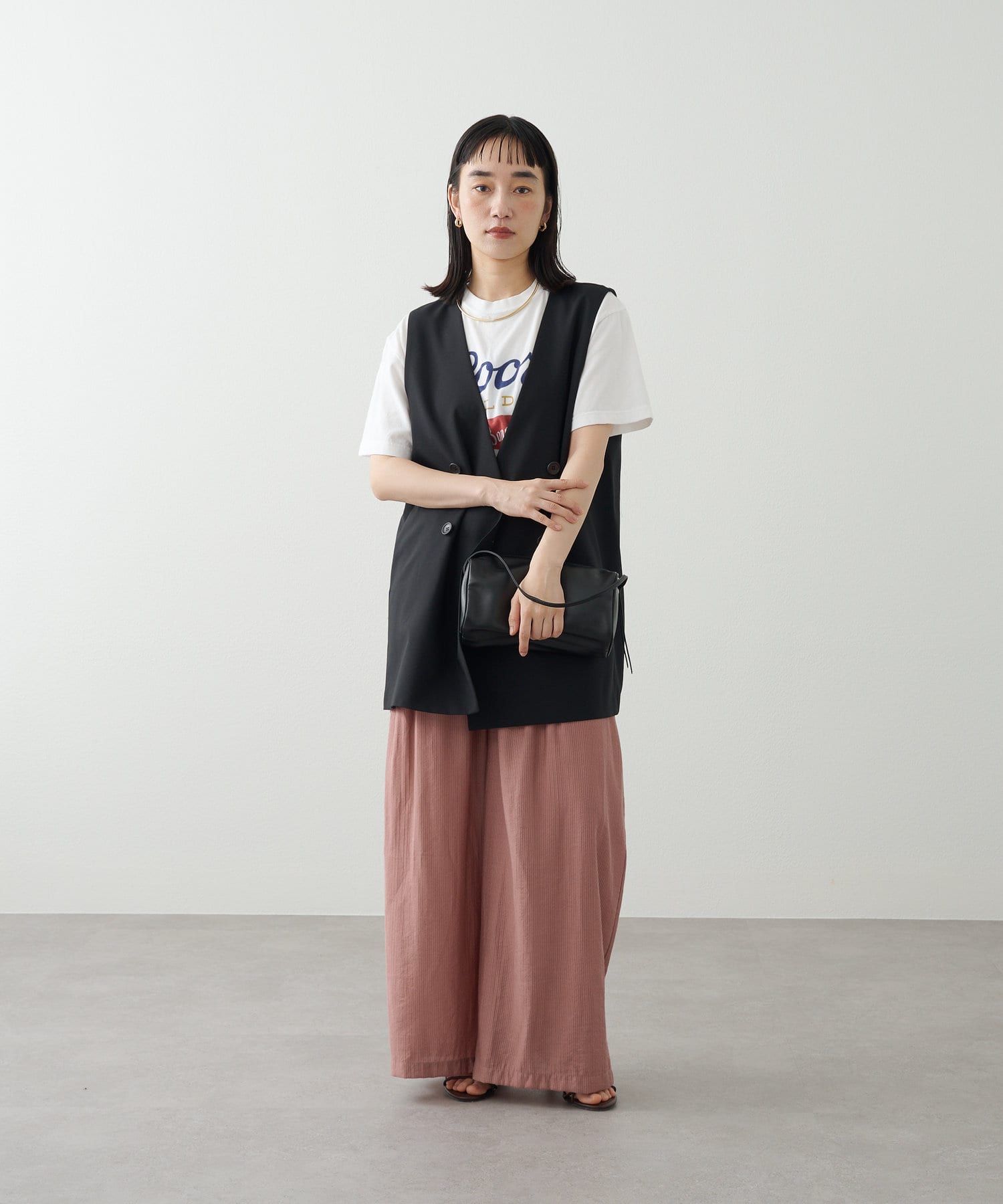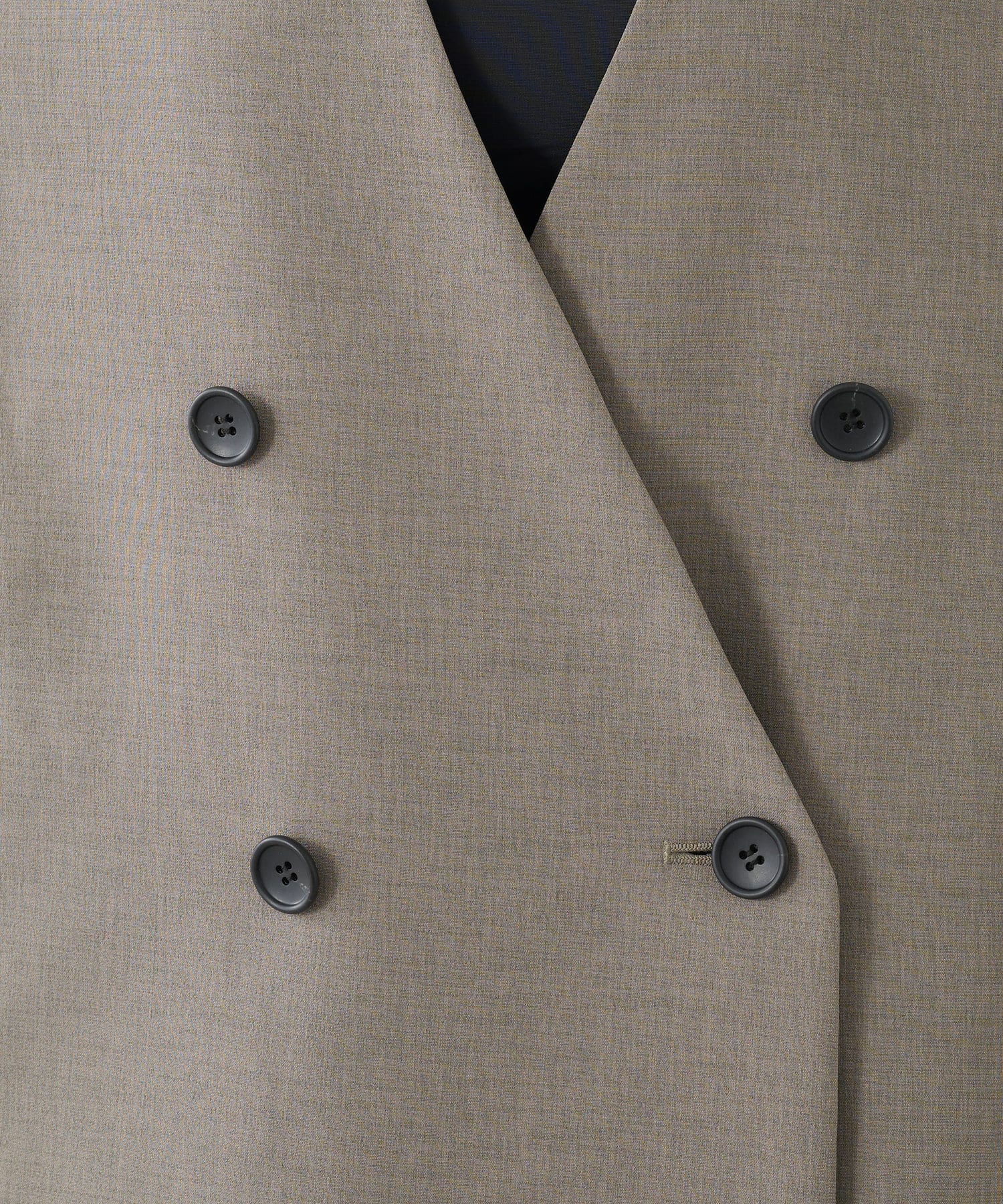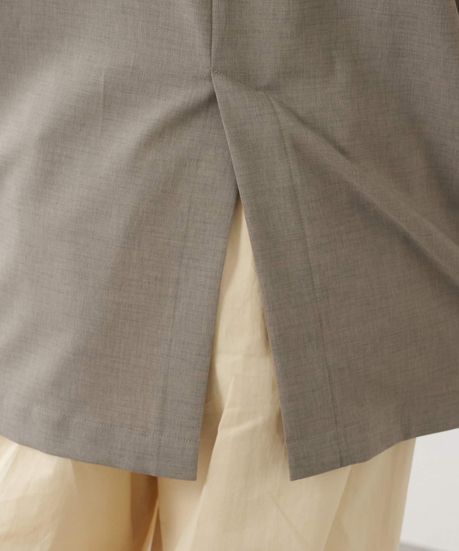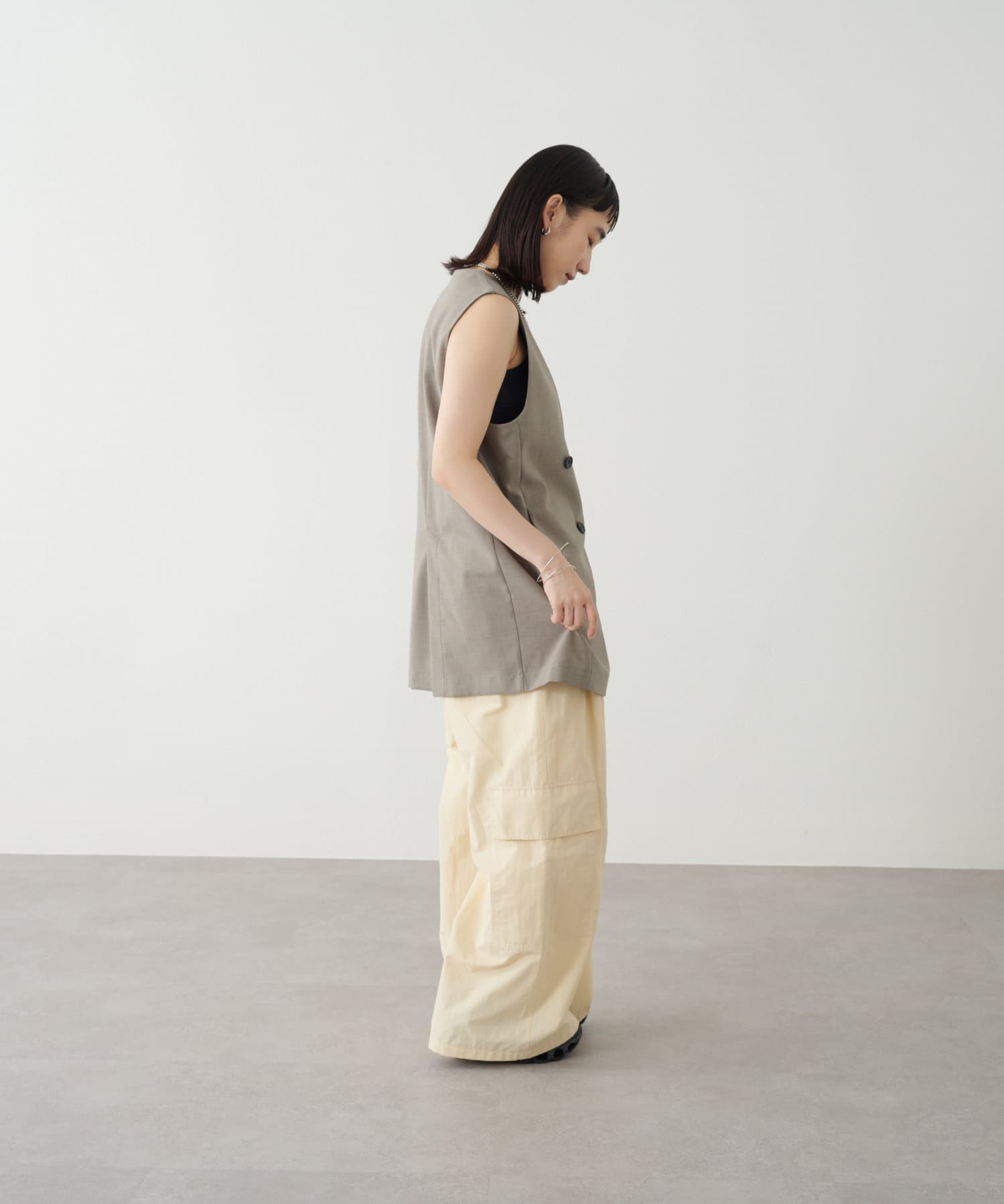 ・ノーカラーで首回りすっきりなデザインのジレ。