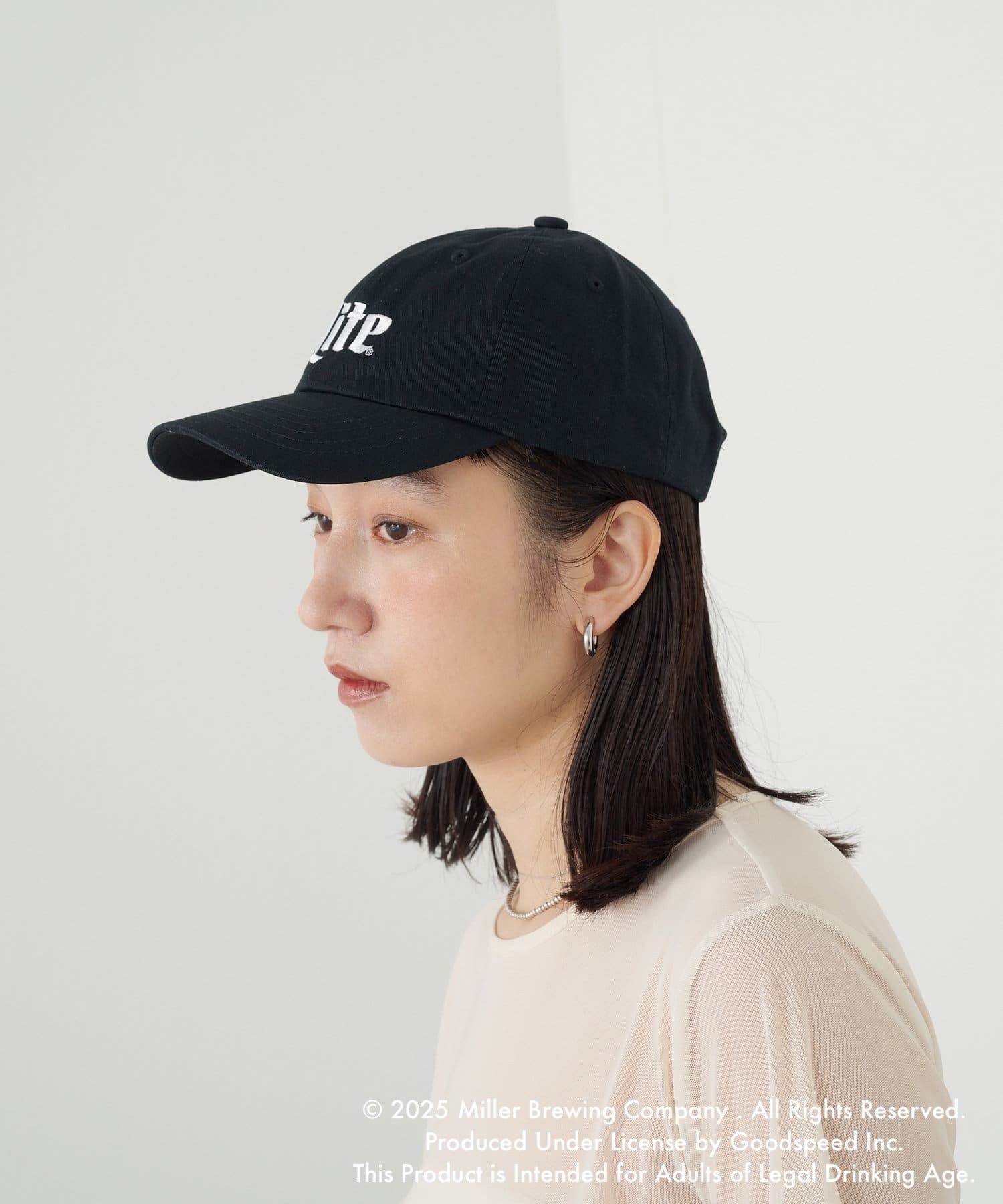 ・フロントのMiller LITEのロゴが目を惹くキャップ