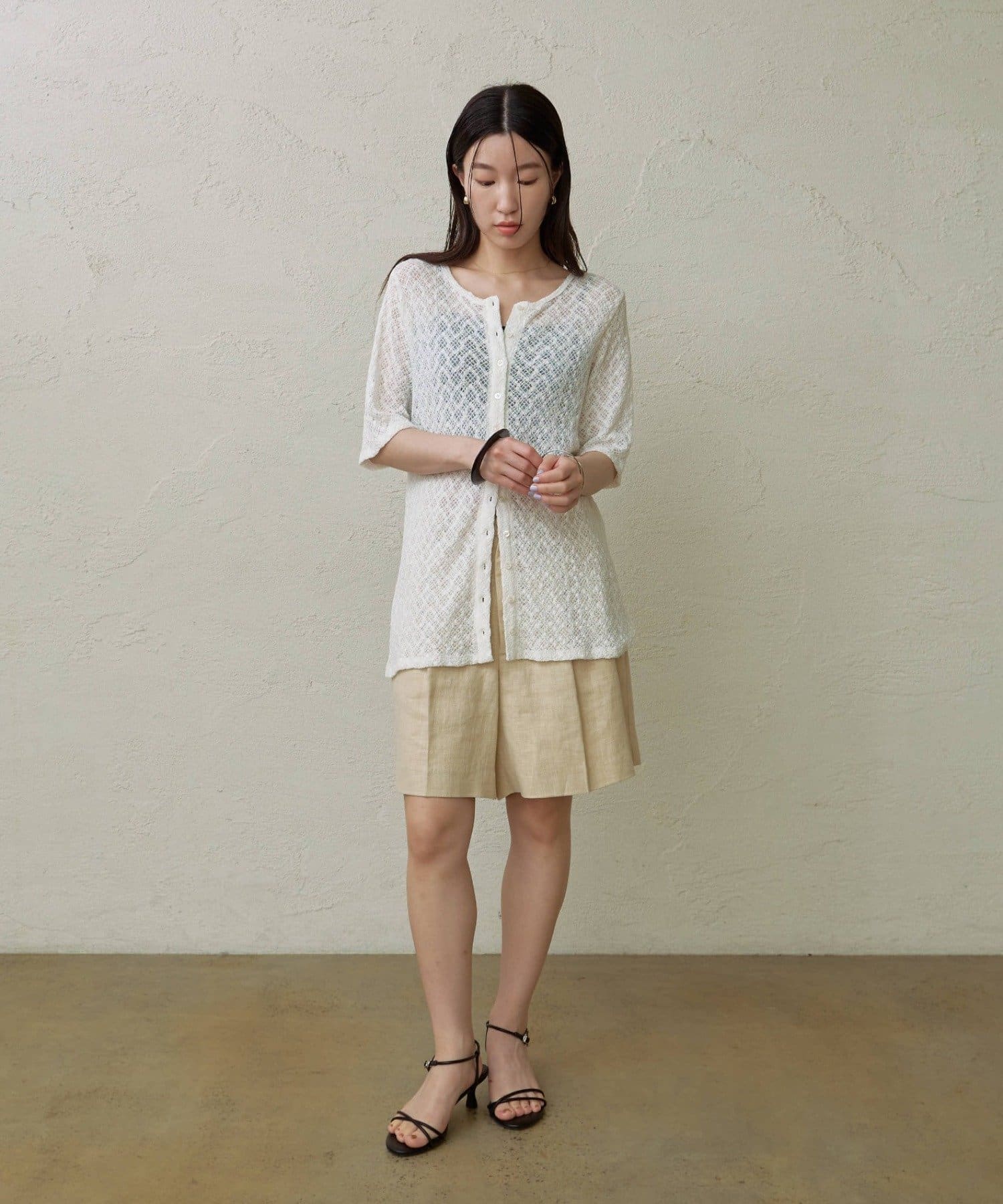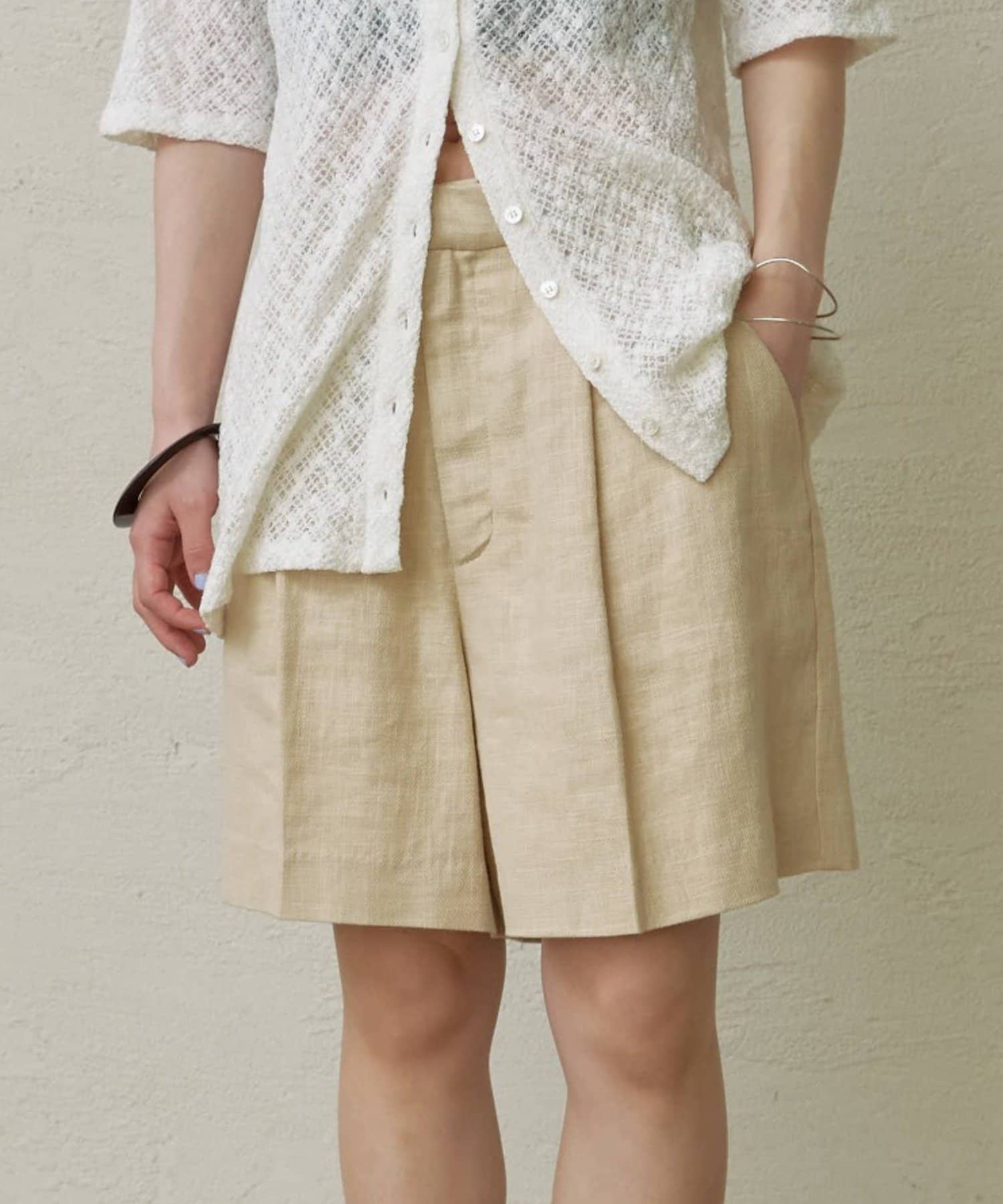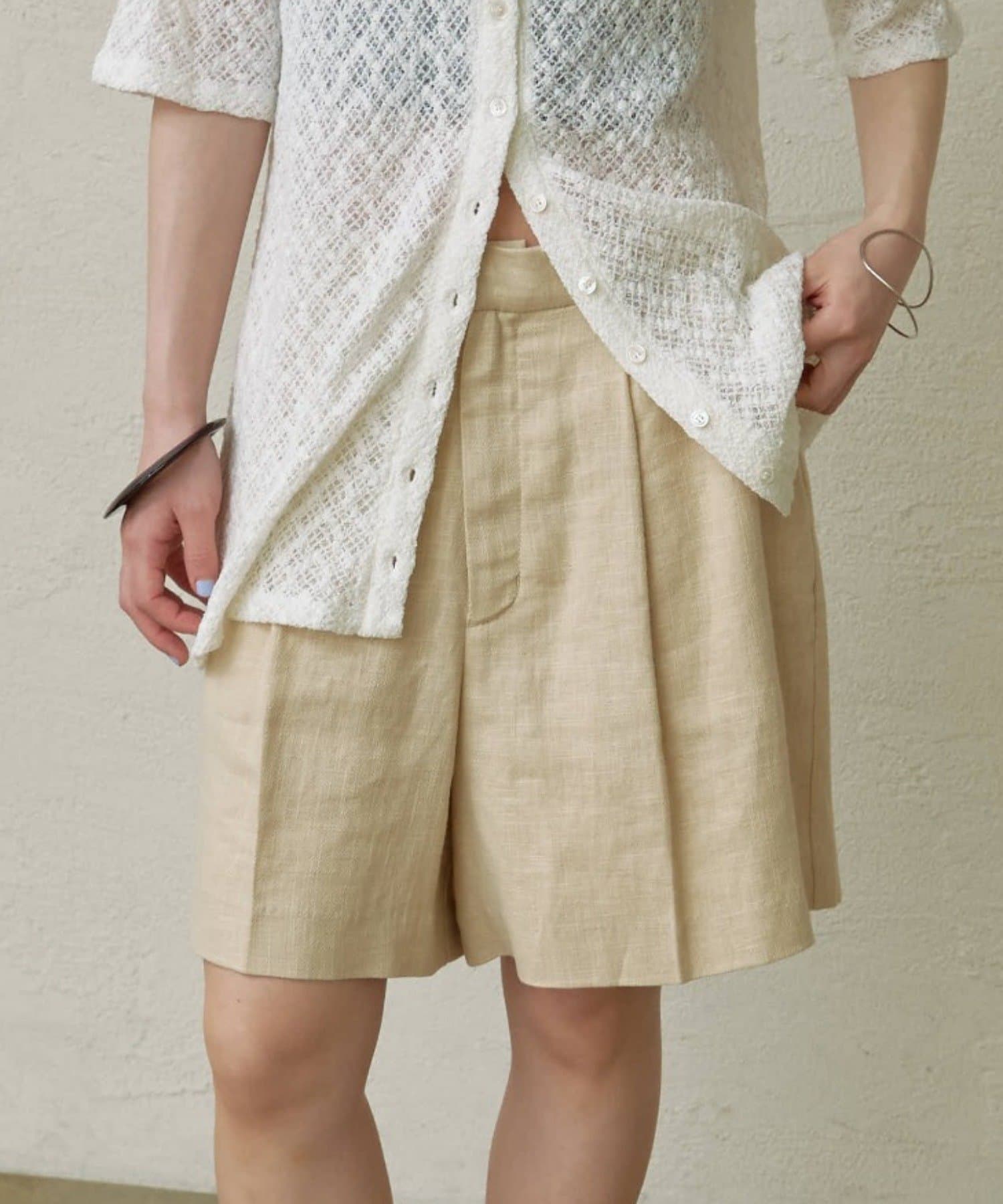 ・リネン素材が涼しげで夏らしいショートパンツ。