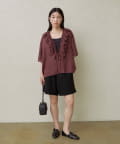 【チャコールグレー】花柄シャツ