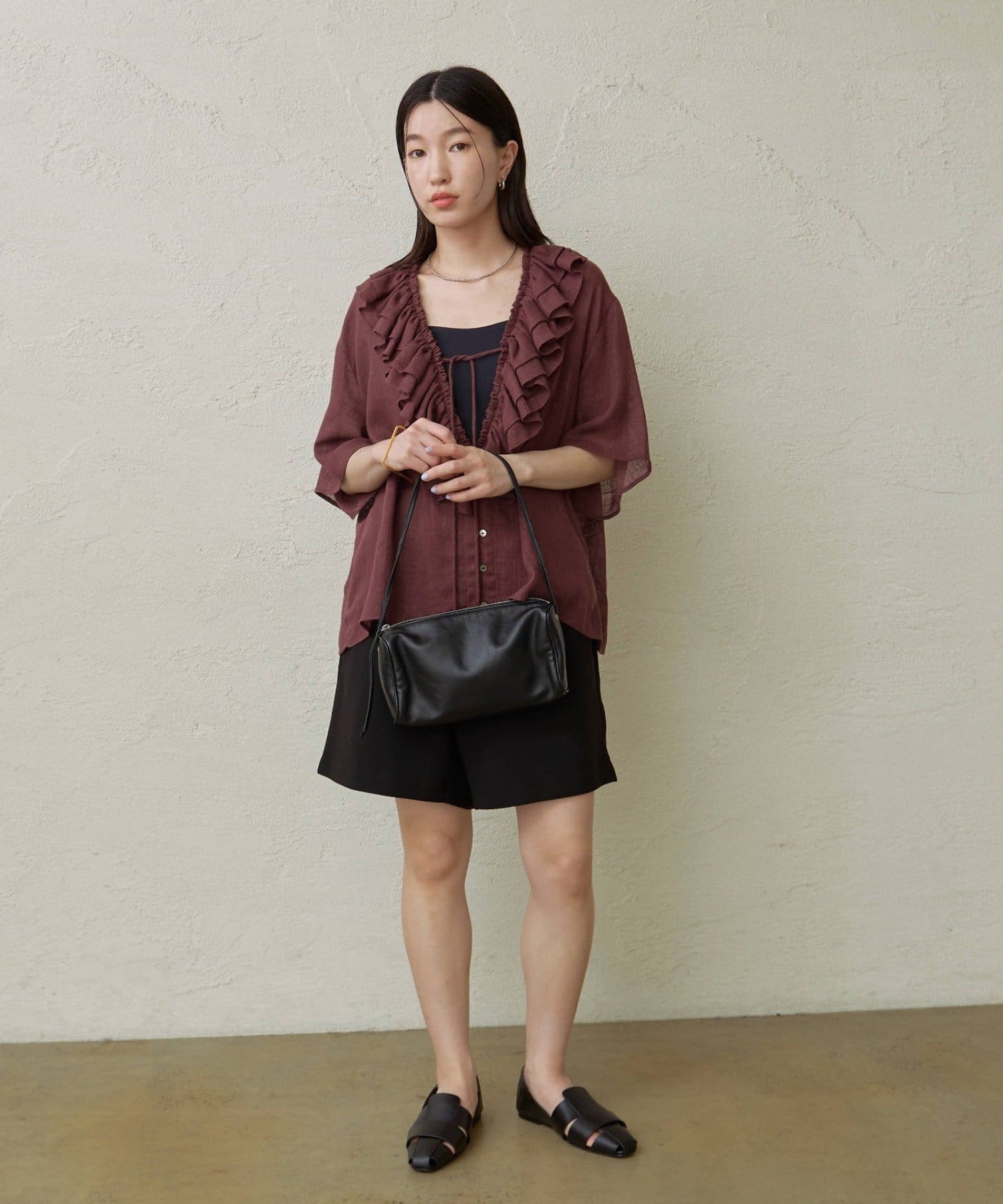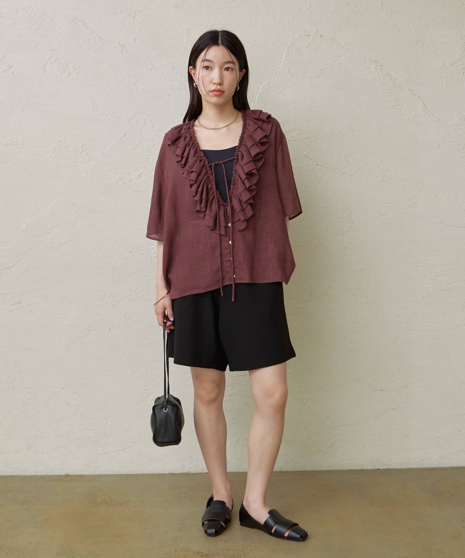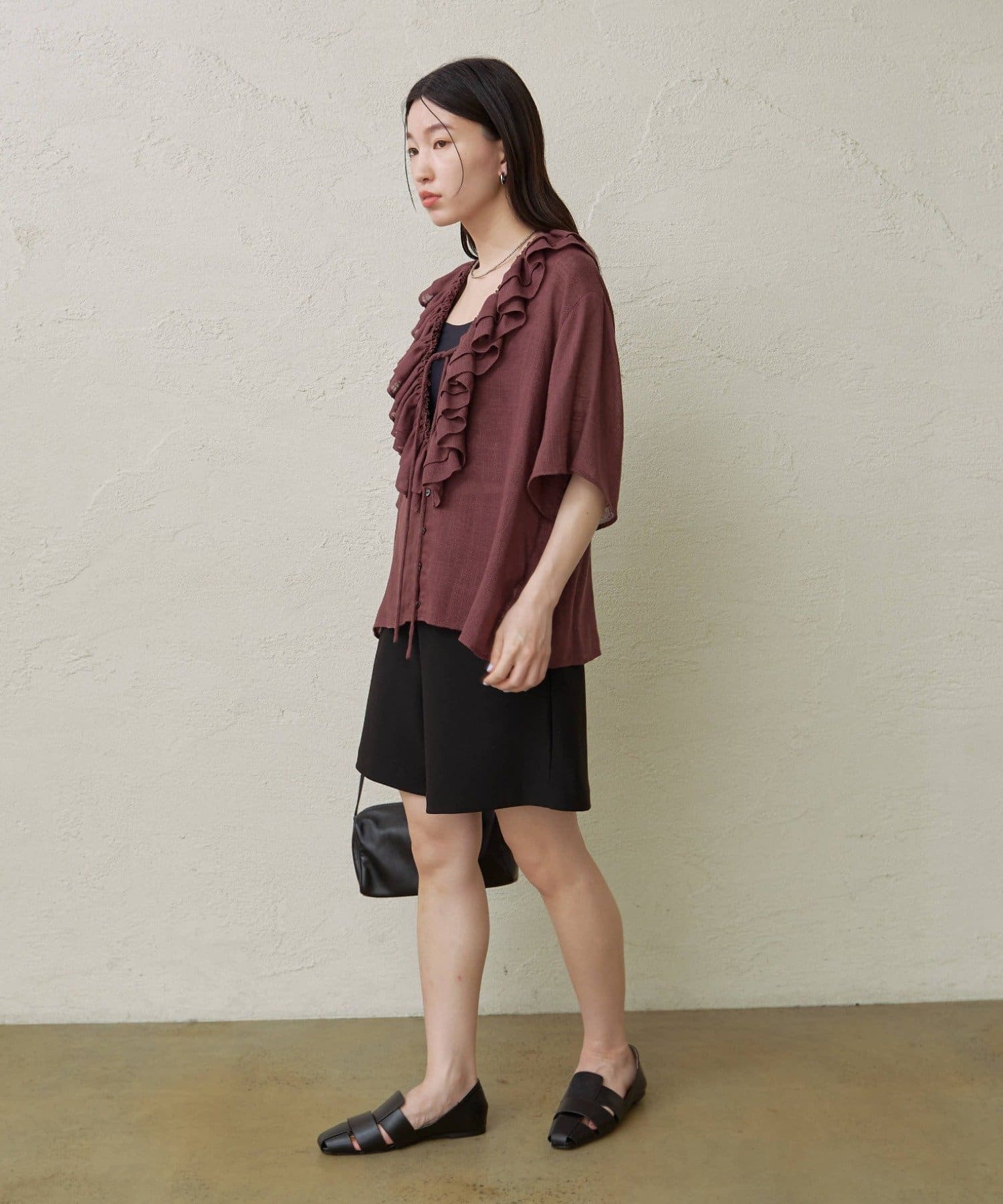 【ブラック①】Uネックフリルブラウス