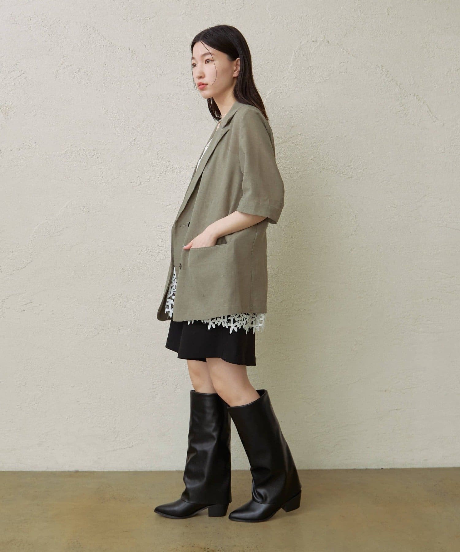 ・やや厚手な生地感でオールシーズン着用可能です。