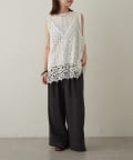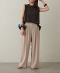 【ホワイト】ストレッチシフォンボリュームパンツ