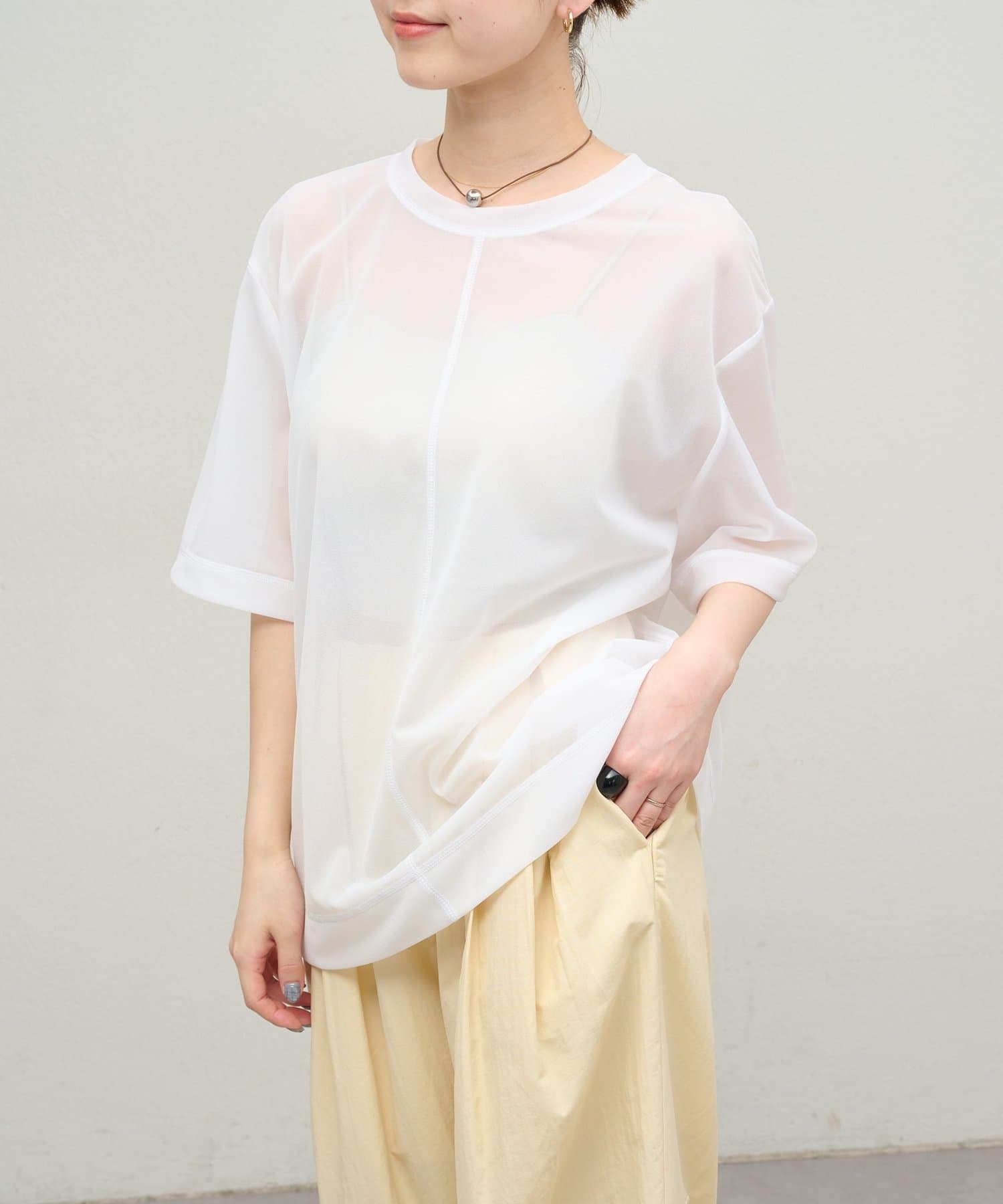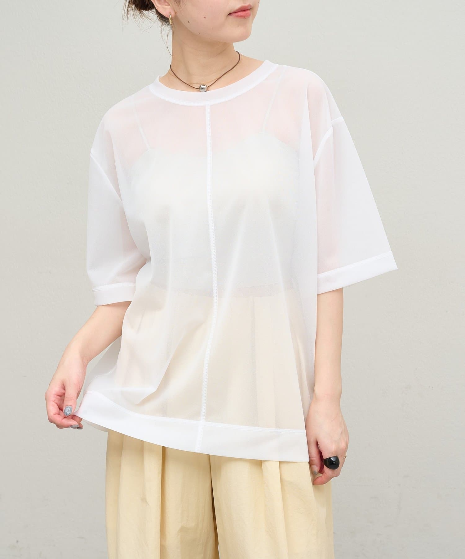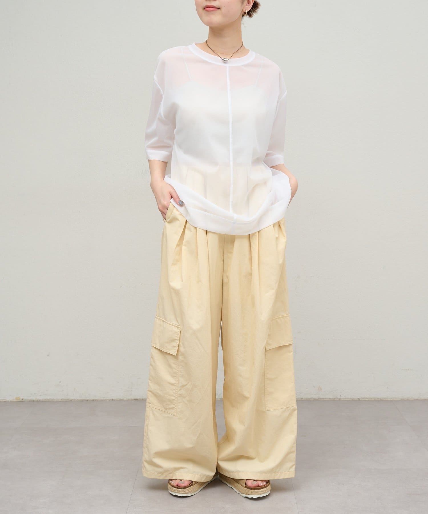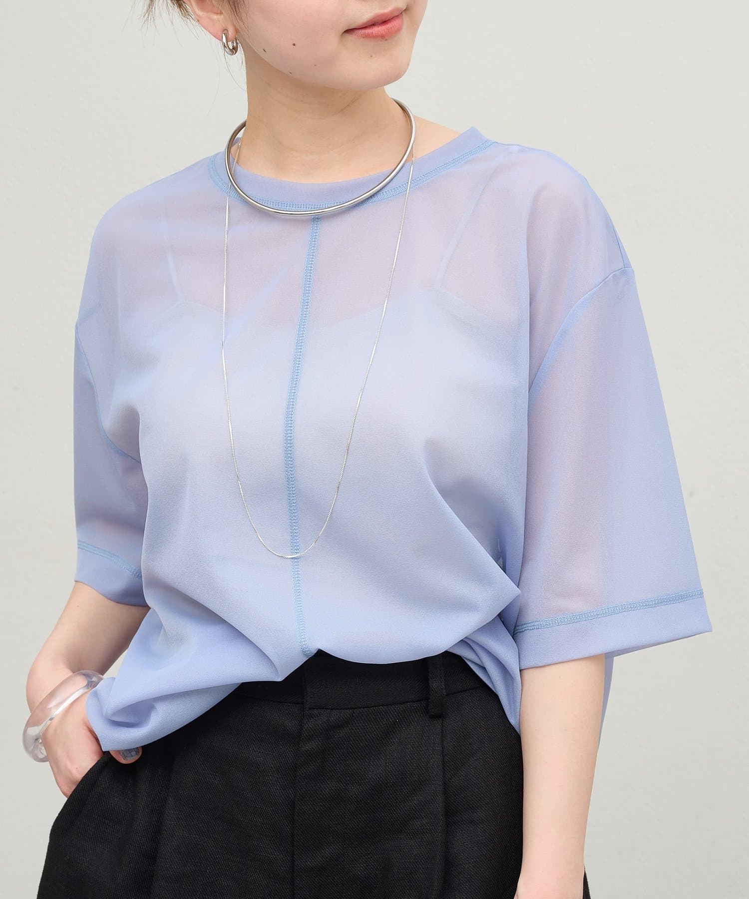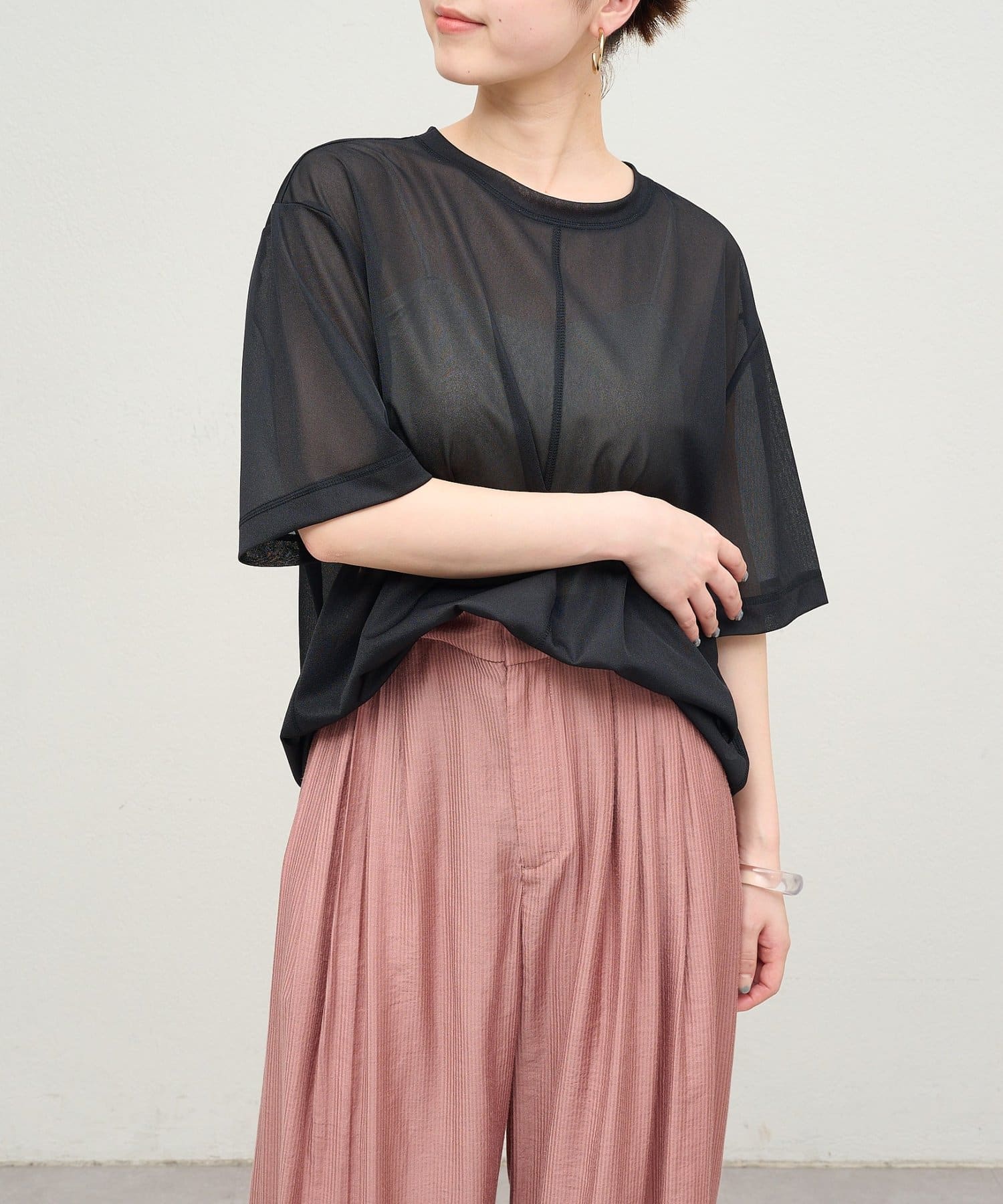 シアー素材が抜け感のあるカットプルオーバー