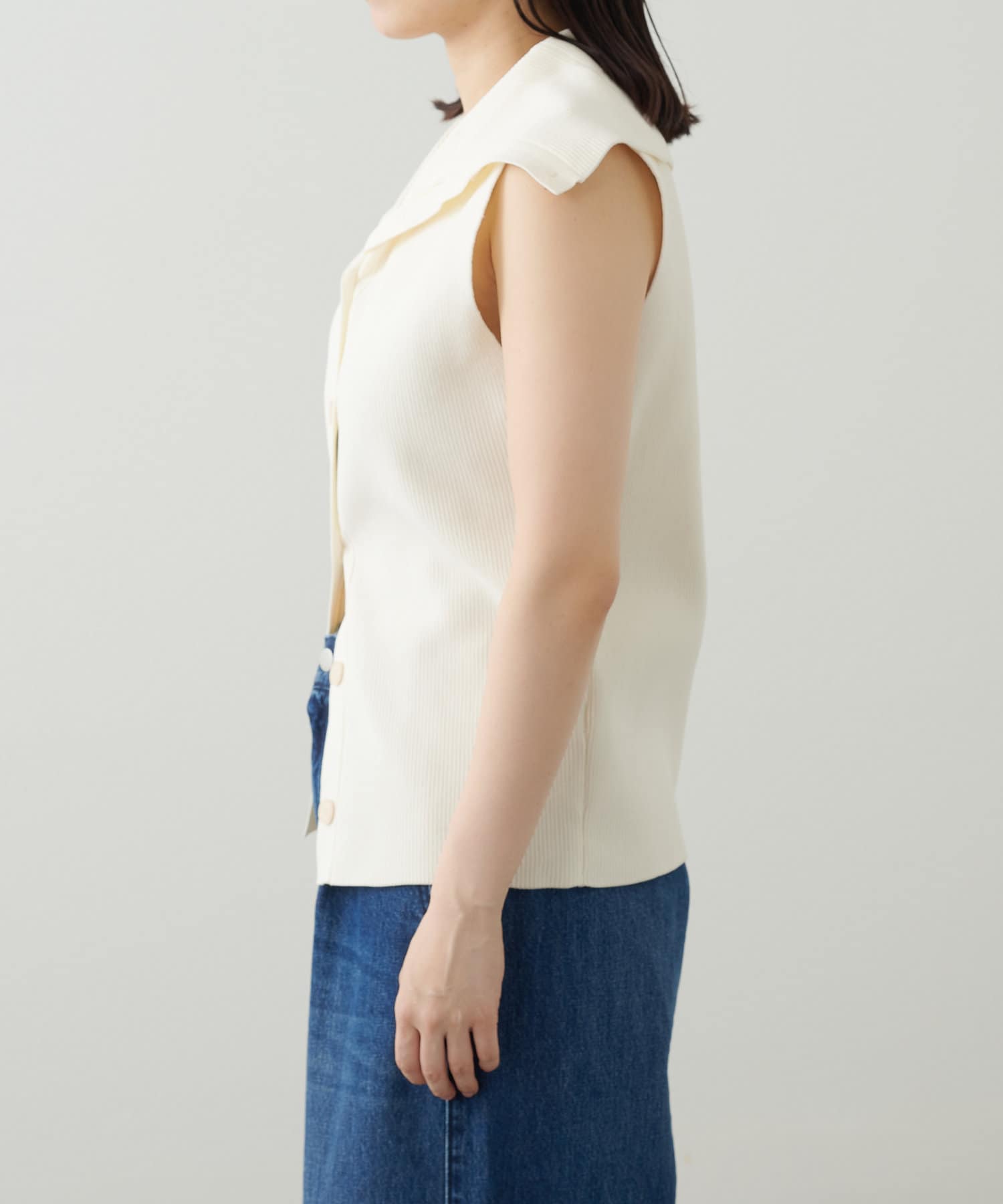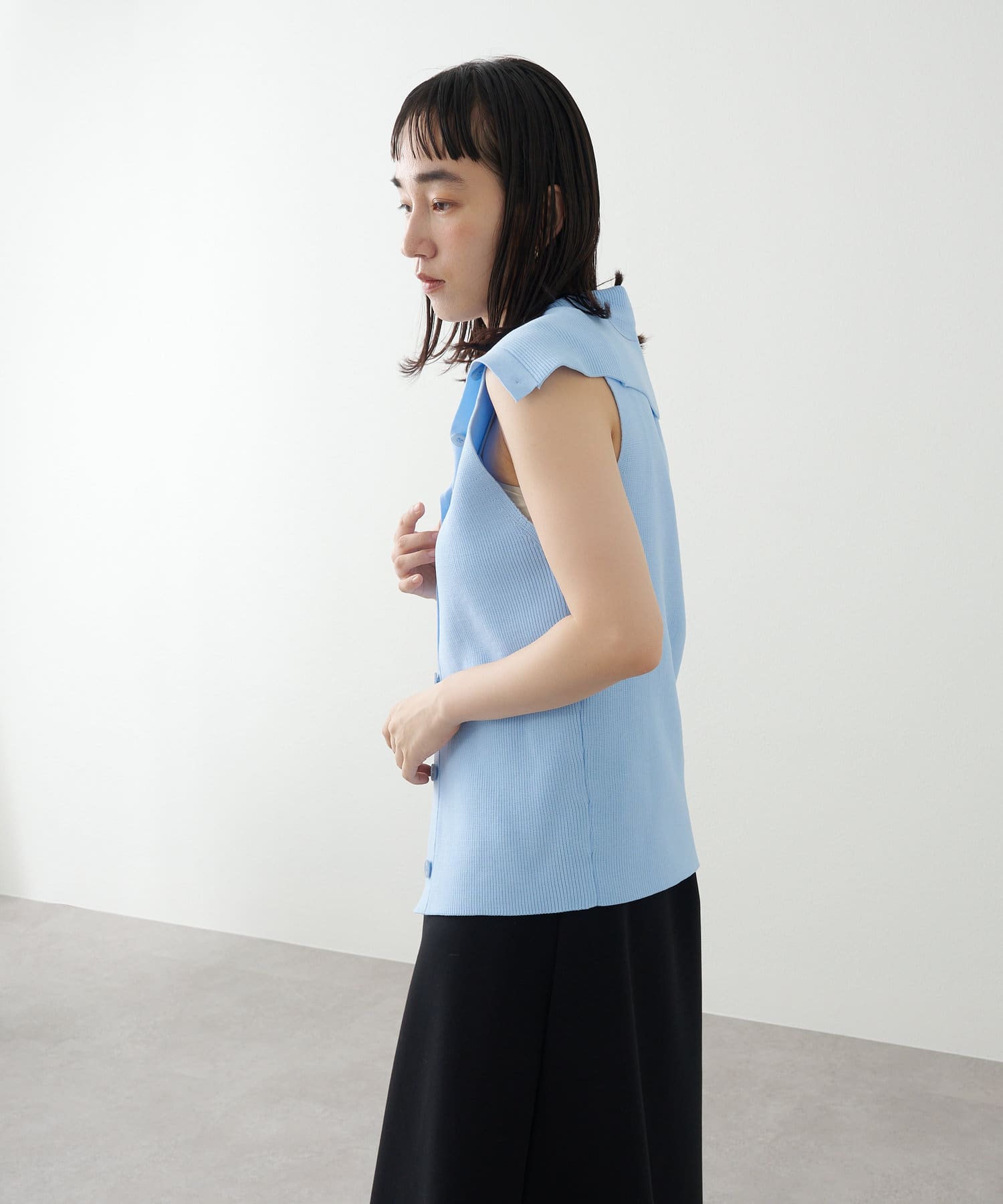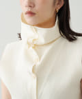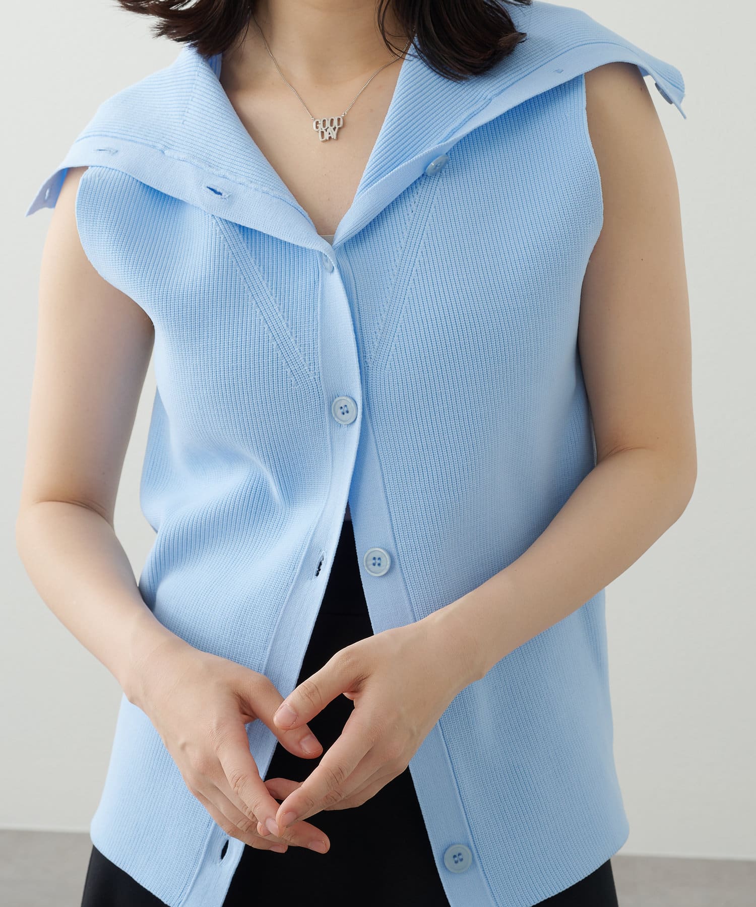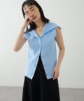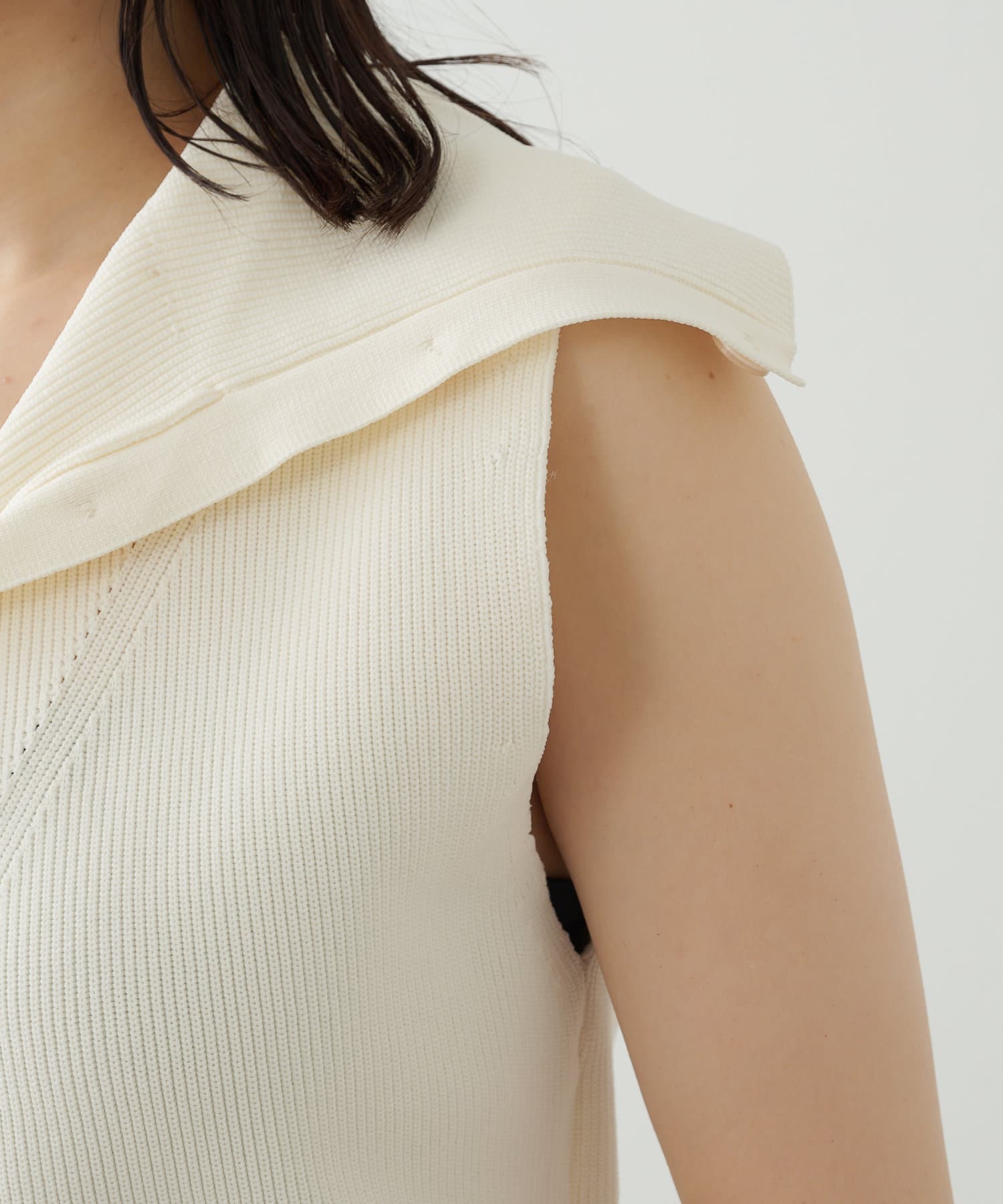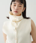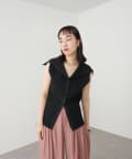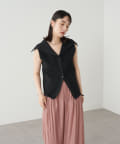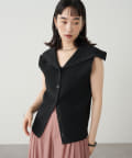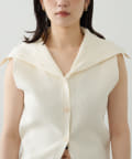 ・襟元部分のデザインがスタイリングのアクセントになるニットベスト。