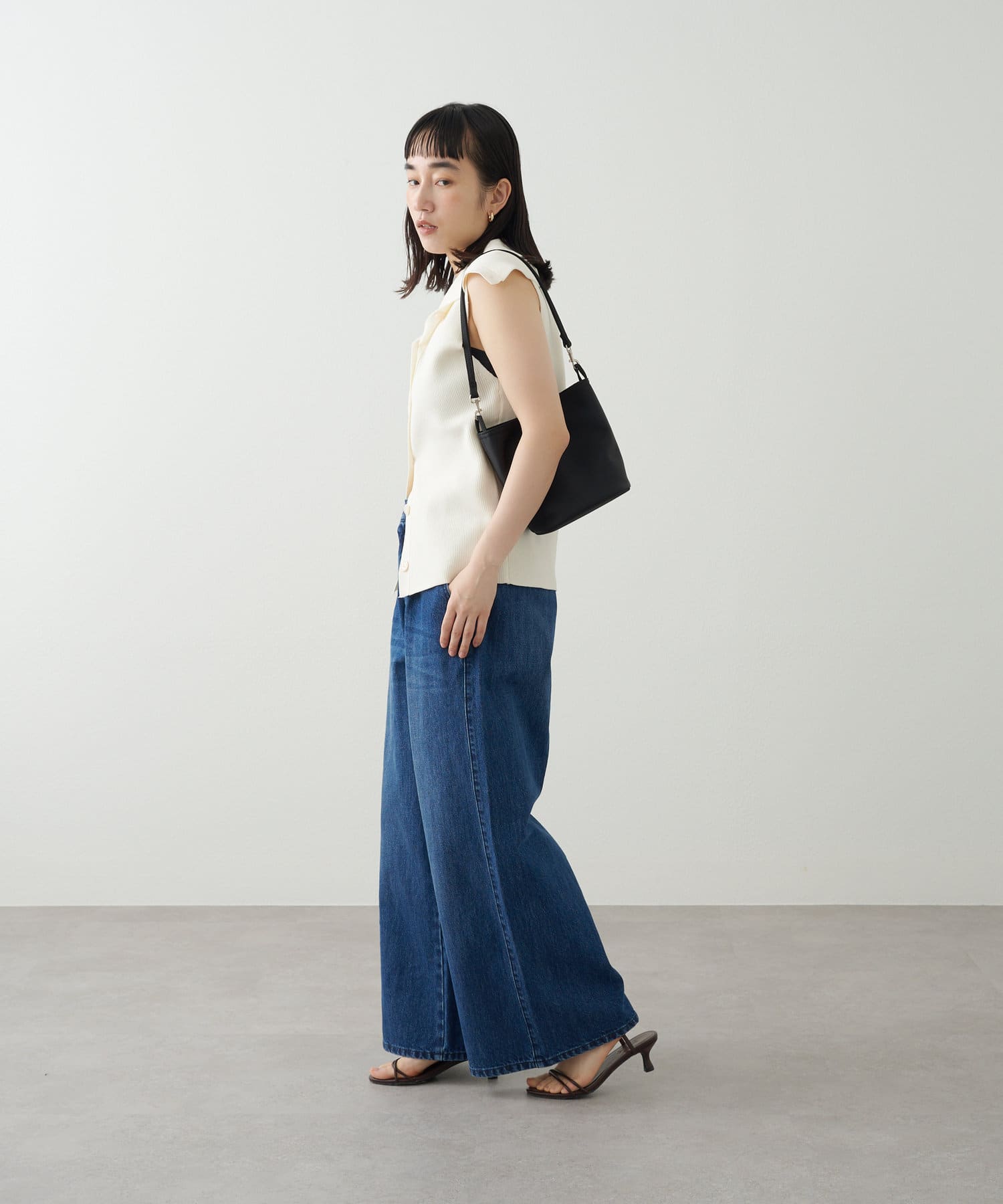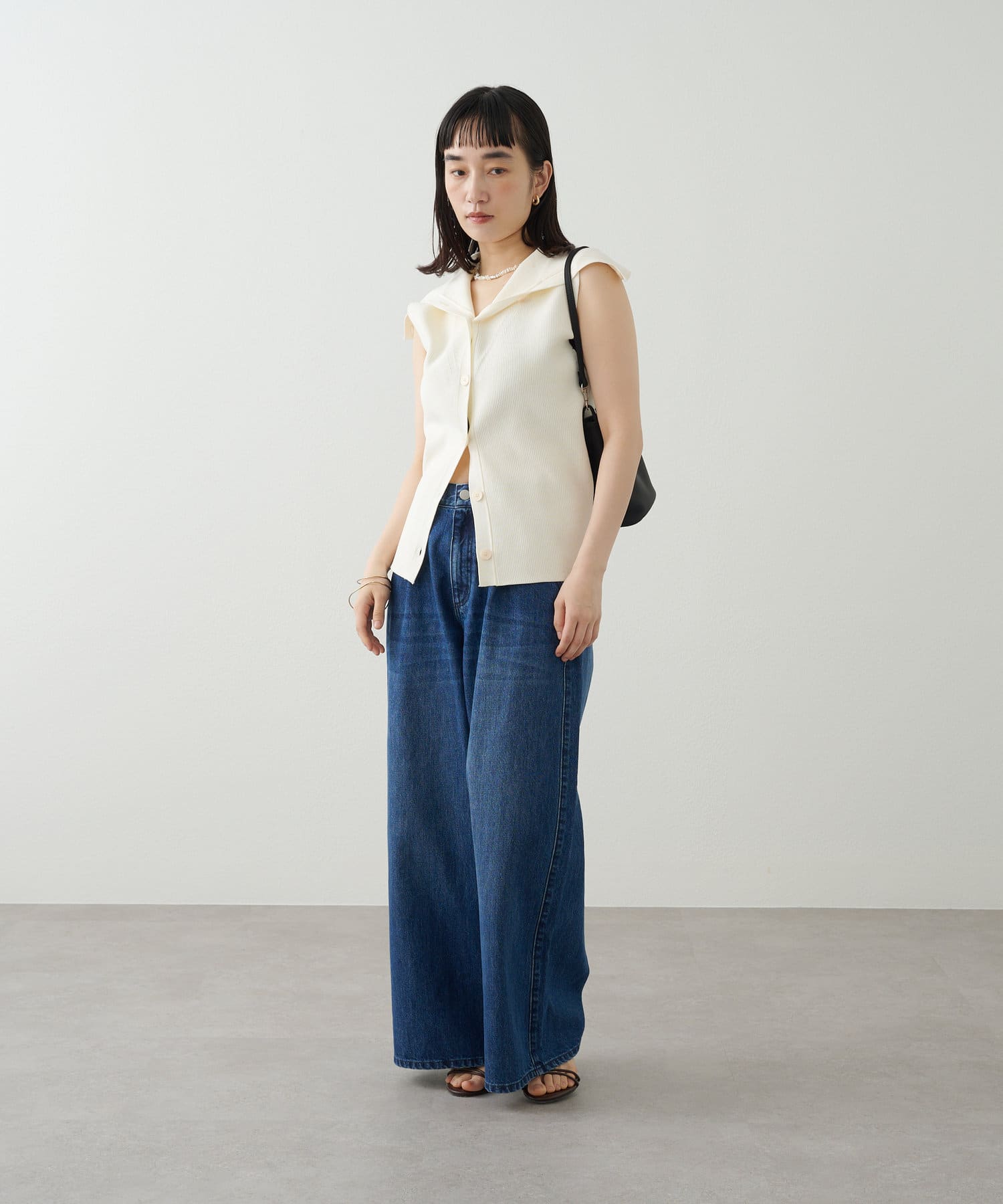 1枚で存在感のあるオフショルニットベスト