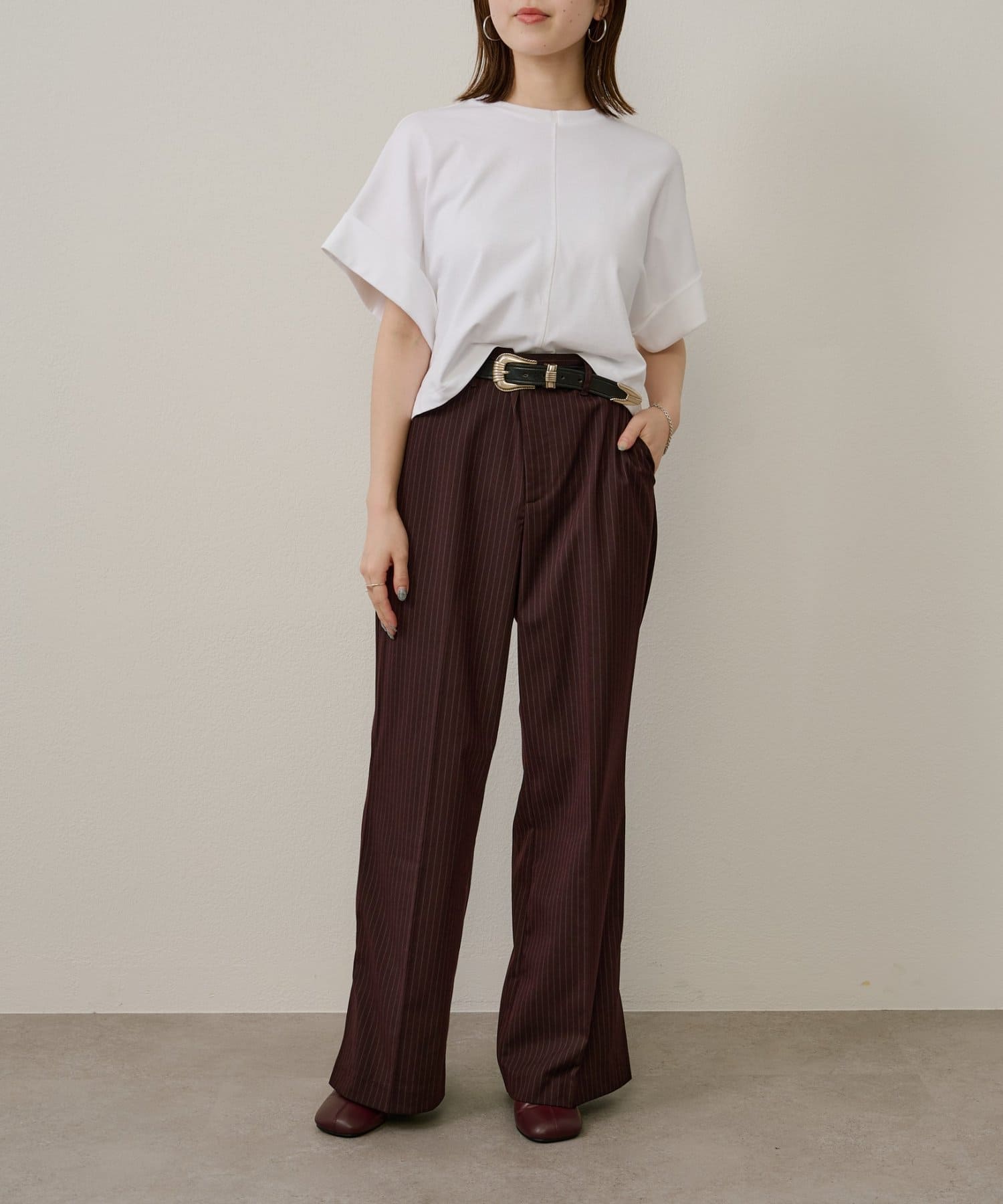 ・ワイドパンツやロングスカート合わせで、フェミニンなスタイリングもおすすめです。