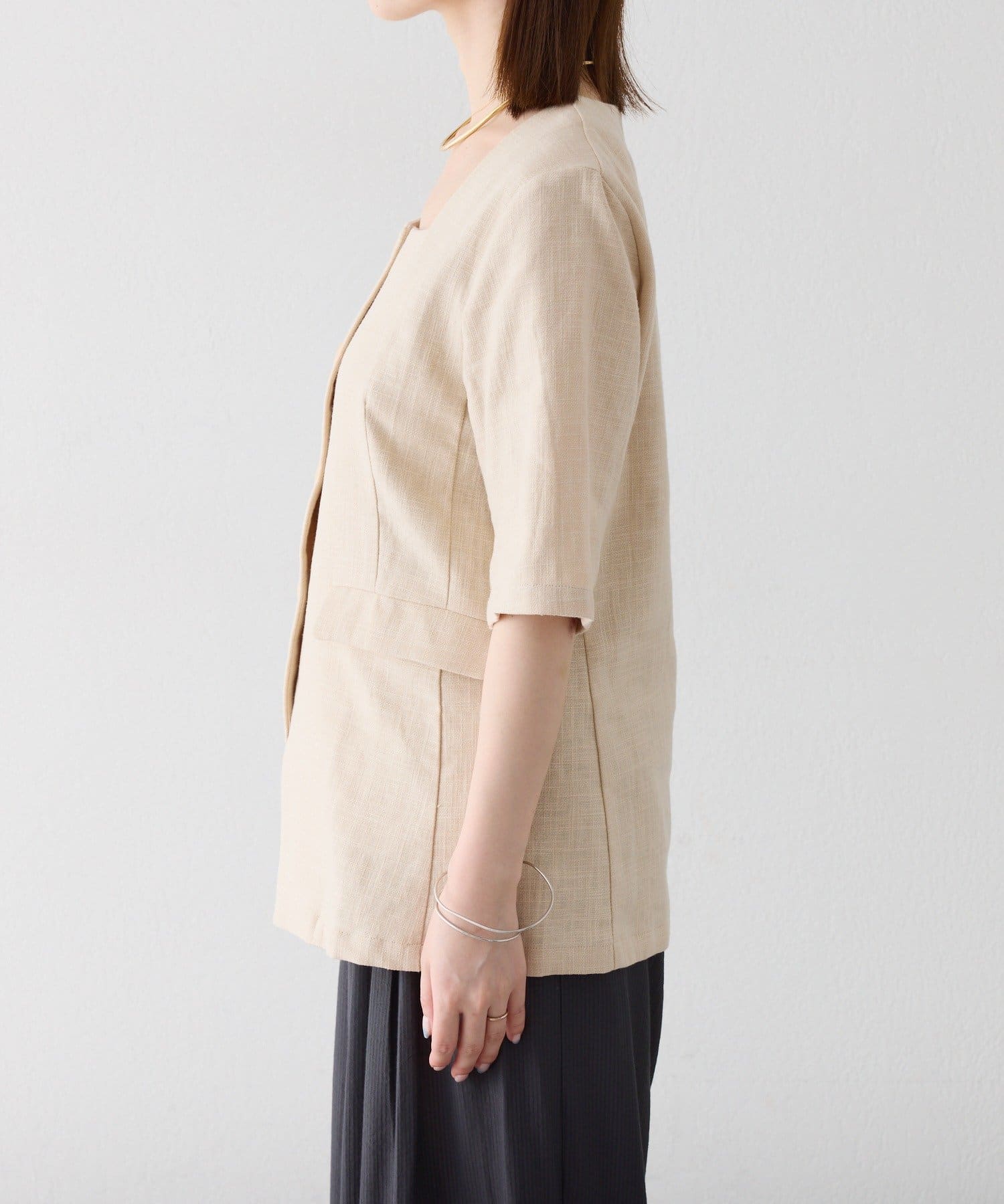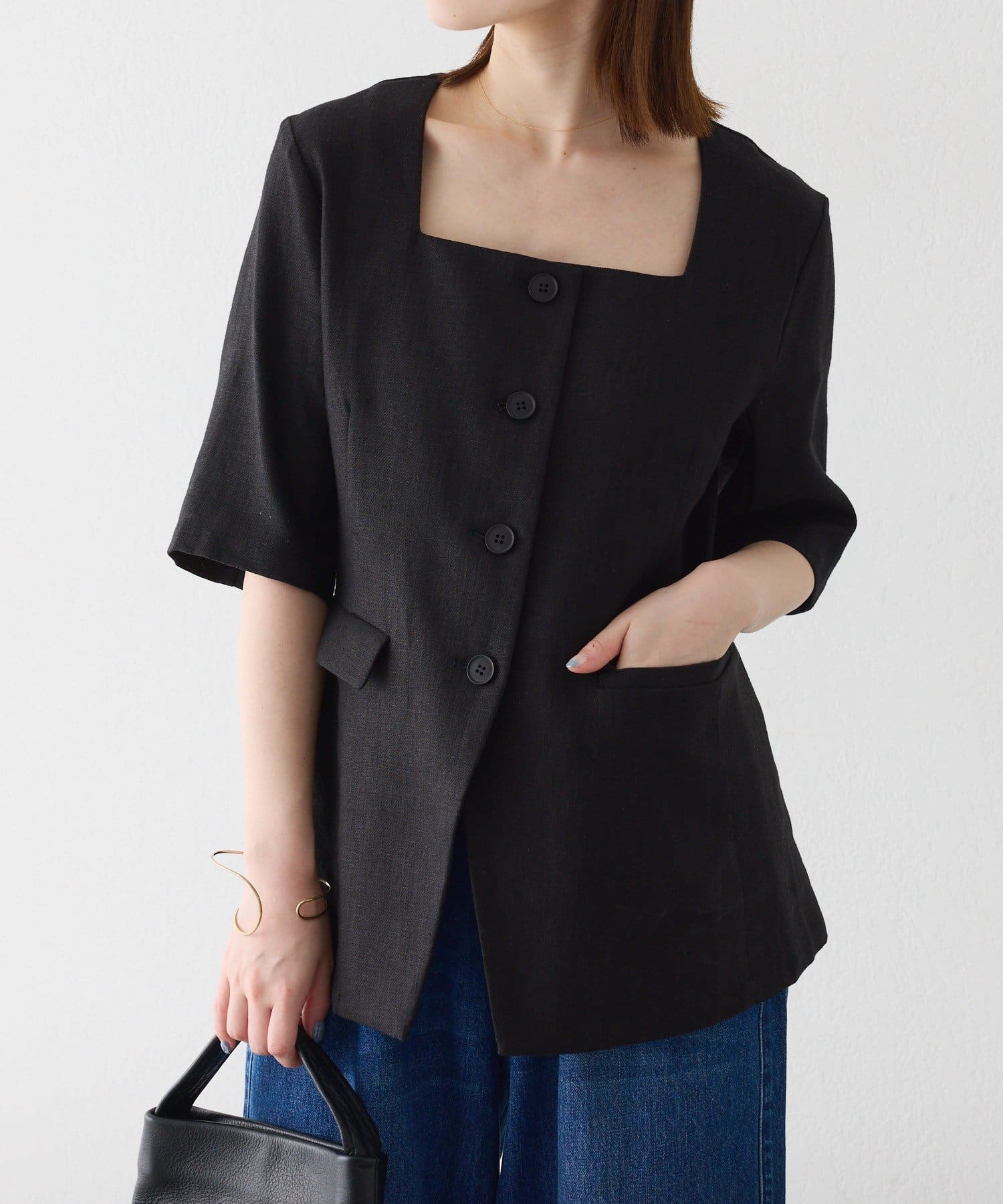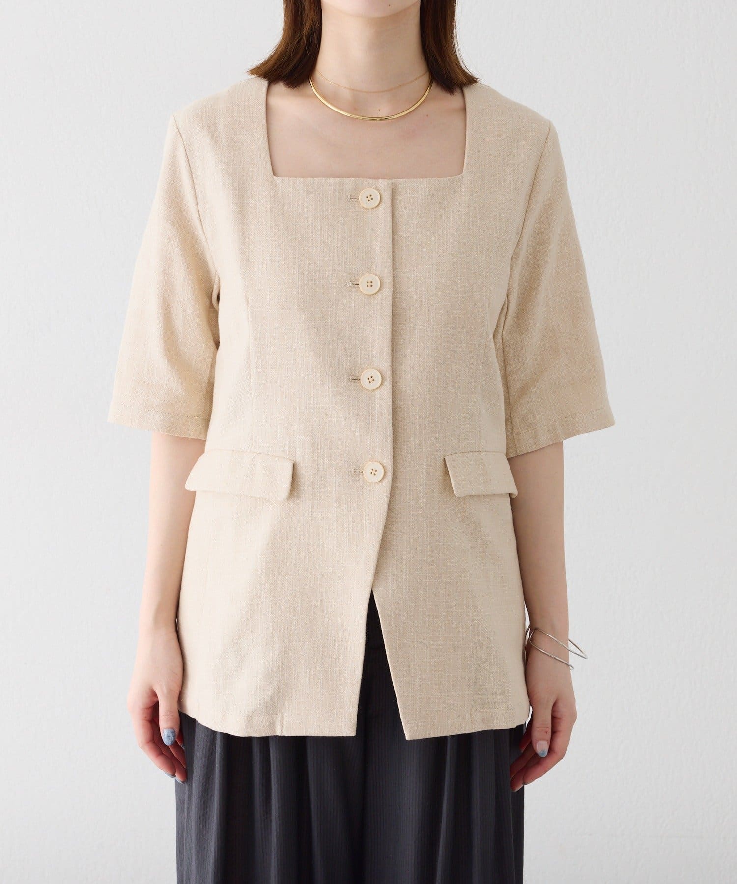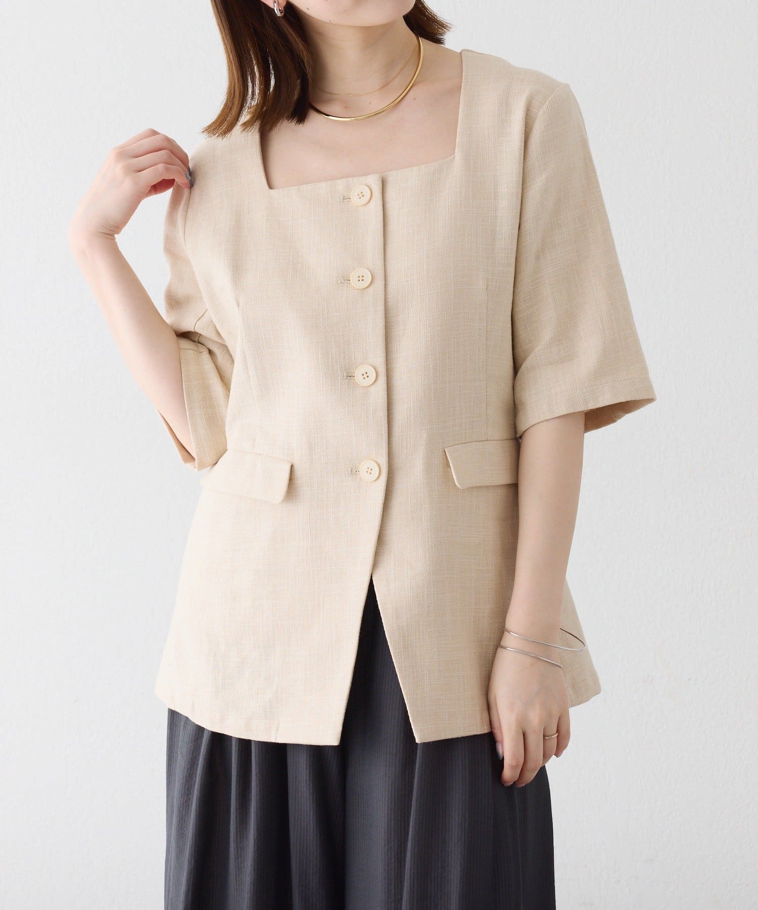・ハーフスリーブにスクエアカラーデザインで女性らしさにこだわったサマージャケット