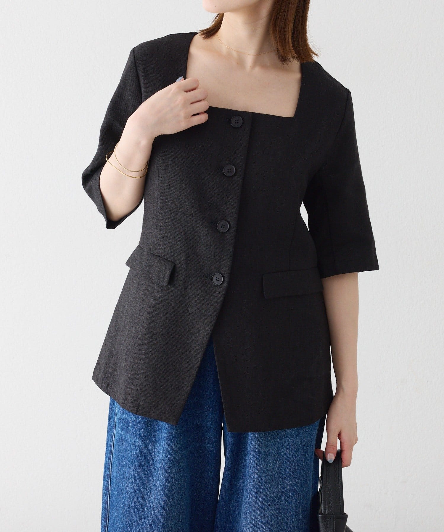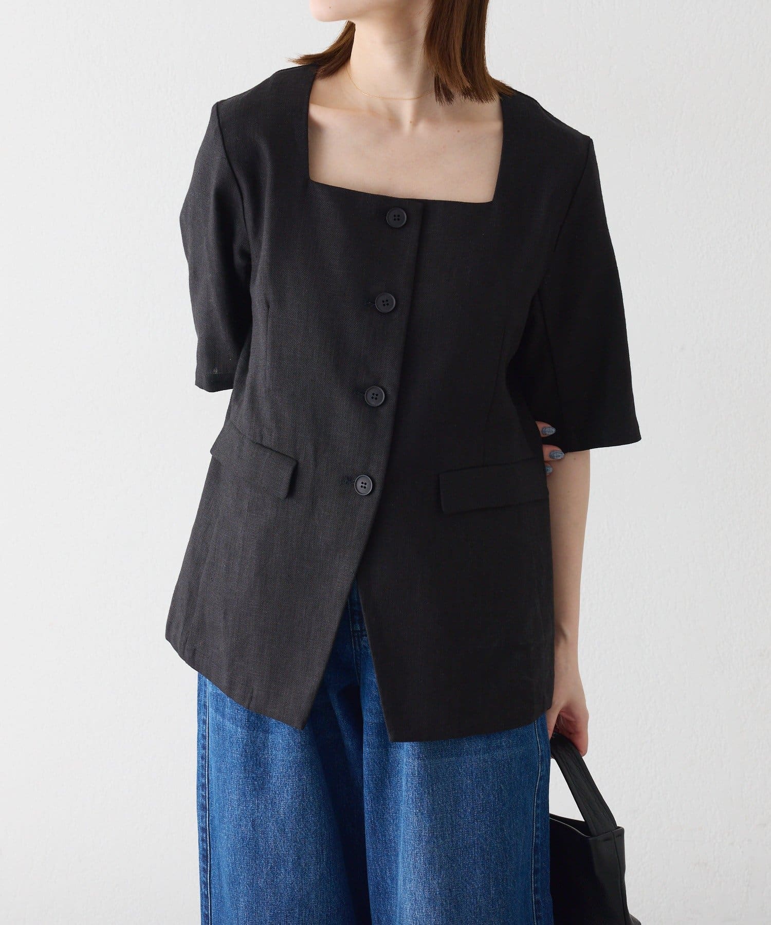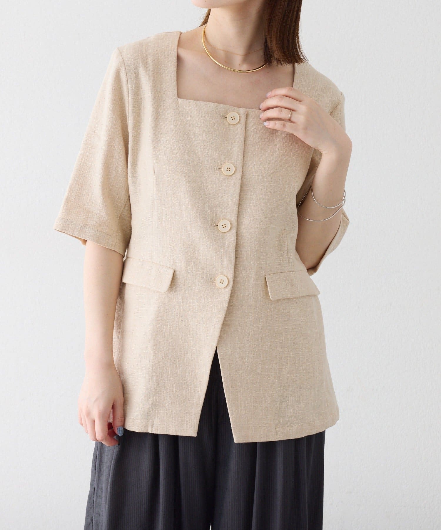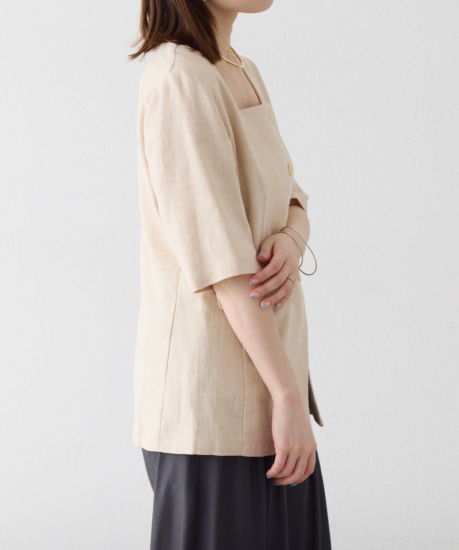 ・ハーフスリーブにスクエアカラーデザインで女性らしさにこだわったサマージャケット